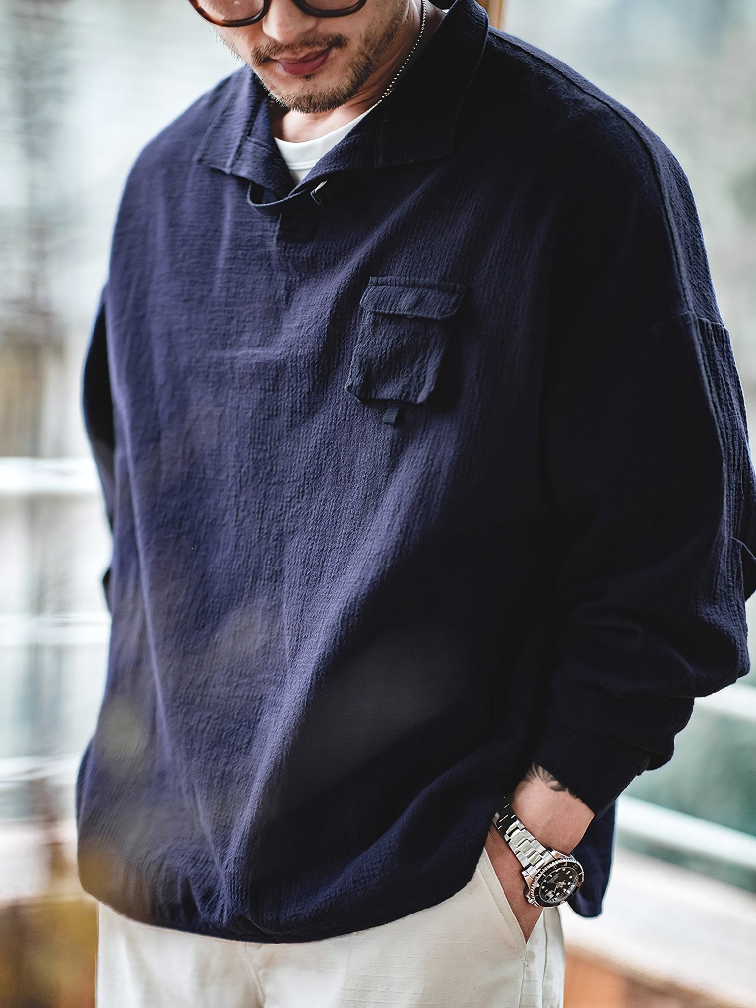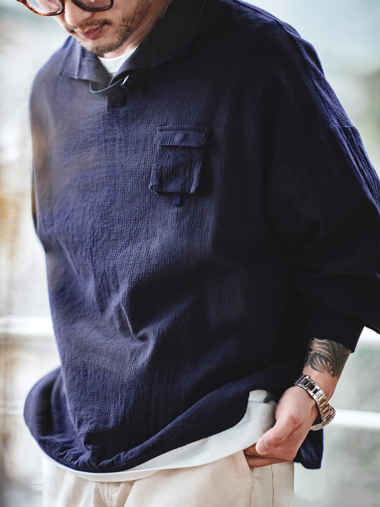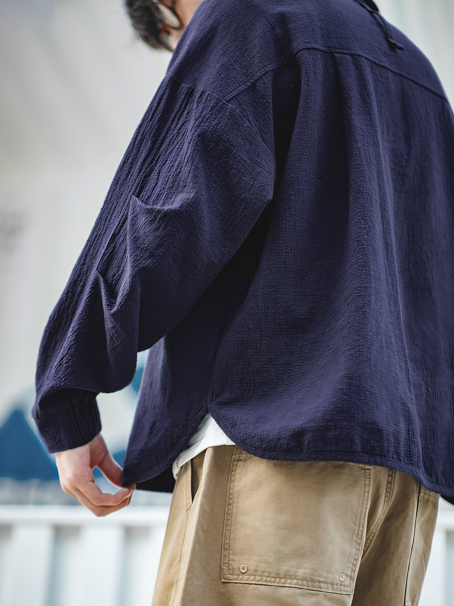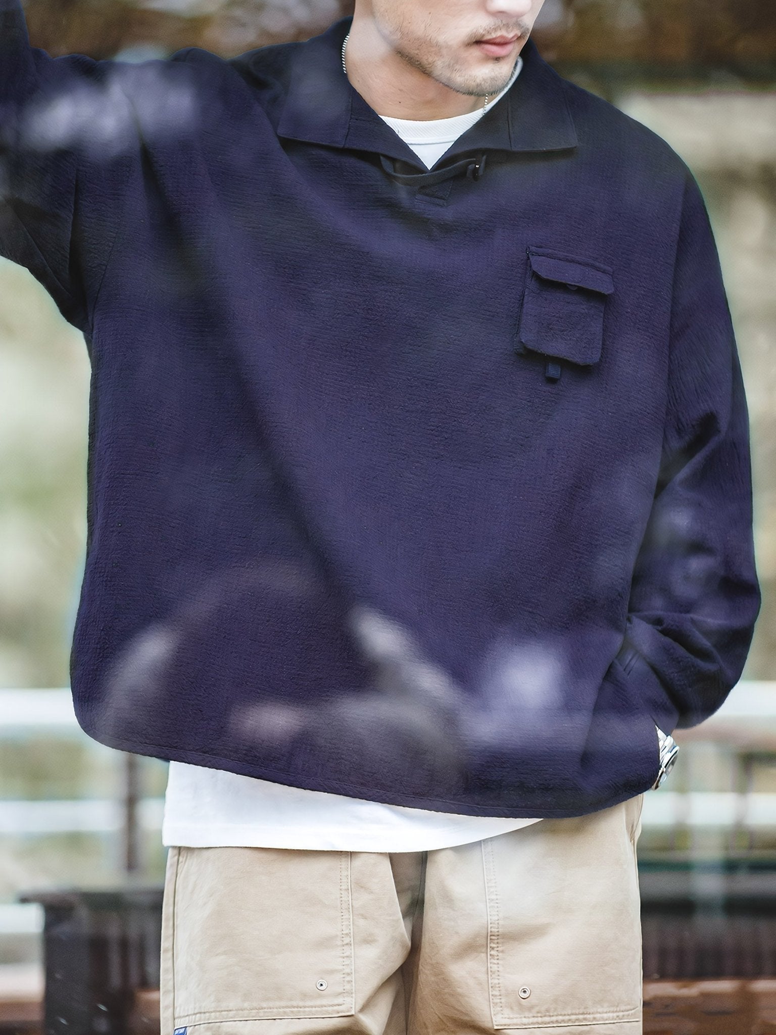 この素材はコットンの自然な触感を残しつつ、衣服に特別な質感を与えています。着用時に高品質な快適さを感じることができます。