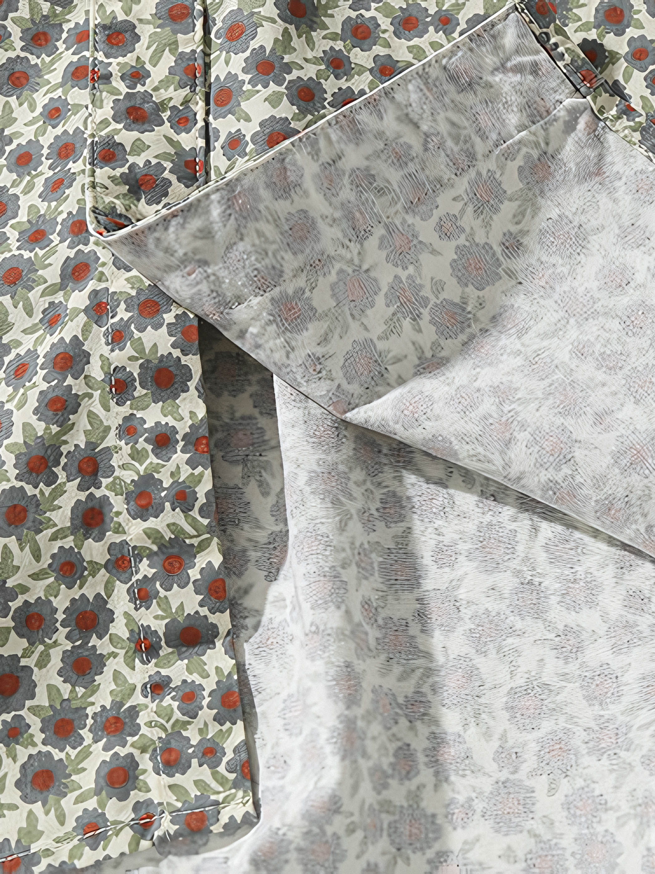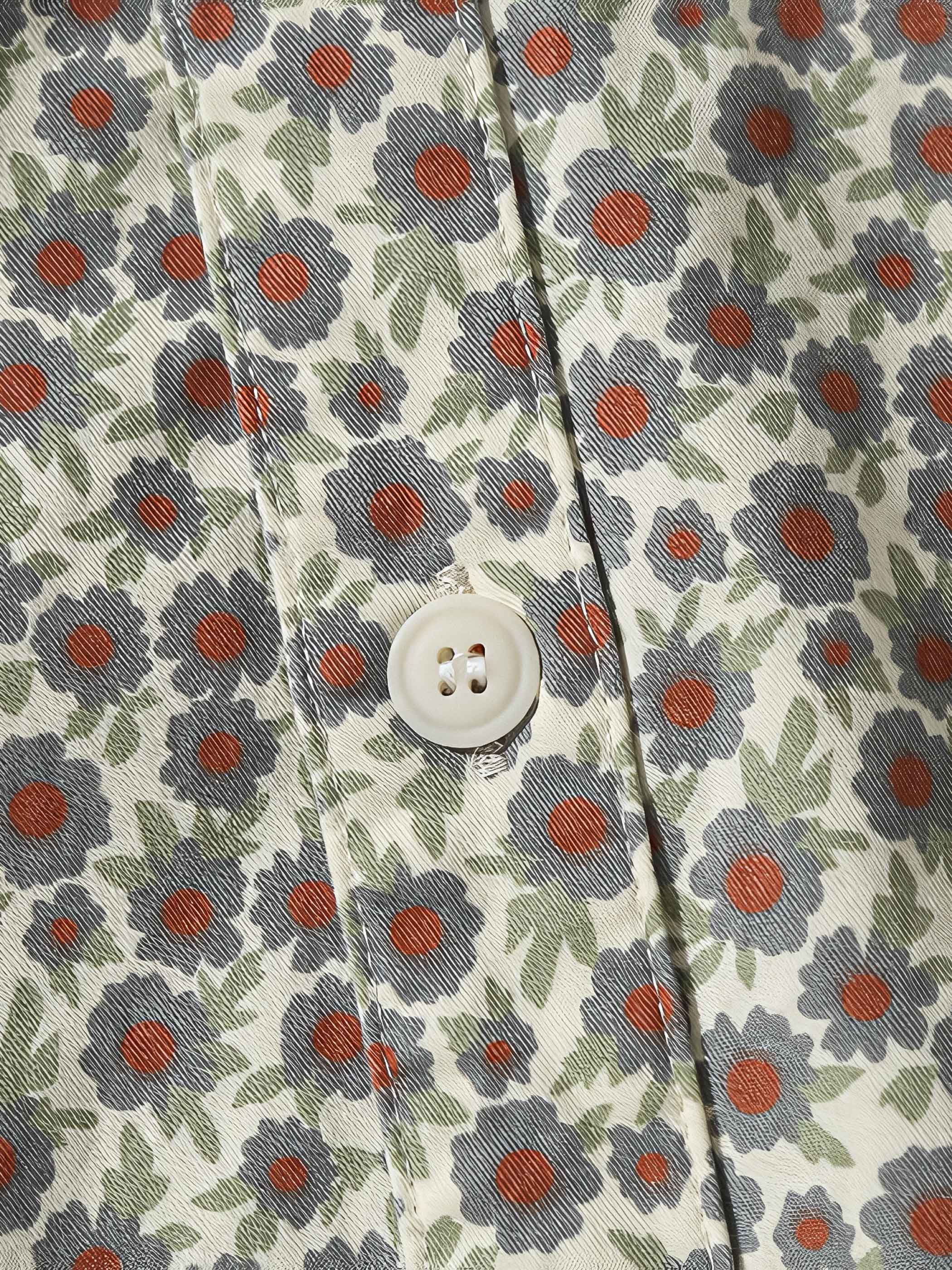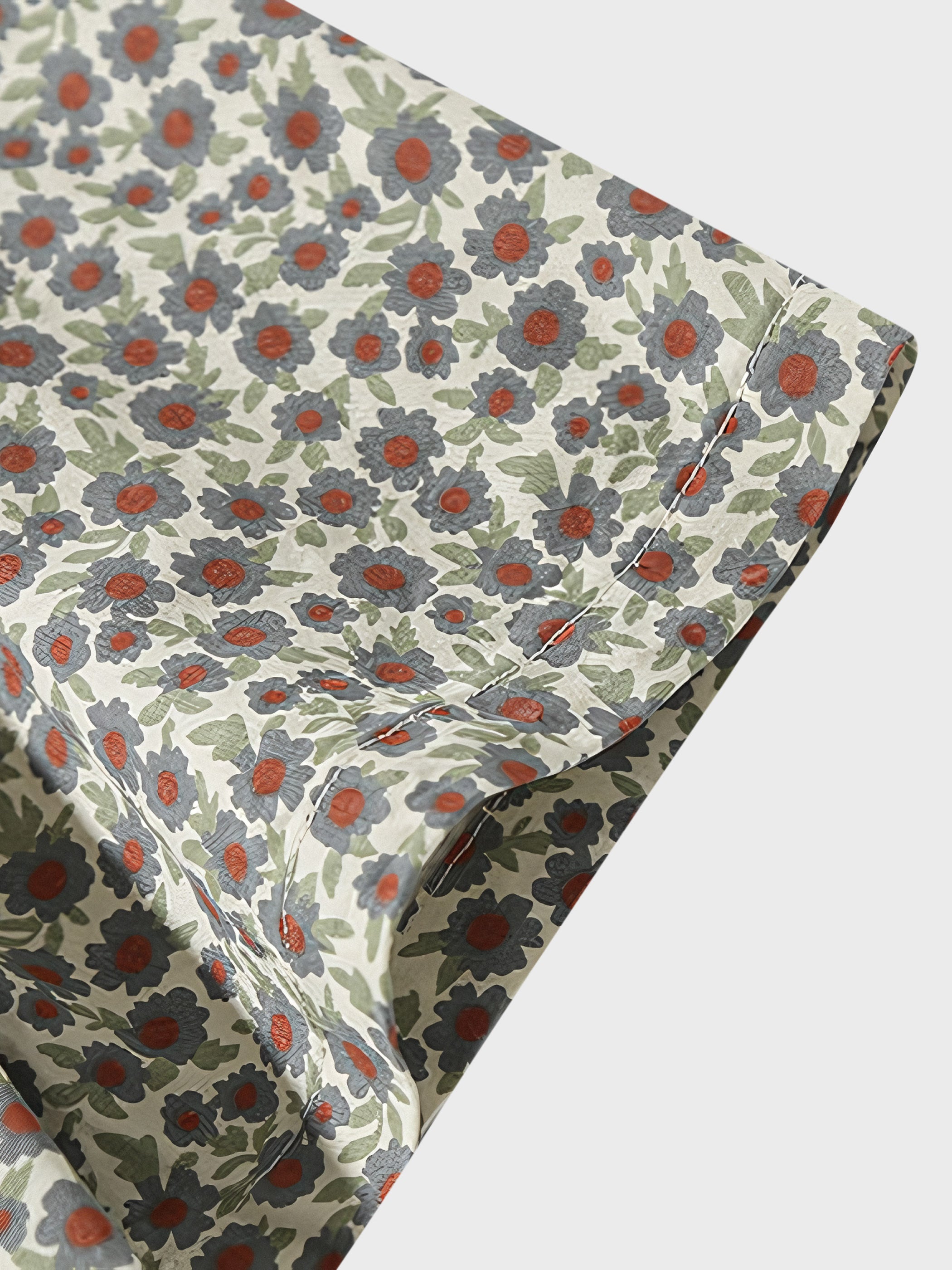 この花柄シャツは、清新なデザインで活力と若々しい雰囲気を表現しています。細かな花柄は過度に派手ではなく、リラックスした愉快な感覚を与えます。淡い緑色が主調で、清涼感と柔らかさを演出しています。