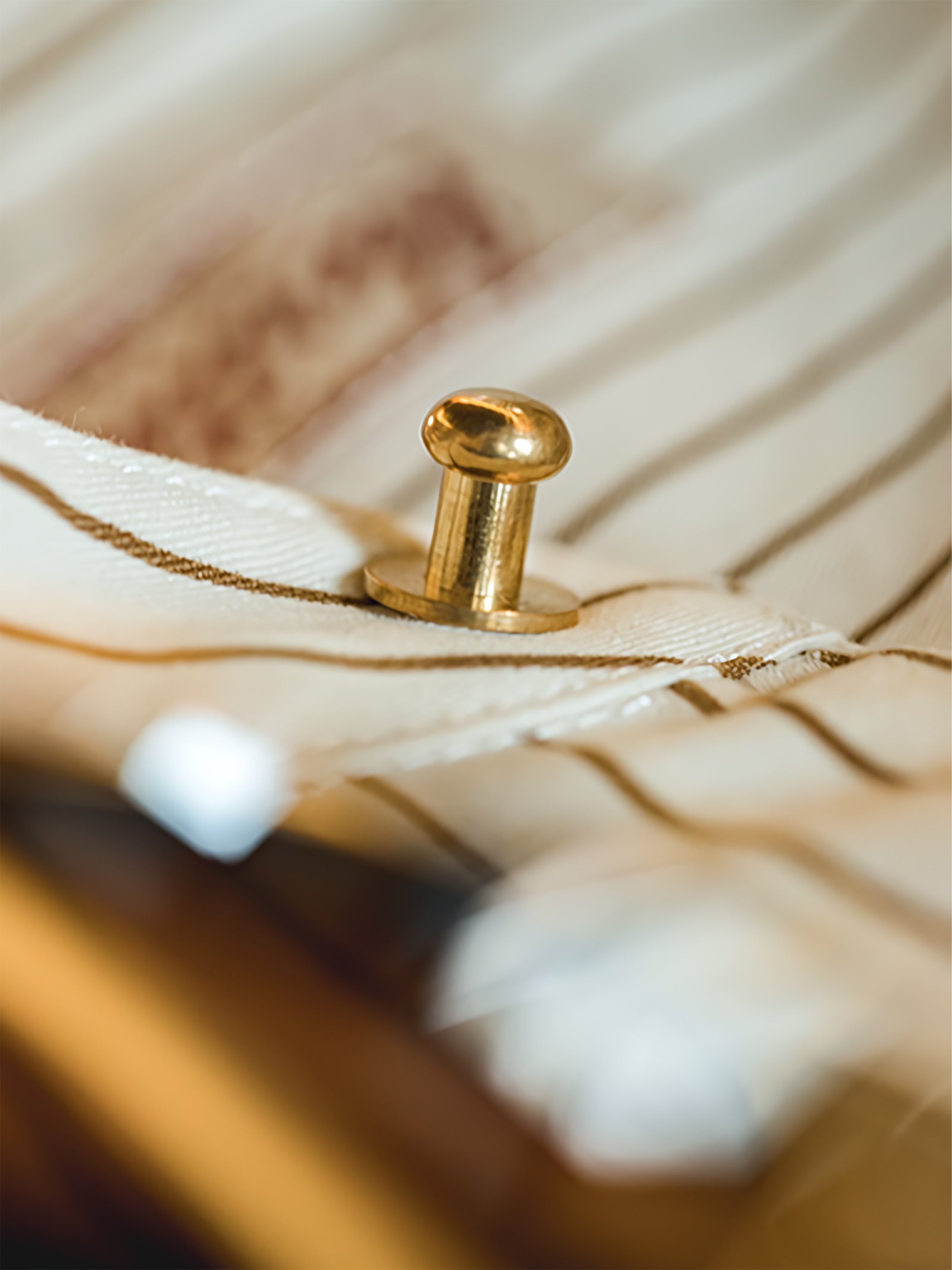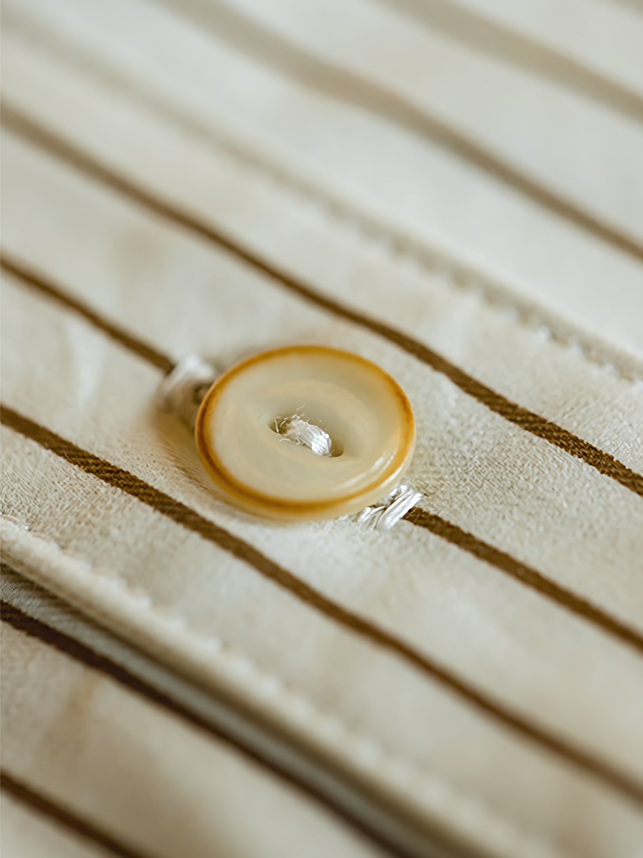 素材は上質な超長綿として知られるギザコットンから作られたサイロスパン糸を使用し、欧米を中心に日本でも導入されている新しい精紡技術による糸のことで、特に細番手の双糸を作るのに適して、長いギザ綿を特殊紡績で撚り合わせることで、キメが細かく滑らかで、毛羽が少なく程よい光沢のある生地に仕上がり。