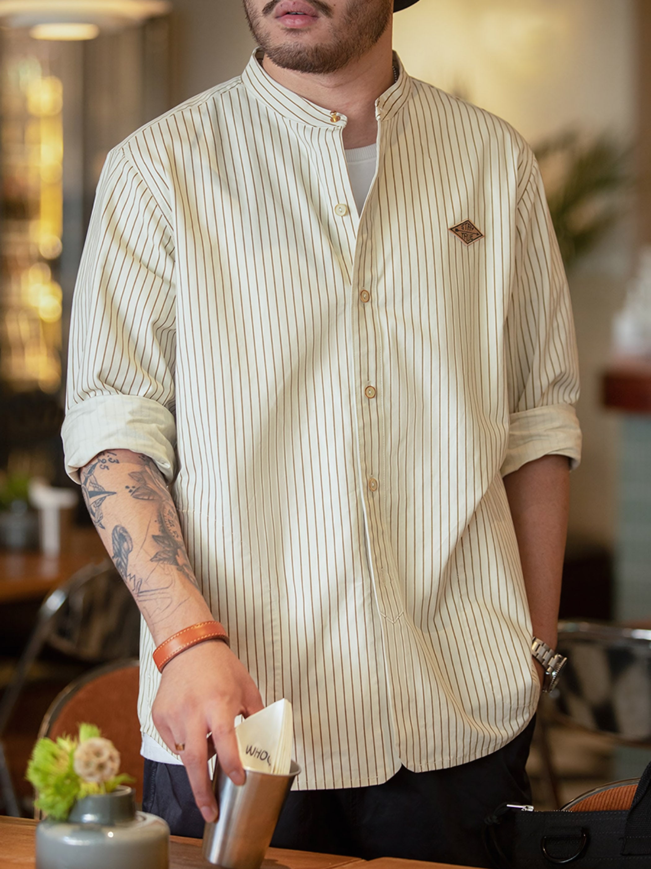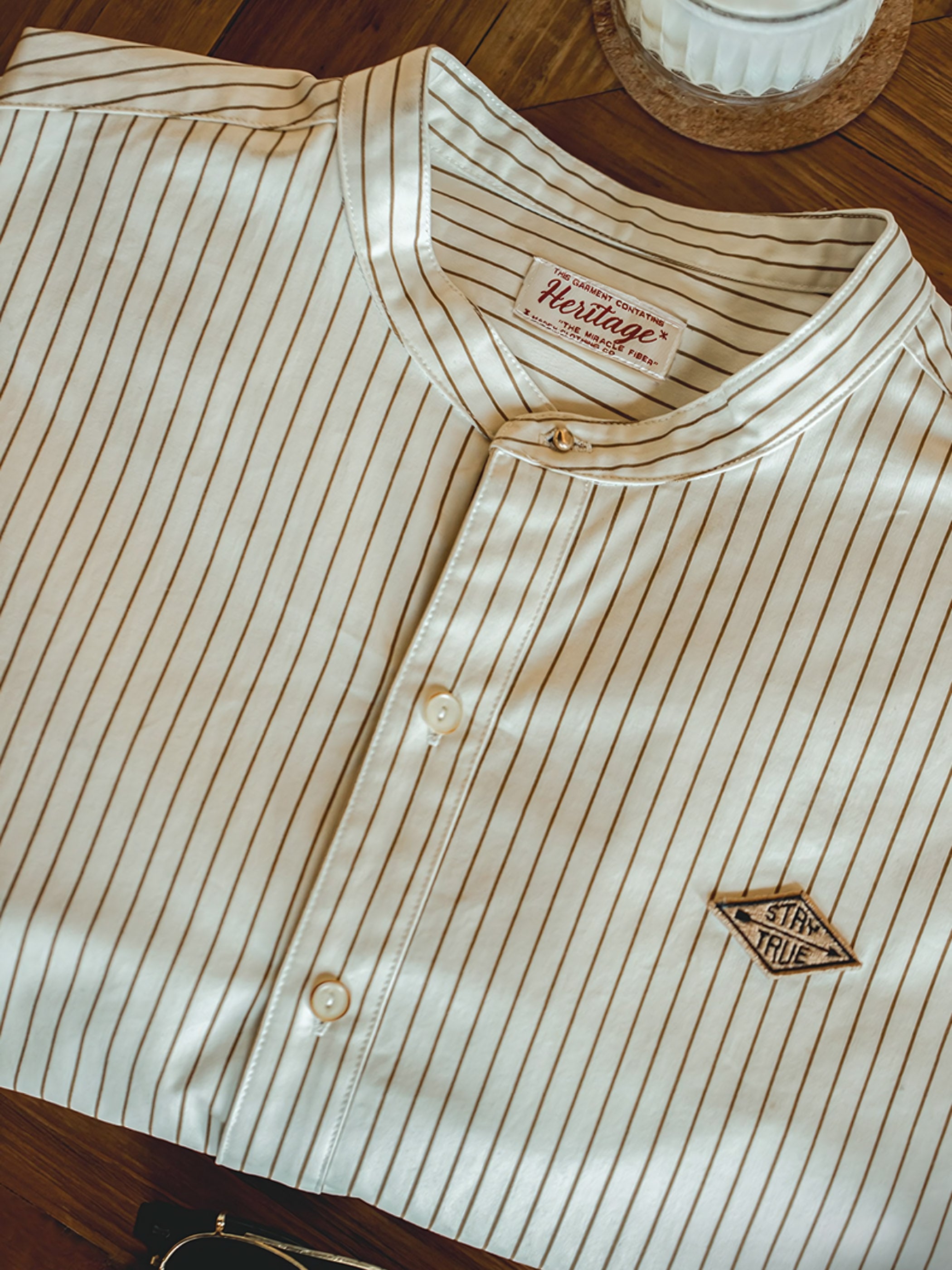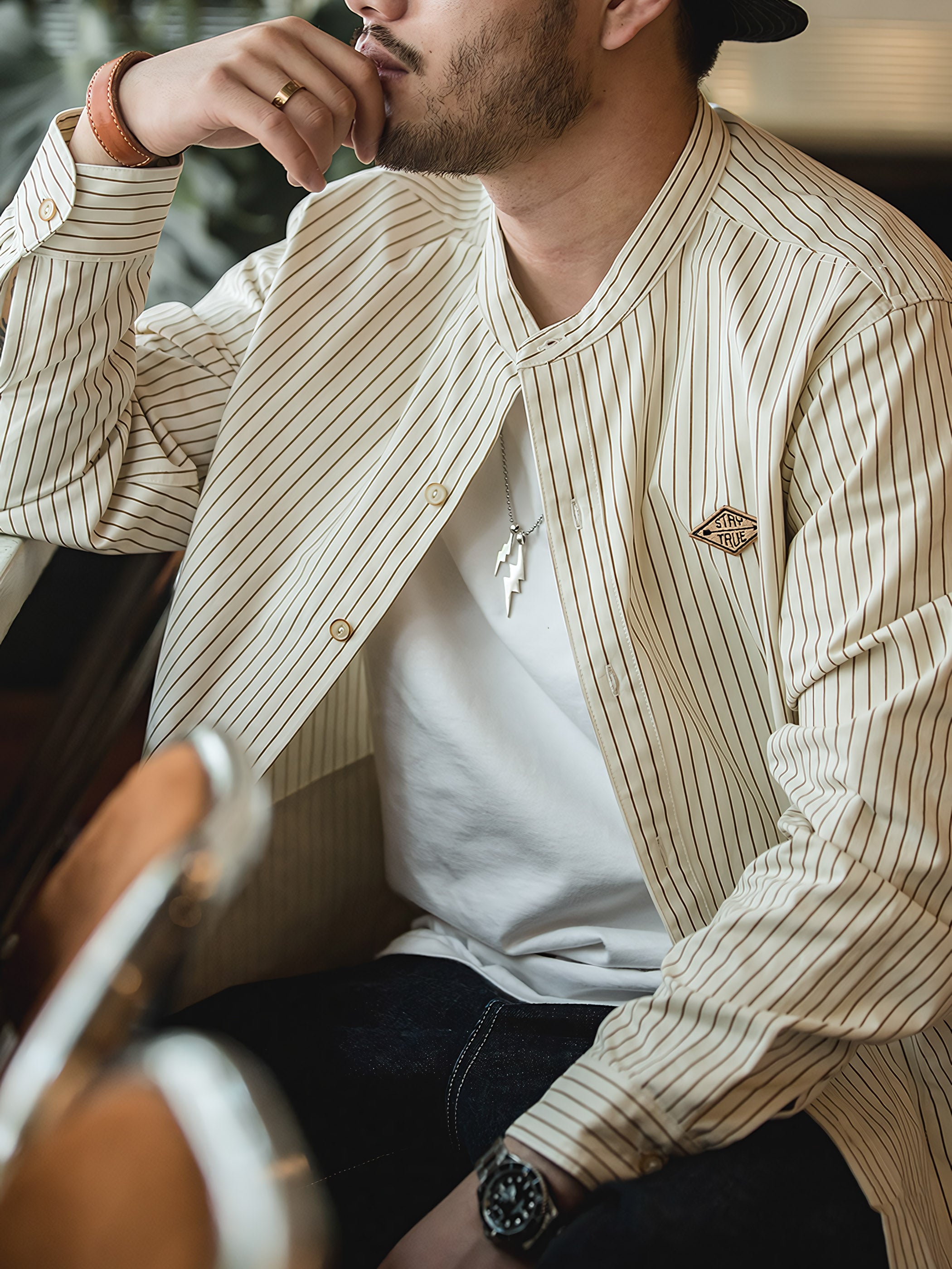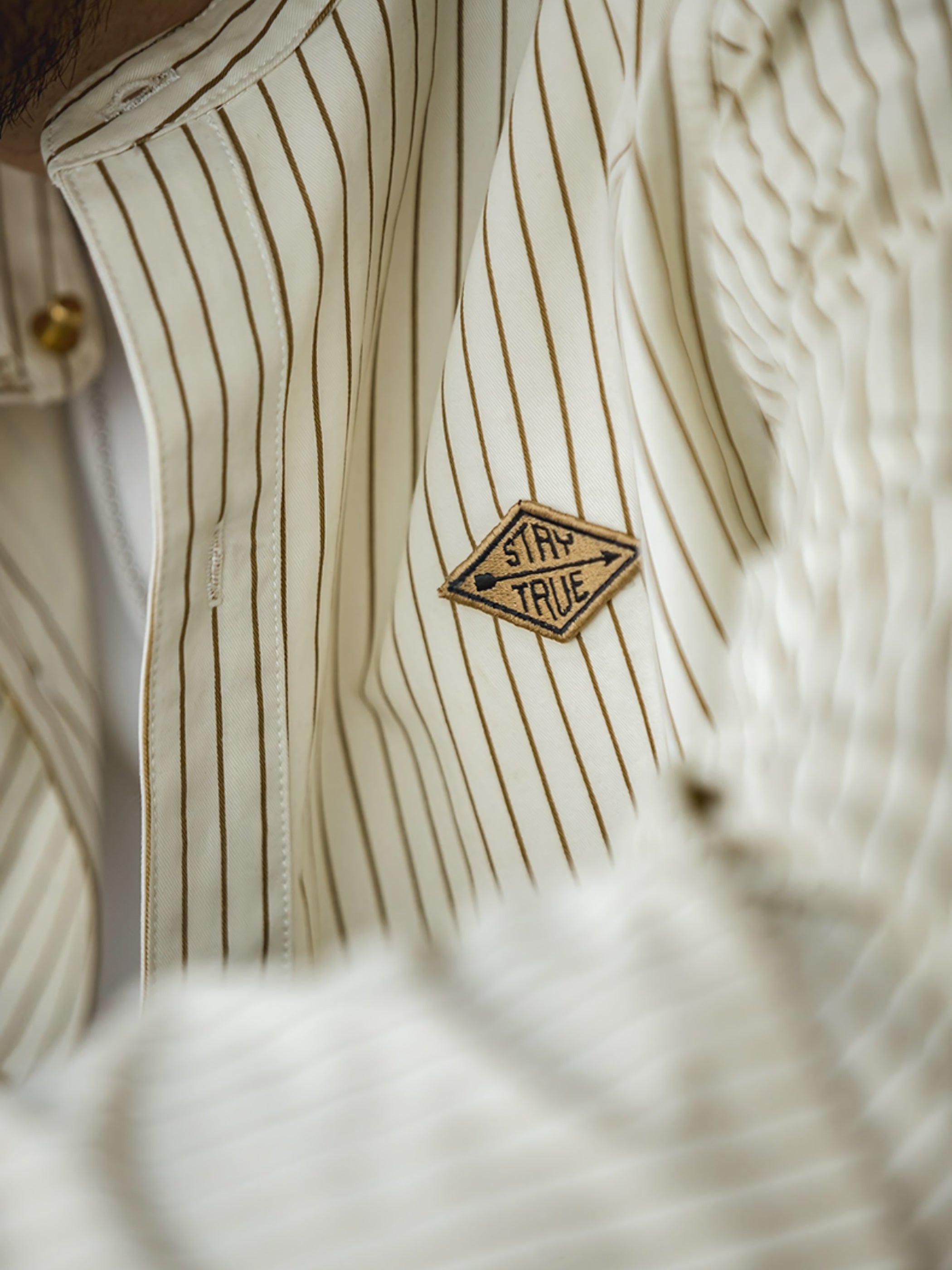 本アイテムはフロント左胸に「stay true」という英字の刺繍バッジを配置し、キャッチーでレトロなベースボールシャツのテイストを加えることで、トレンドのストリートとヴィンテージ感を融合したデザインになっています。ストライプの仕様がオールドスクール感を漂わせ、適度なビッグシルエットが様々な着こなしに対応します。
