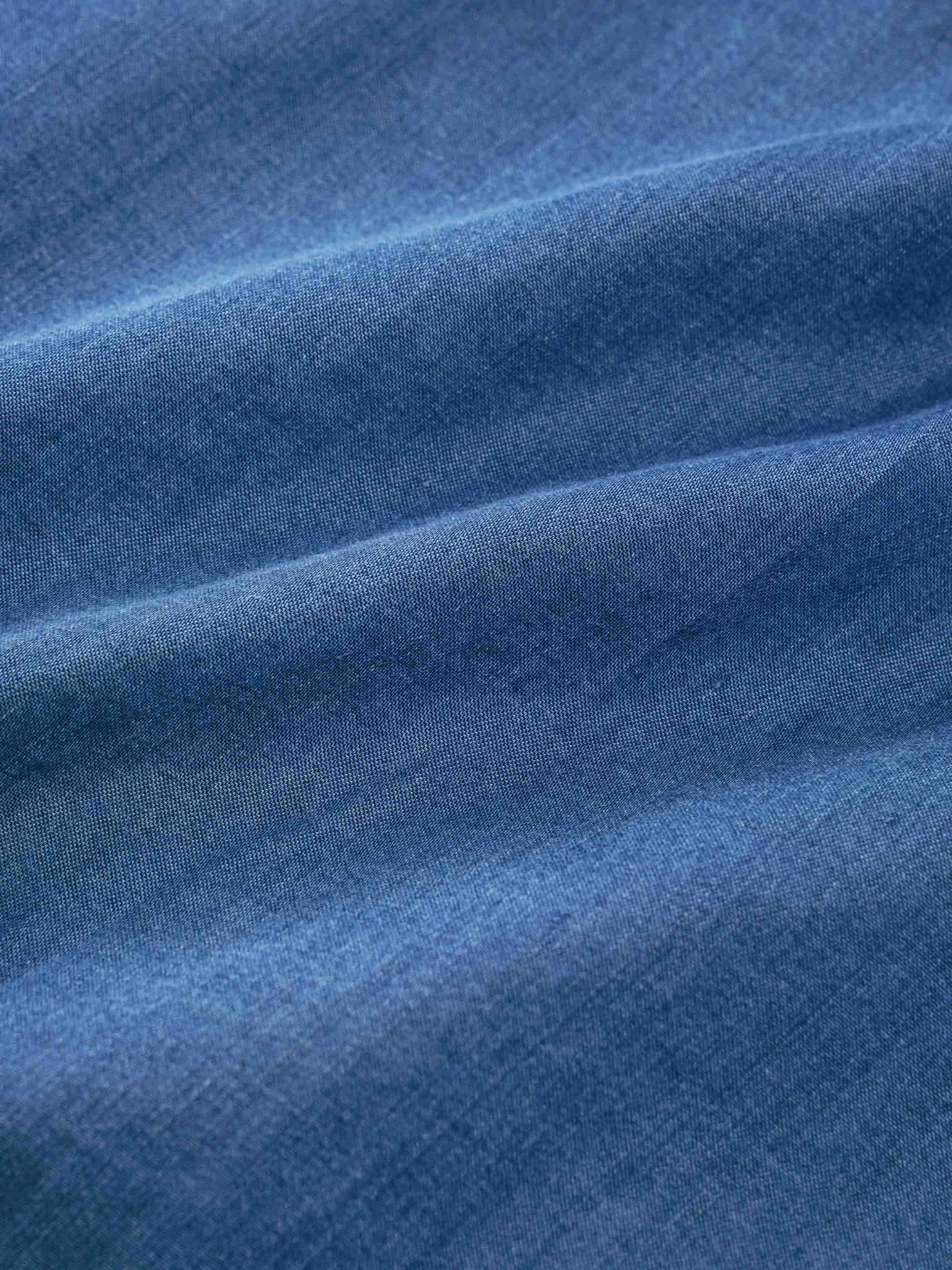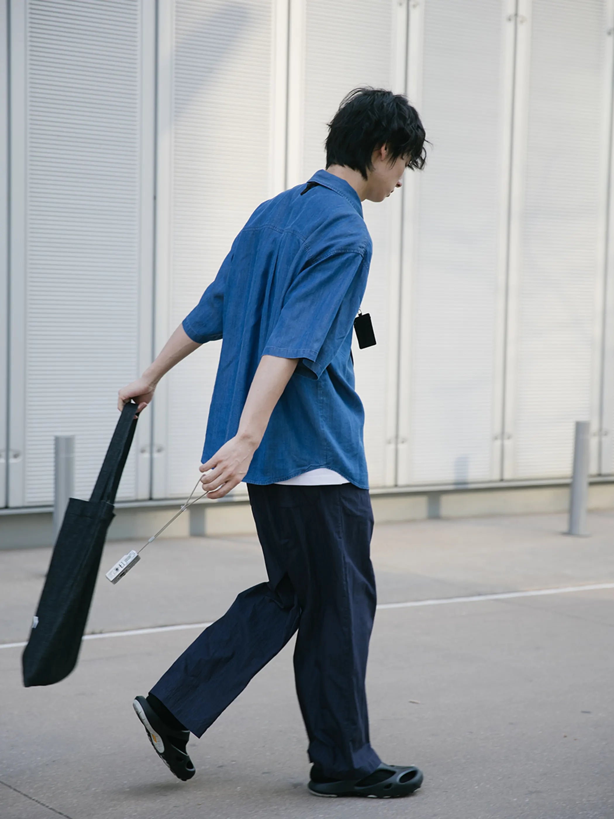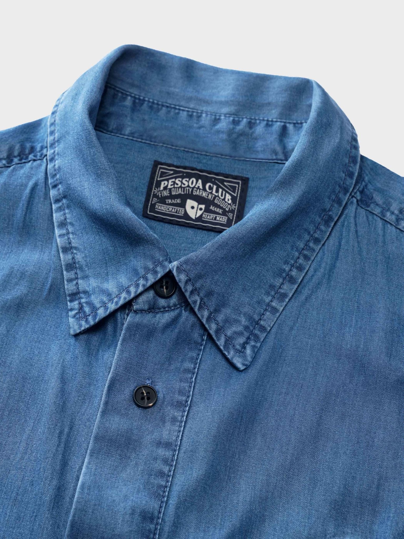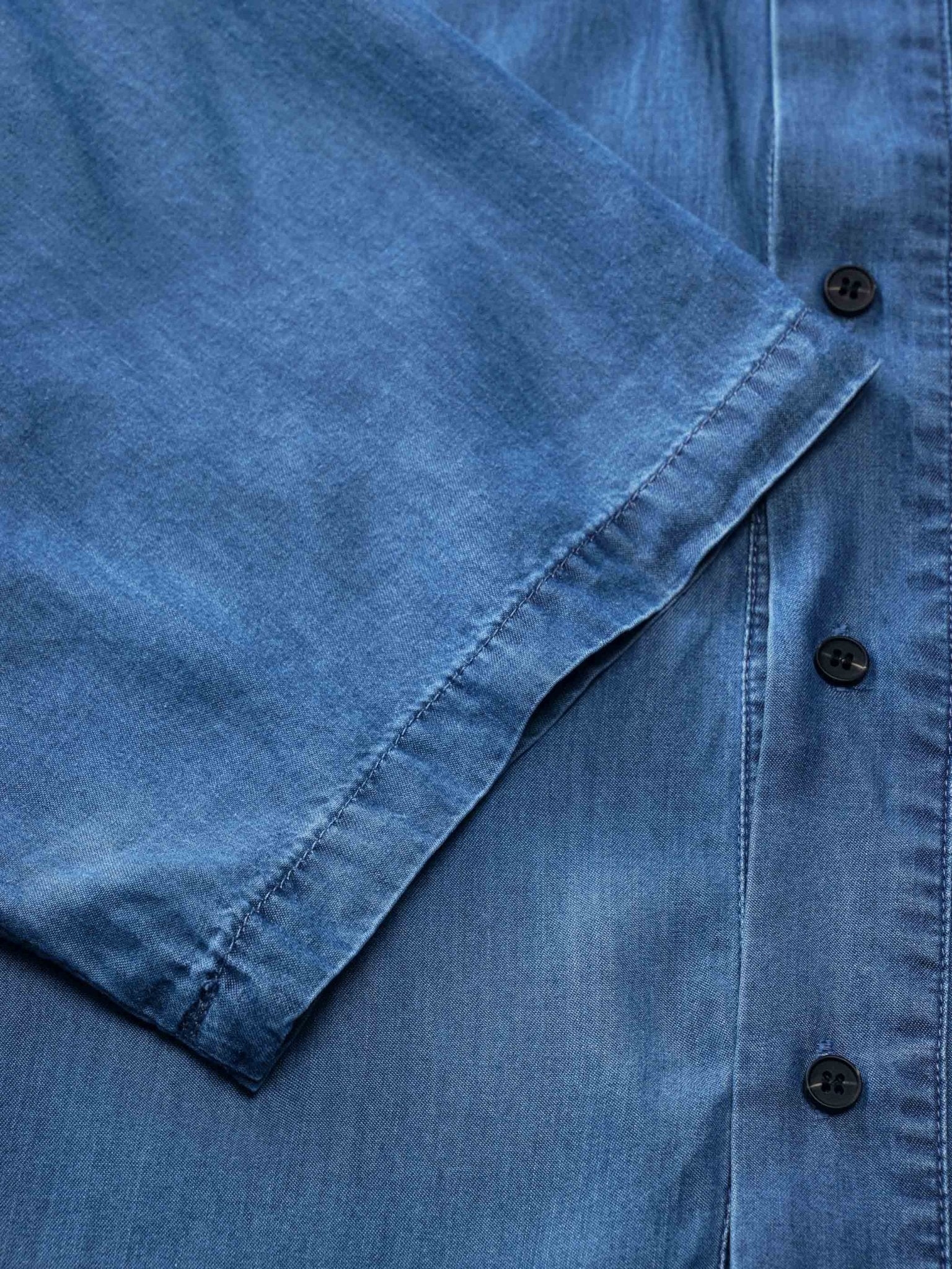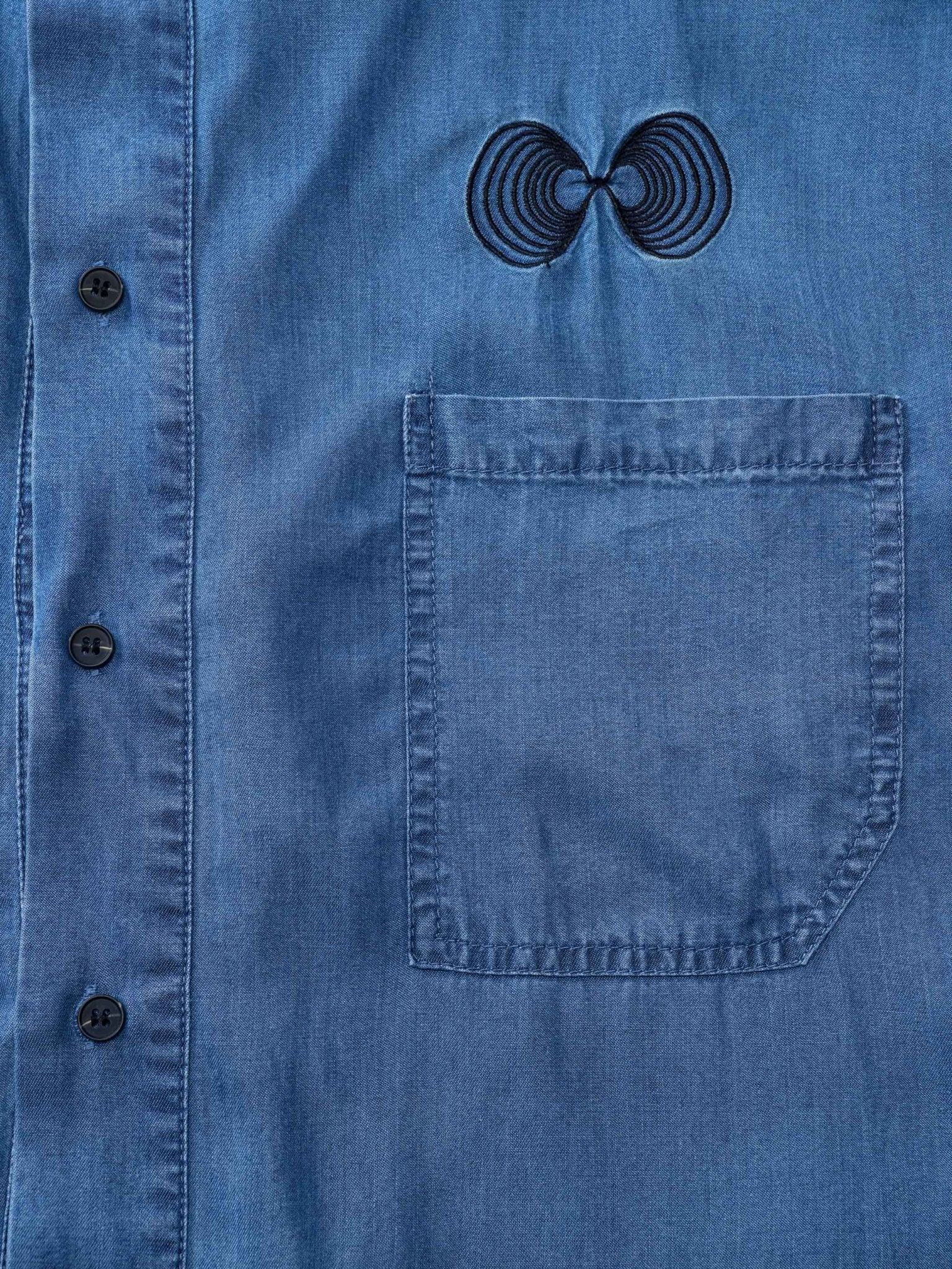 このデニムシャツは、クラシックなインディゴを基に特別なセルロース繊維の生地を使用し、環境保護や持続可能なファッションの理念を表現しています。