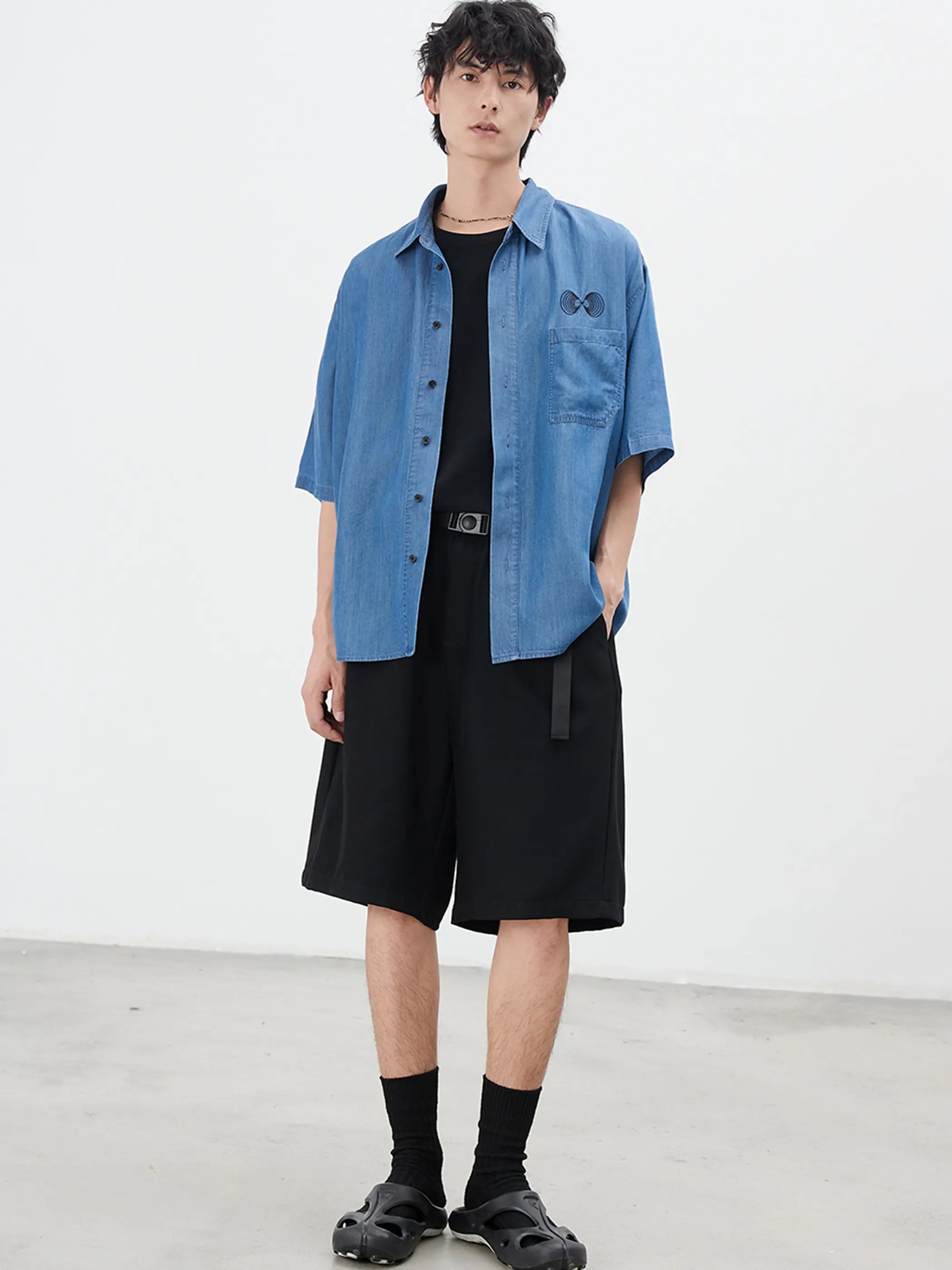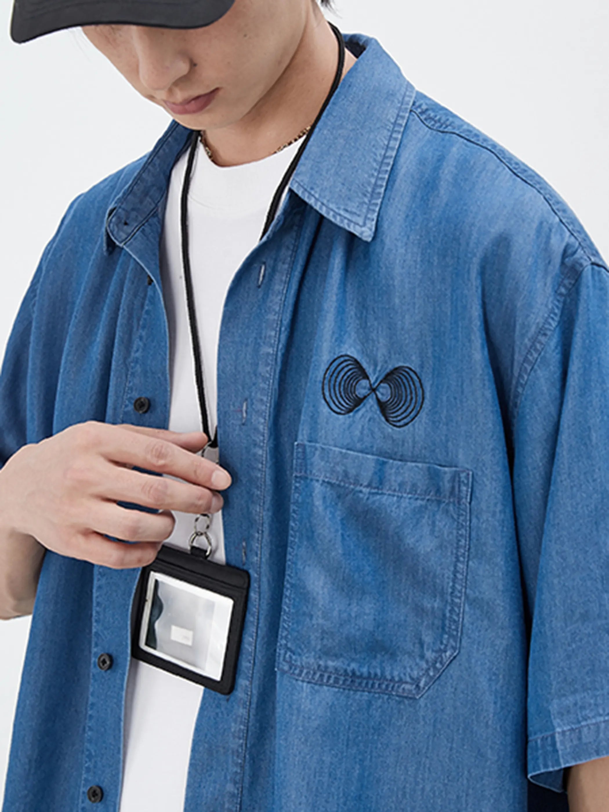 胸の四角いポケットのデザインが実用性を高め、さらに無限大の刺繍がシャツに華やかさを加え、細かな手作りの技術を際立たせます。