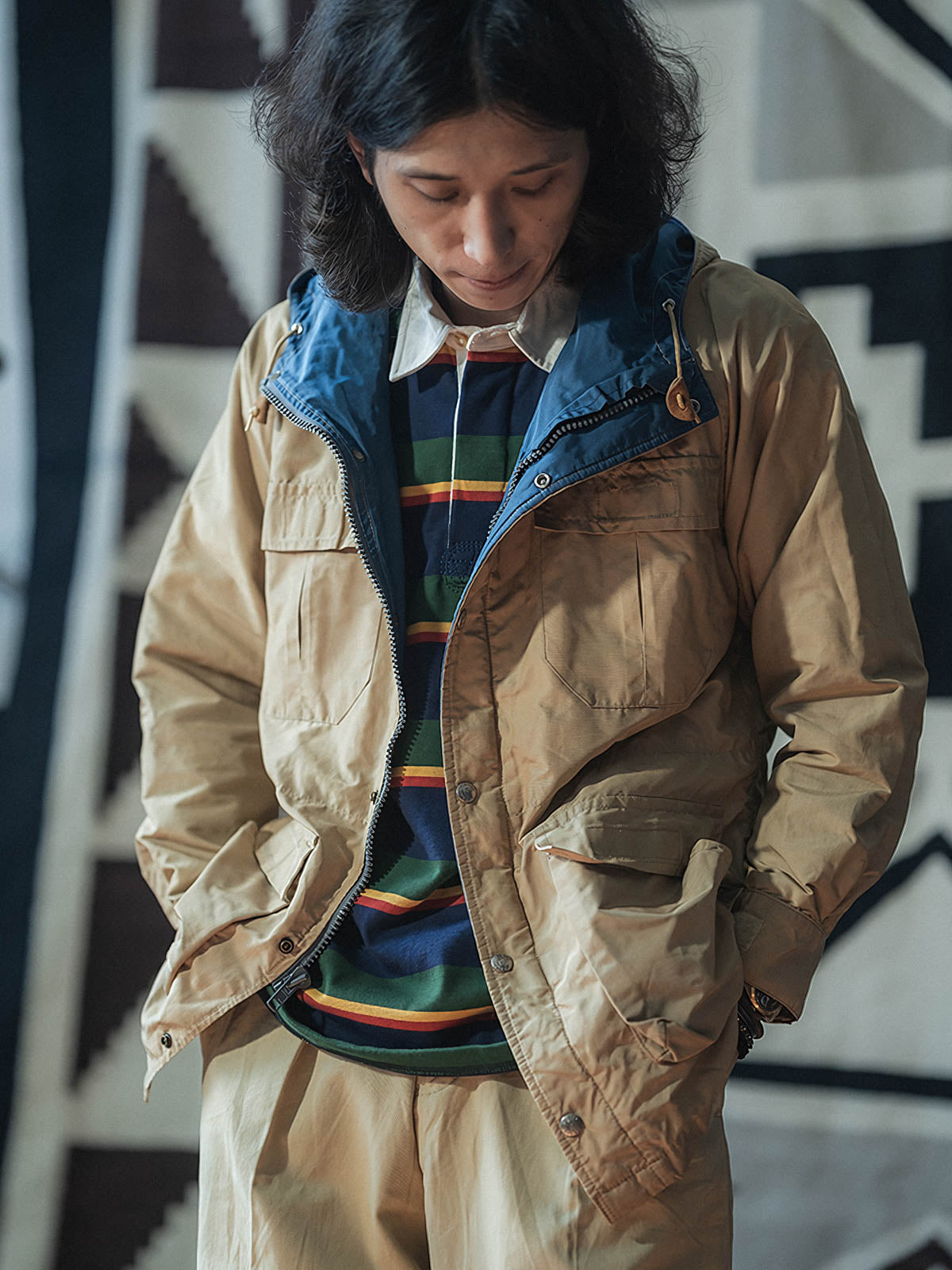耐久性に優れたコットン生地を使用し、洗練された風合いを醸し出しています。首元のカラーとプラケットにはコントラストを効かせ、細部にまでこだわりが見えます。