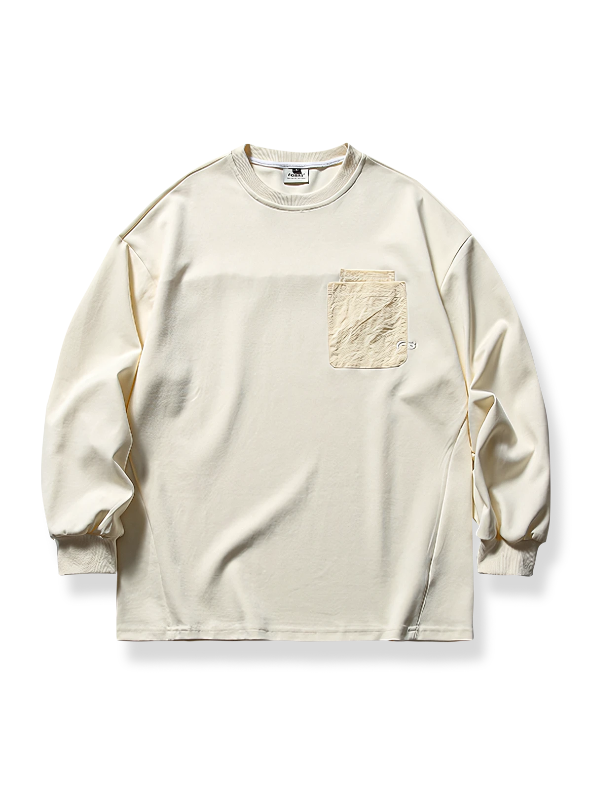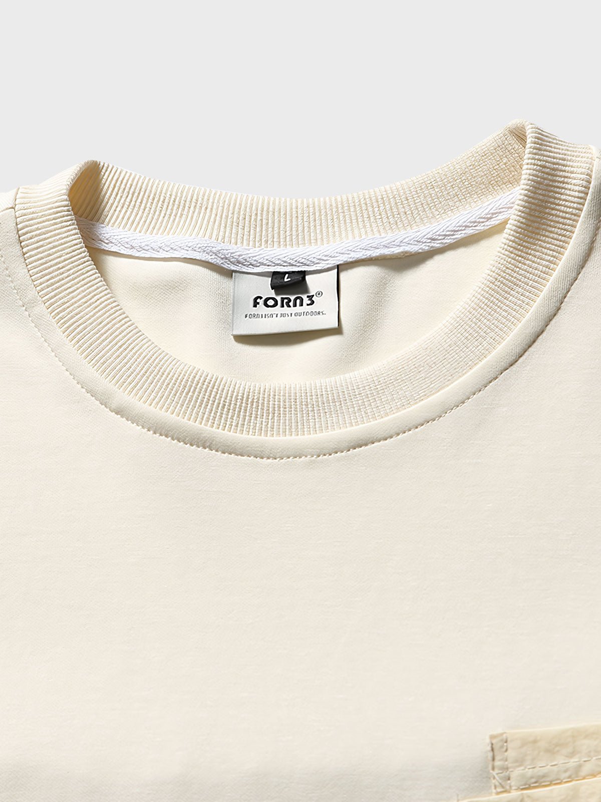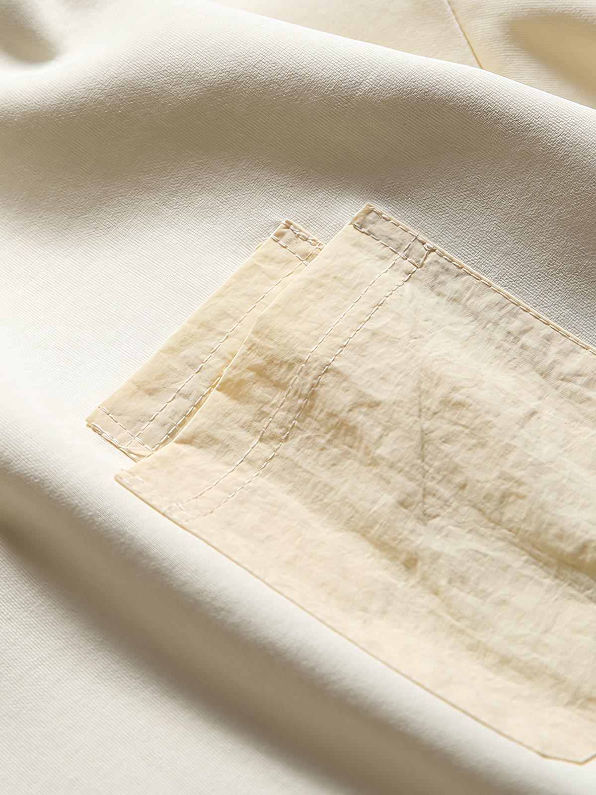 Tシャツの素材には高品質の純綿を選び、通気性と柔らかさを保証し、あらゆる肌質に適しています。双層ポケットの上層は本体の色と対照的な淡色調を採用し、デザインのディテール感を加えています。