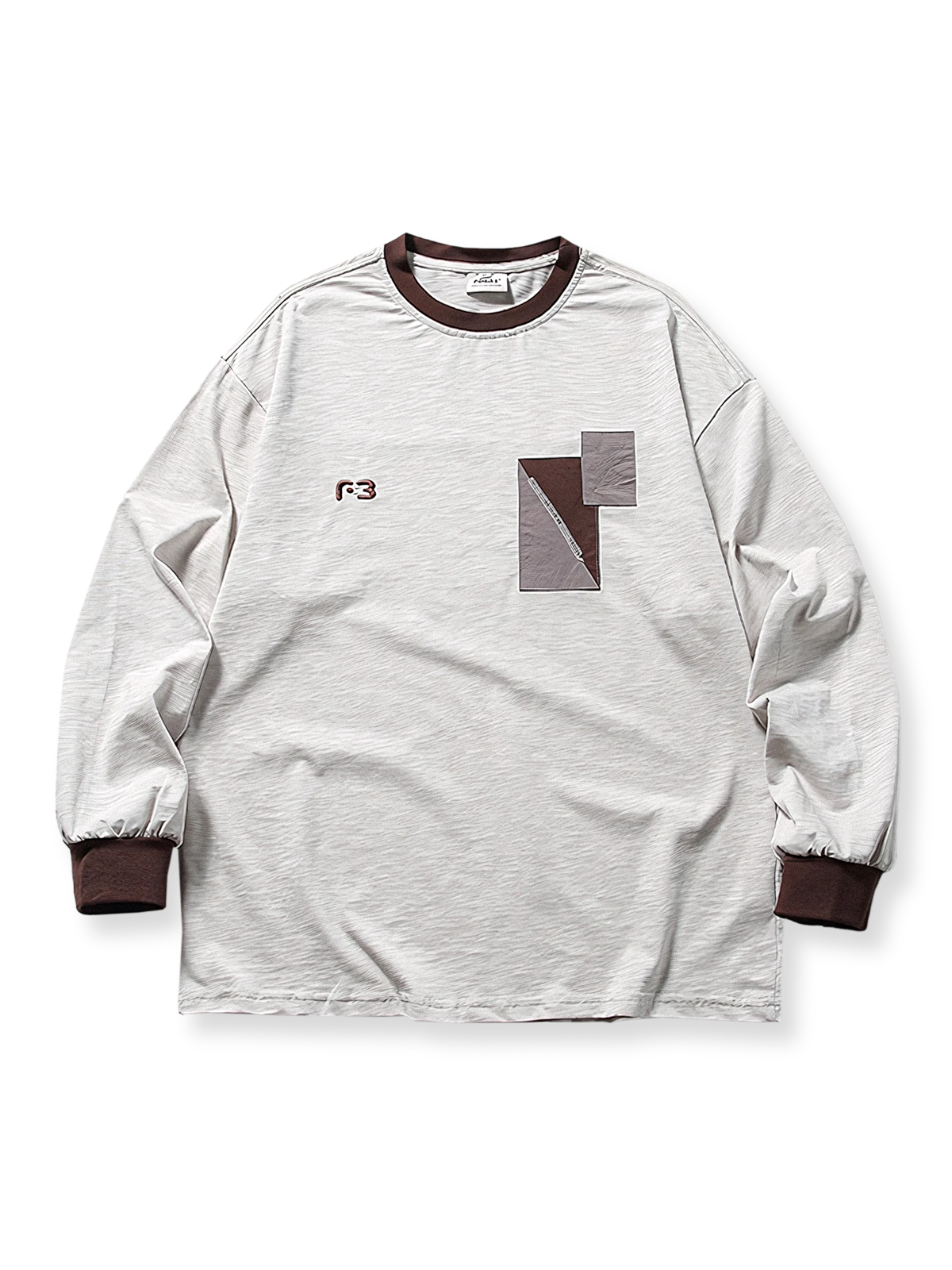 このスウェットは、落ち着いたカラートーンにビビッドなパッチワークが際立つデザインが特徴です。フロントの刺繍がアクセントになり、日本のストリートウェアからインスパイアされたユニークなスタイルを演出しています。