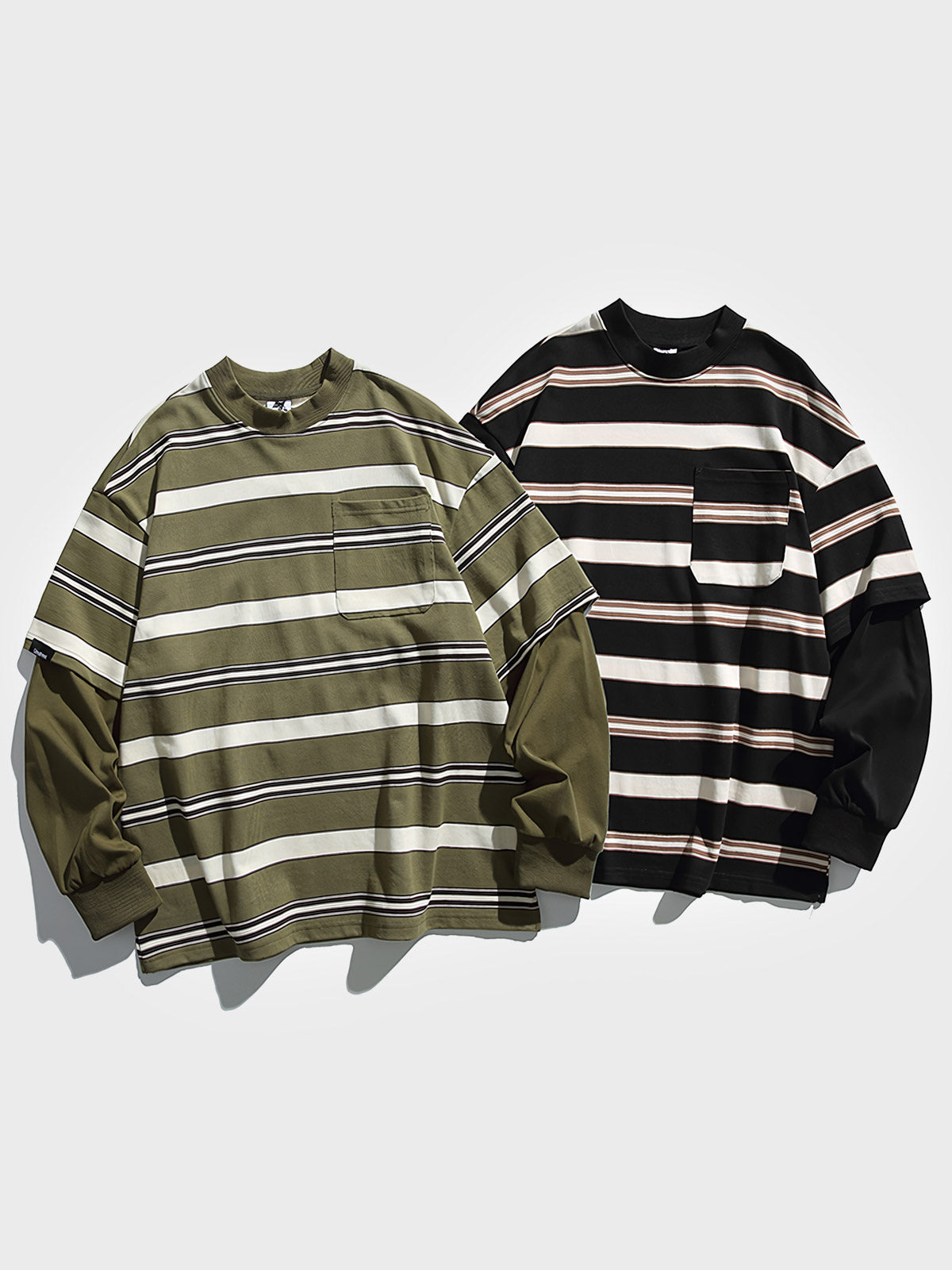 この長袖Tシャツは100%コットン素材を使用しており、快適で通気性に優れ、年間を通じて着用できます。レイヤード風のデザインが層次感とファッション性を提供し、クラシックなストライプ柄が全体のコーディネートを引き立てます。ルーズフィットのシルエットで、動きやすく、アウトドア活動や日常のカジュアルスタイルに適しています。シンプルで上品なクルーネックデザインで、多彩なカラーバリエーションがあり、さまざまなスタイルに対応できます。