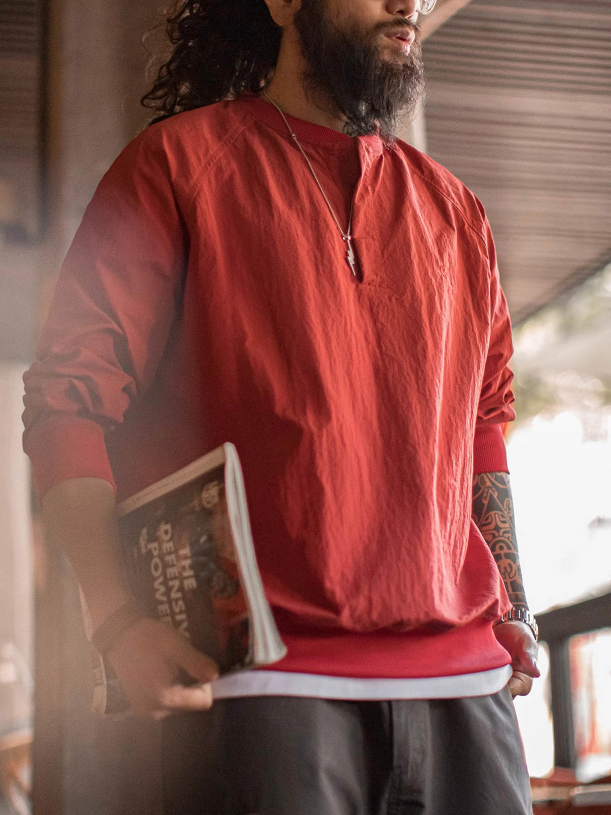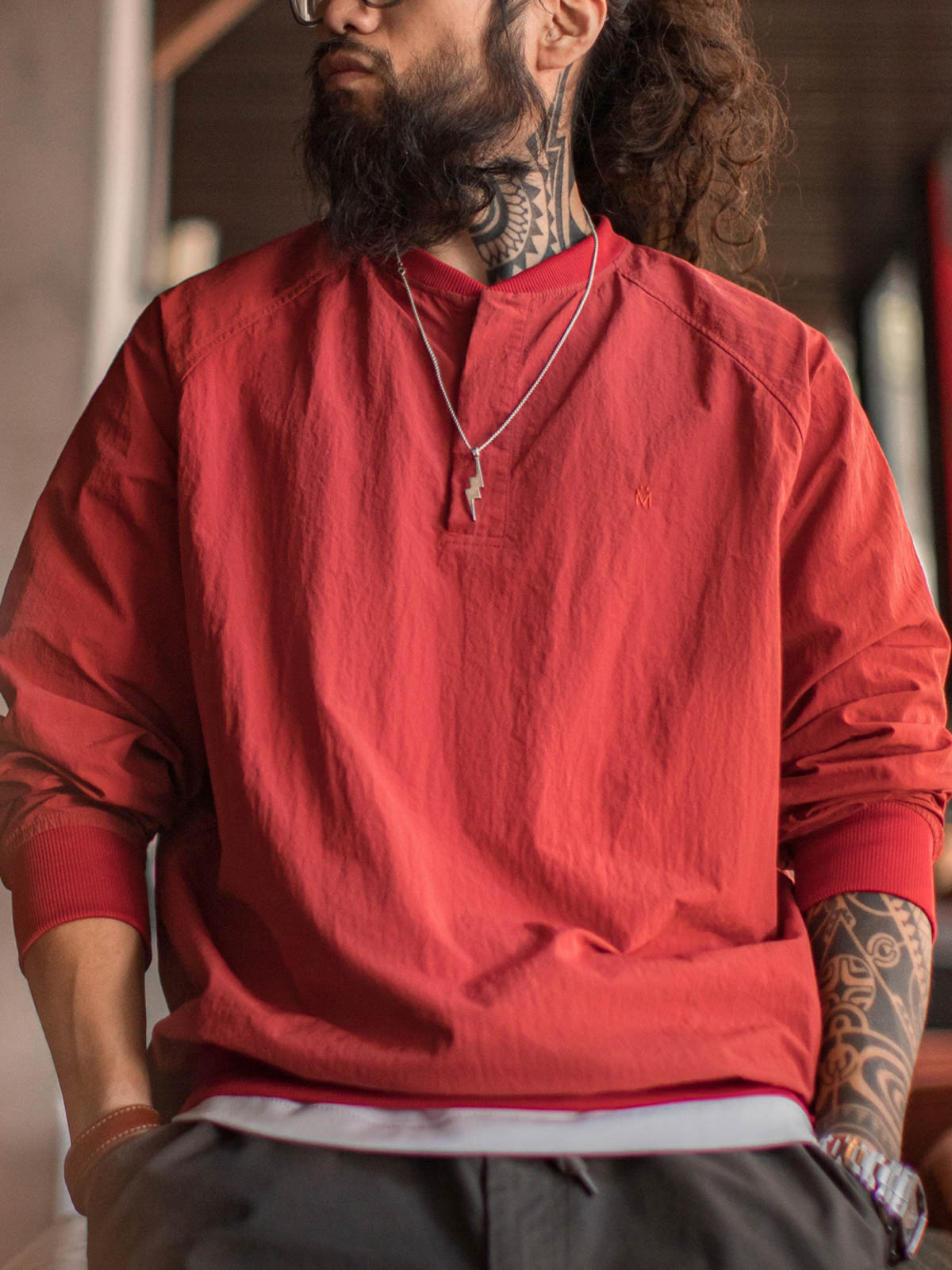 野球ウェアならではのリブカラーを採用しながら、現代的な着心地を追求。リラックス感のあるショルダーラインで、都会的な装いの中にスポーティさを表現しています。上質なナイロン素材が生み出す独特の表情と、着こなすほどに増す味わい深さが特長です。