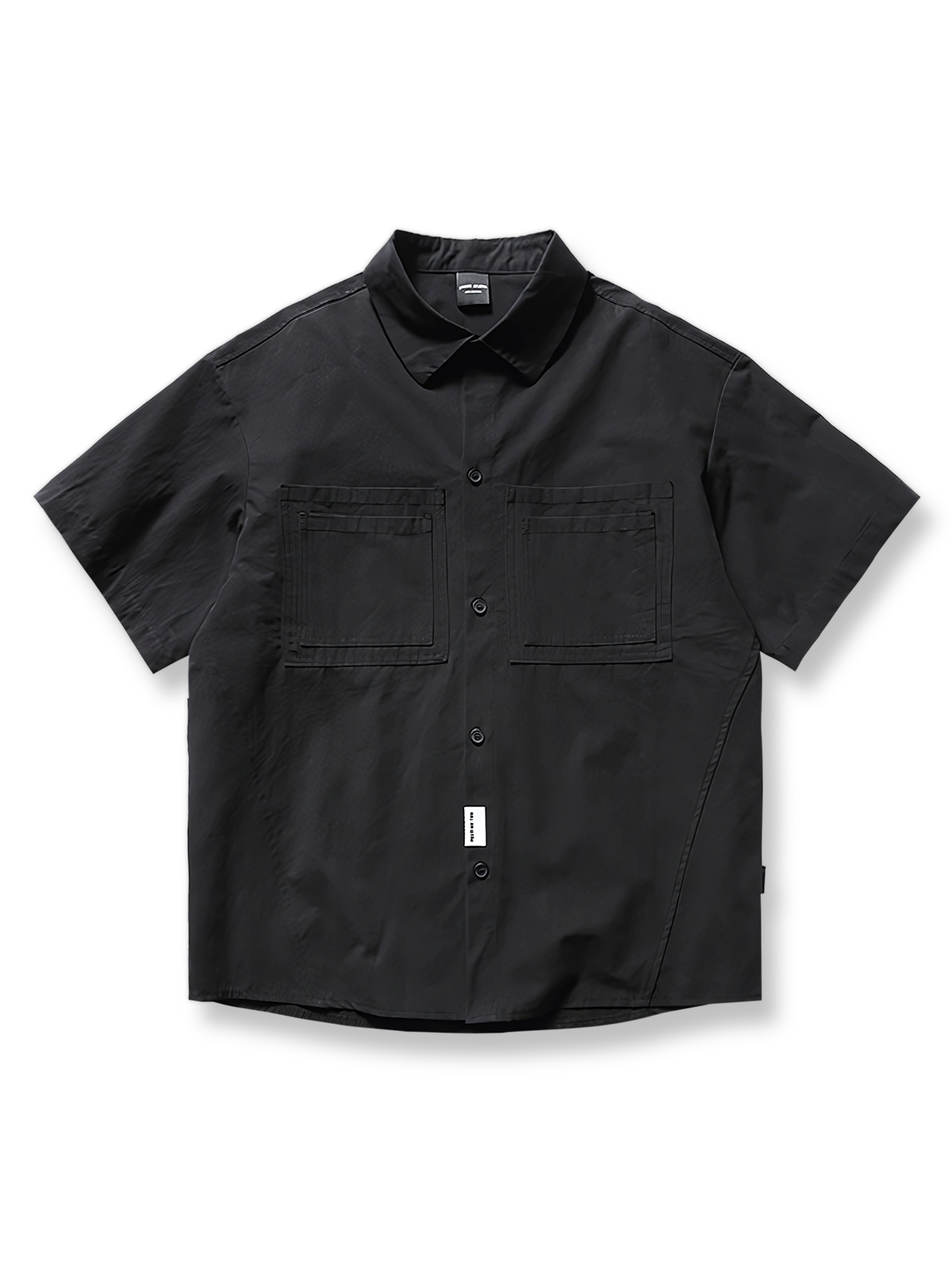 ゆったりとしたシルエットとダブルポケットのデザインが特徴のレトロなカジュアル半袖シャツ、シティボーイスタイルを完璧に演出。