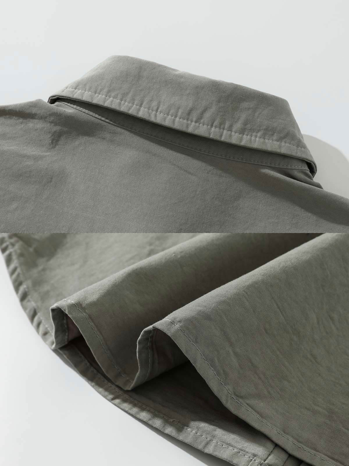純綿素材は、柔らかさ、吸汗性、お手入れの容易さを保証し、日常着に適しています。シャツの前面の対照的な色のボタンの糸、胸ポケット、精巧な縫製などの詳細が品質とデザインへのこだわりを示しています。