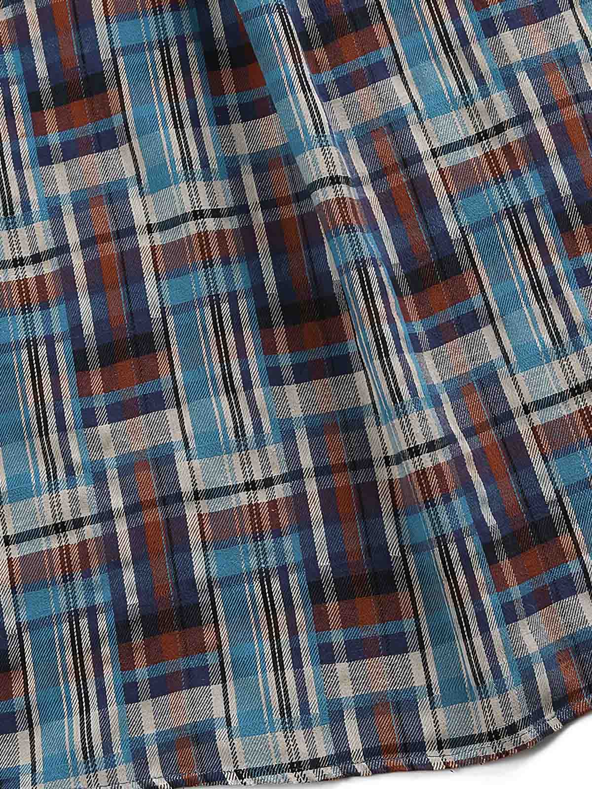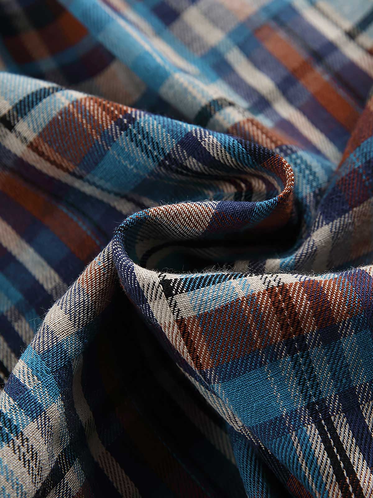 このシャツは通気性に優れた柔らかい綿素材と、形状保持に役立つポリエステルを組み合わせています。細かく均一に配置されたチェックパターンと精緻な縫製が品質を際立たせ、長持ちする耐久性を提供します。