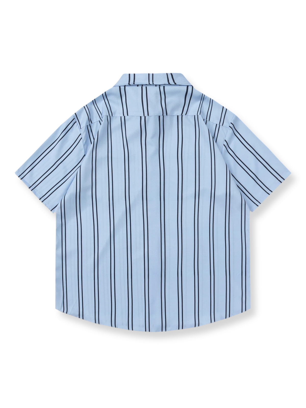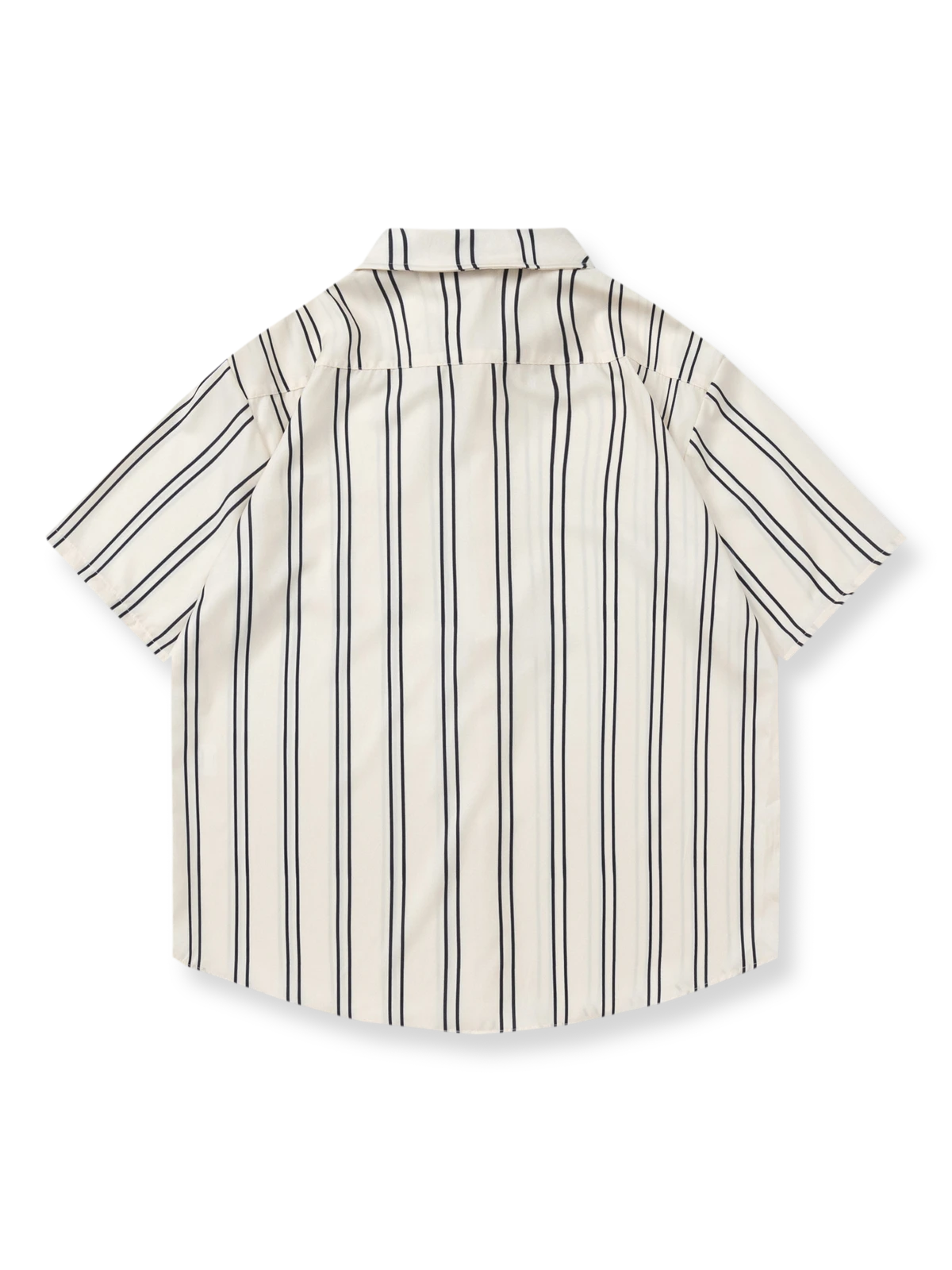 このシャツは複雑なストライププリントパターンを採用し、クラシックなボヘミアンスタイルを現代的に解釈しています。19世紀のフランスに起源を持ち、遊牧民やアーティストの集団と関連付けられた自由で放任な生活態度と芸術表現を象徴しています。