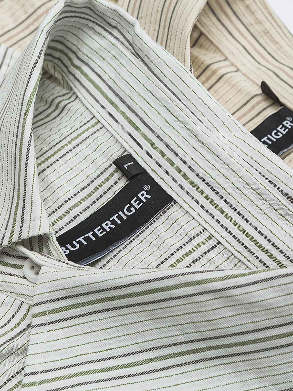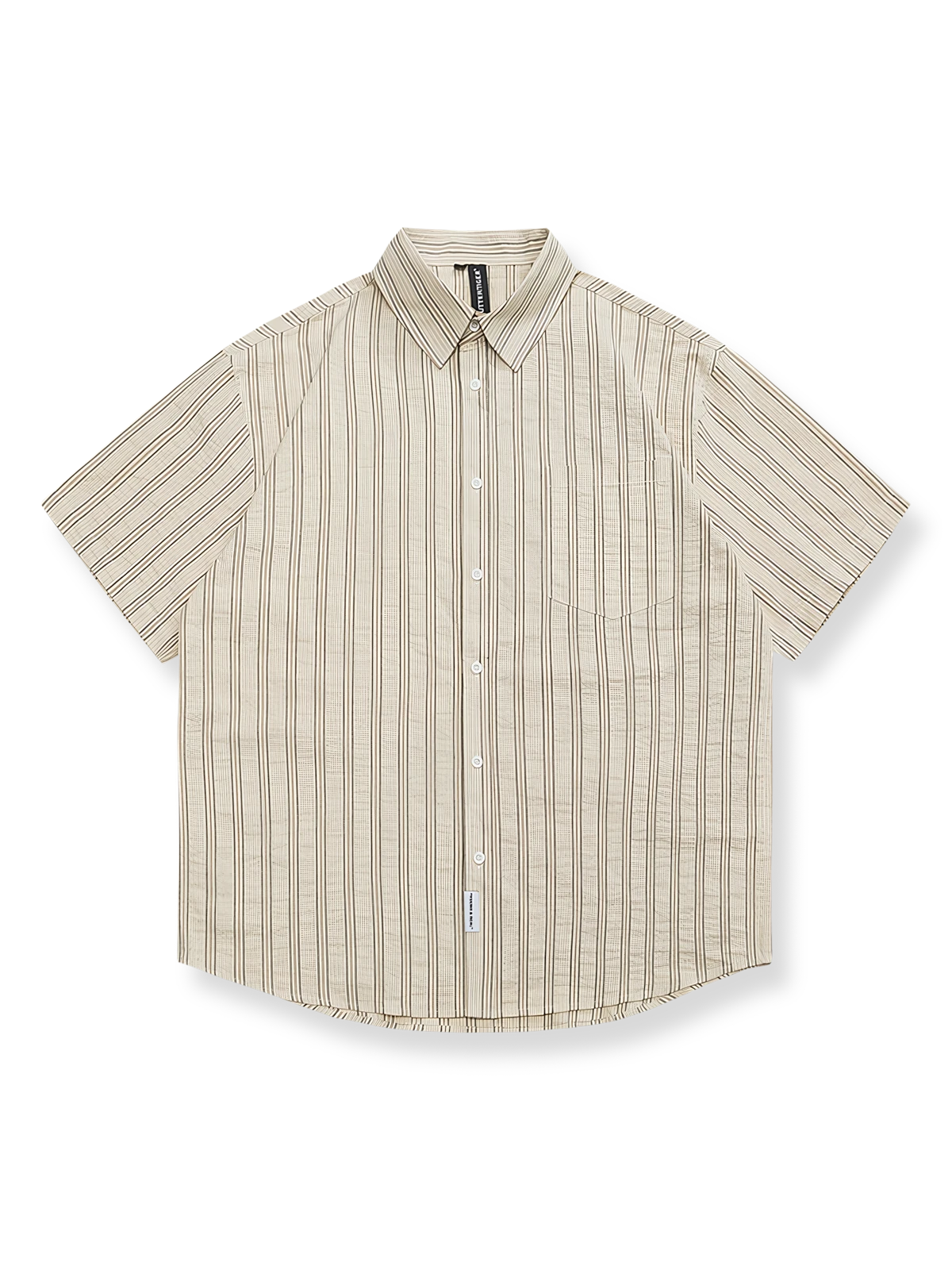 バブルガーゼシャツは、その特有の質感と優れた通気性で知られています。このシャツは伝統的な織り技術をベースに現代技術を取り入れて改良され、特に夏の装いに適した素材として重宝されています。長い歴史を持つストライプ柄は、その変わらない魅力でクラシックなスタイルを提供し、時代を超えた洗練された外観を保持します。
