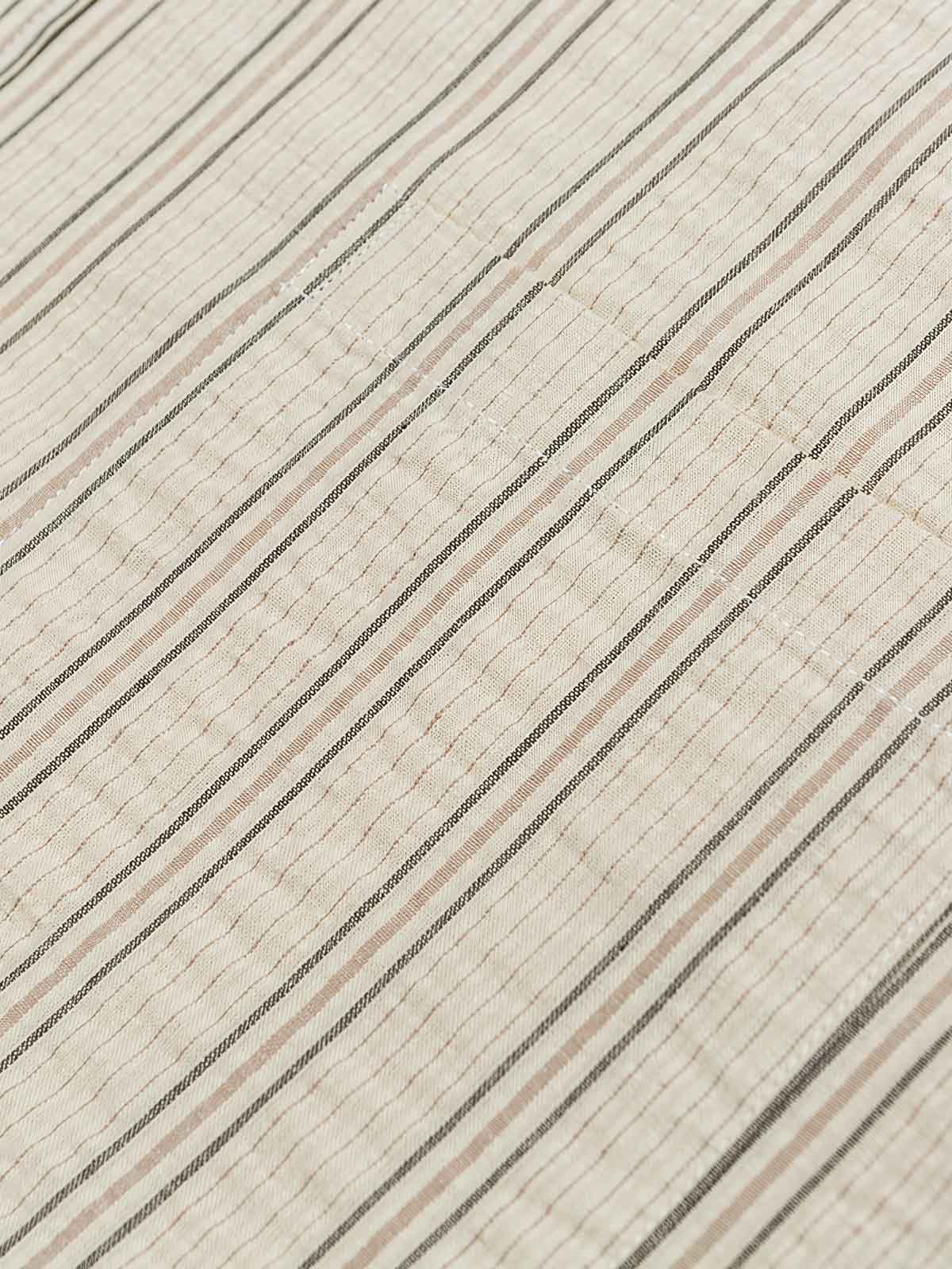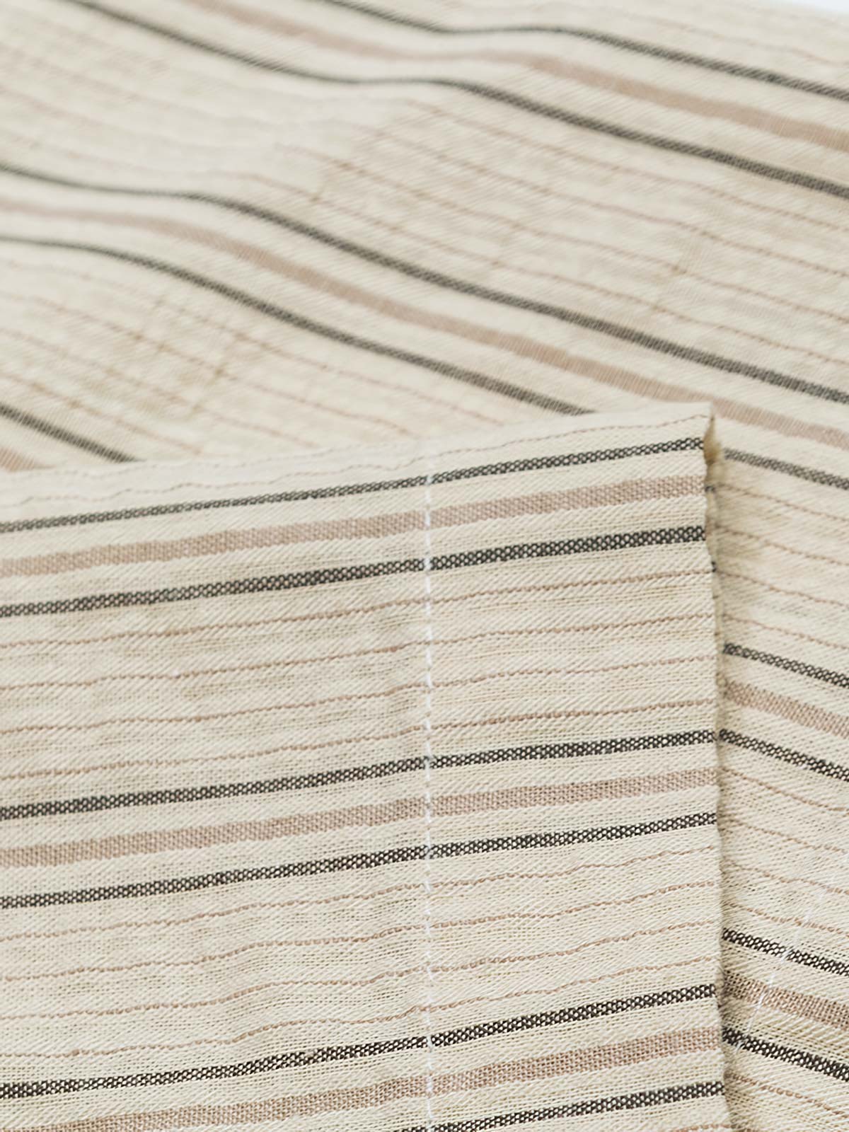 独特のバブルガーゼ素材を使用しており、その構造は通気性と吸湿性に優れています。シンプルなストライプパターンが洗練された外観を提供し、カジュアルながらも品のあるスタイルを演出します。