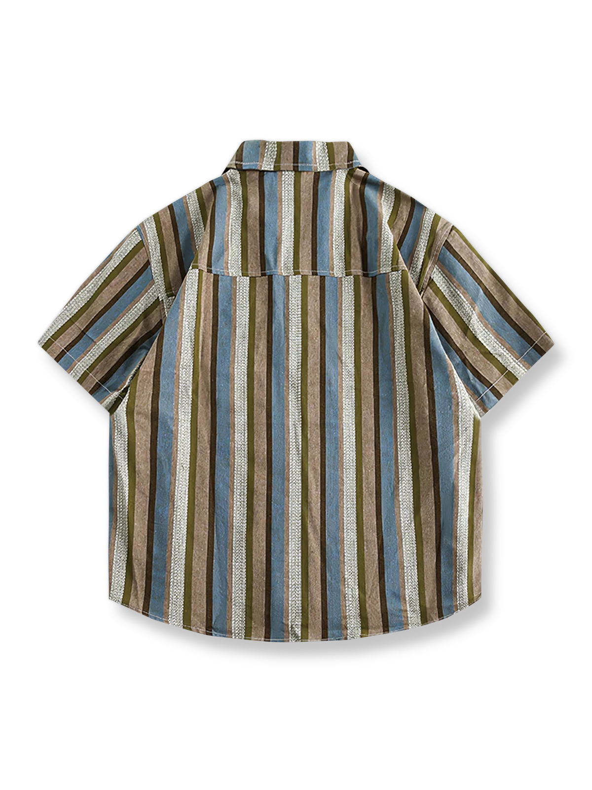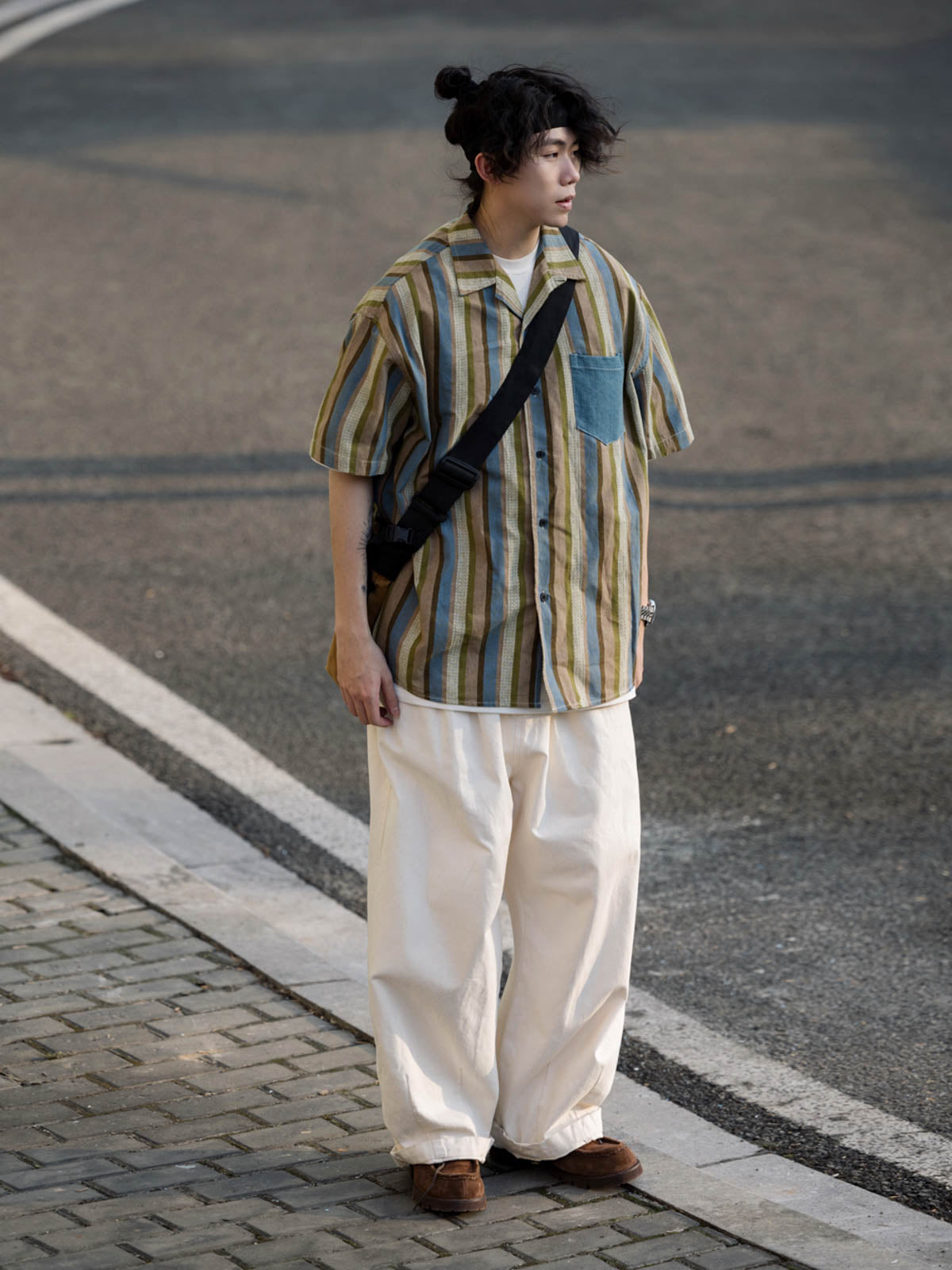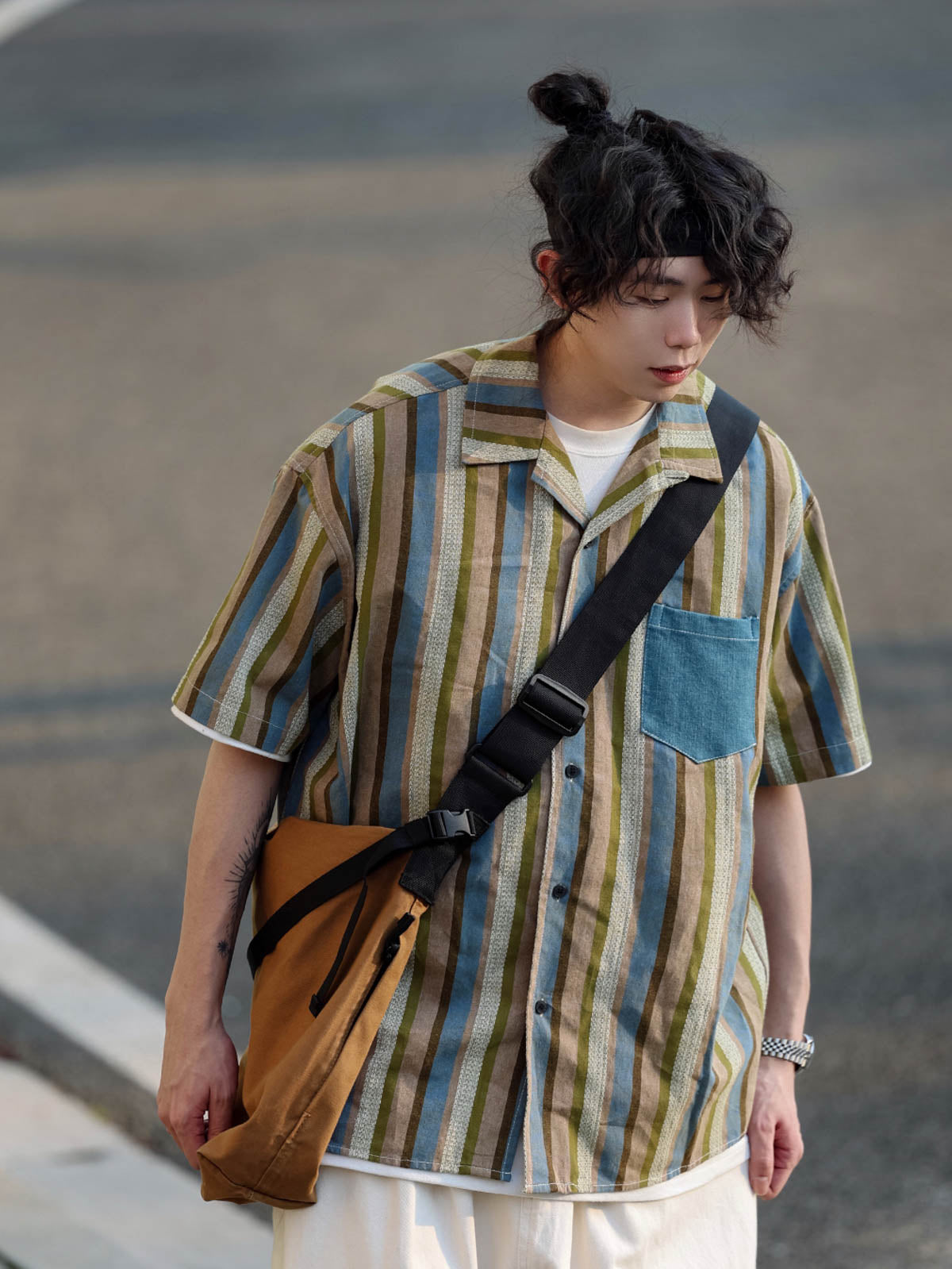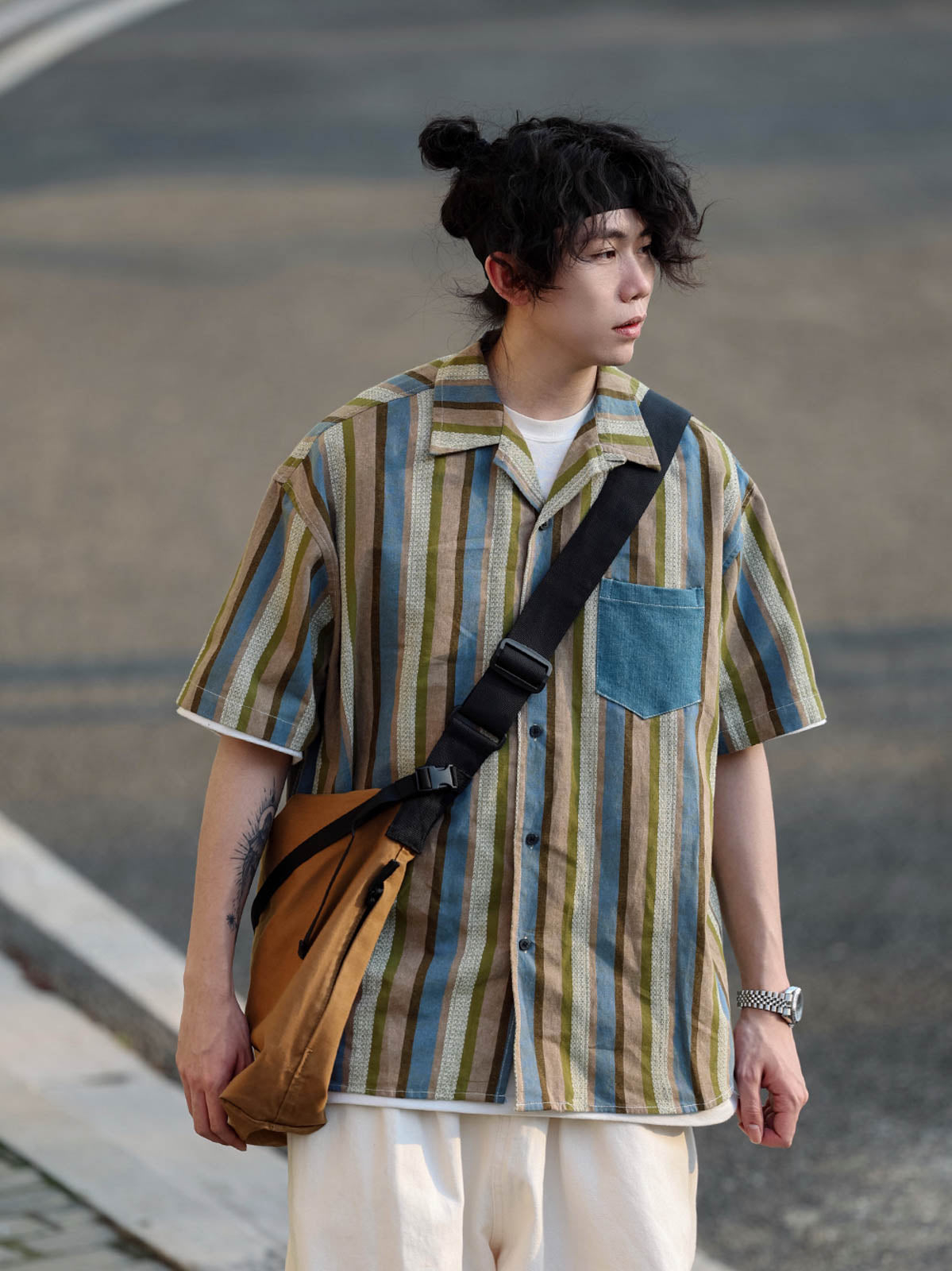 この半袖シャツは100%コットン素材を使用しており、快適で通気性に優れています。ユニークなカラフルなストライプデザインが活力と個性を引き立てます。クラシックな襟のデザインで、胸ポケットが実用性とデザイン性を兼ね備えています。リラックスフィットのシルエットはさまざまな体型に適しており、十分な動きやすさを提供し、夏でも涼しく快適に過ごせます。コーディネート提案:ジーンズやカジュアルショーツと合わせて、爽やかな夏のスタイルを簡単に演出できます。