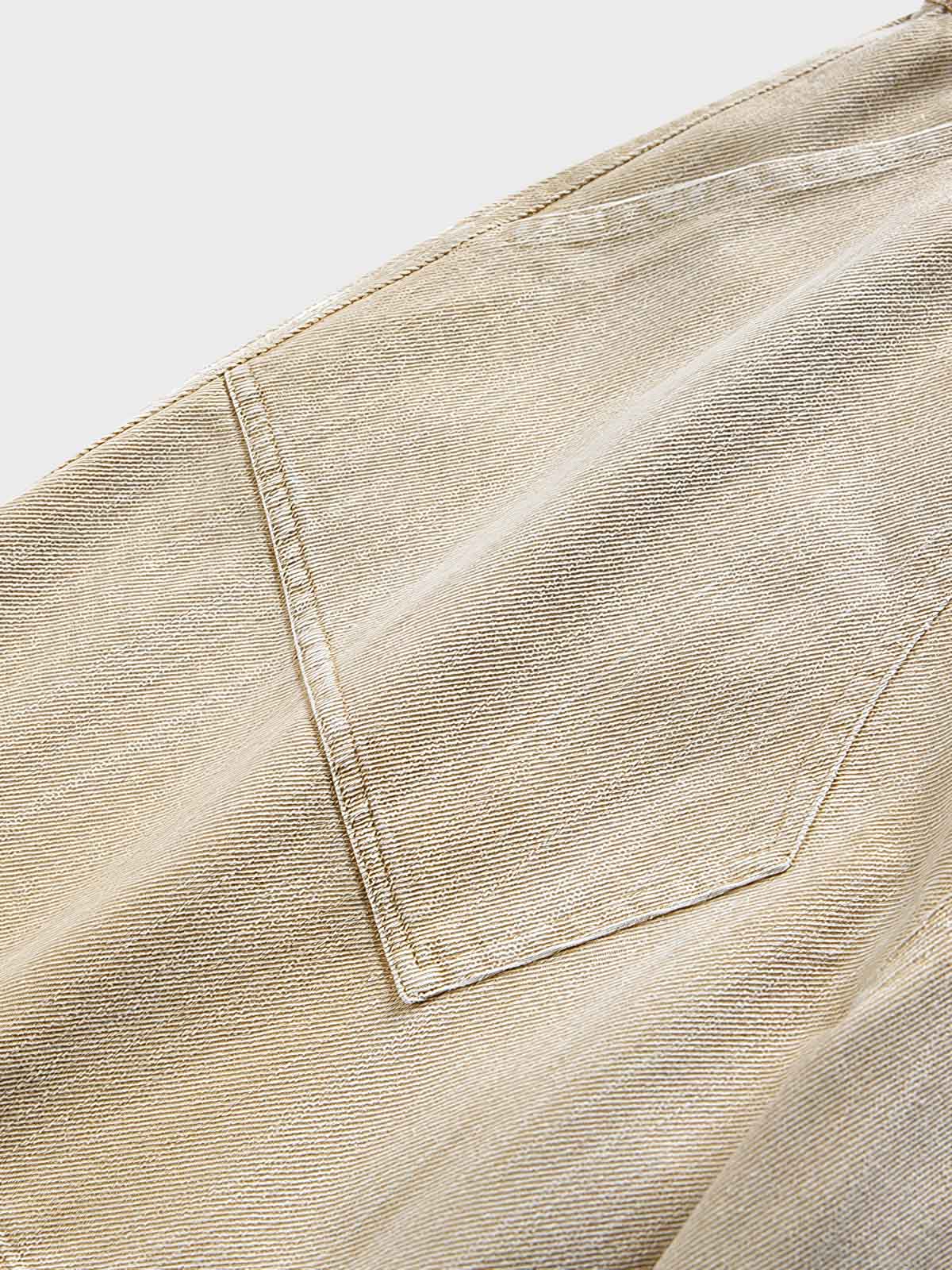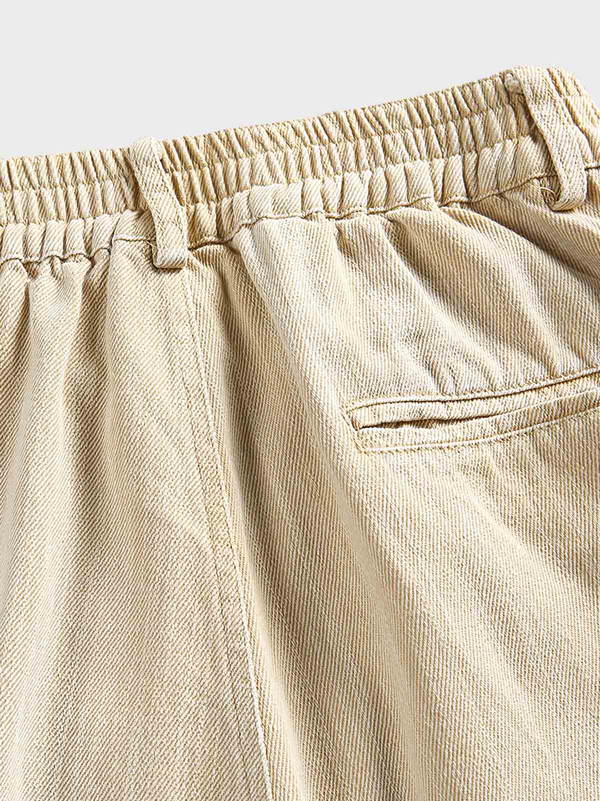 竹節柄を施したこのサンドウォッシュショートパンツは、自然からインスピレーションを得たデザインです。サンドウォッシュ加工は布地に独特の柔らかさとヴィンテージ風の外観を与える技術で、20世紀に流行しました。このパンツの竹節柄は、竹の自然な形状とテクスチャを模倣しており、自然の強さと柔軟性を象徴しています。