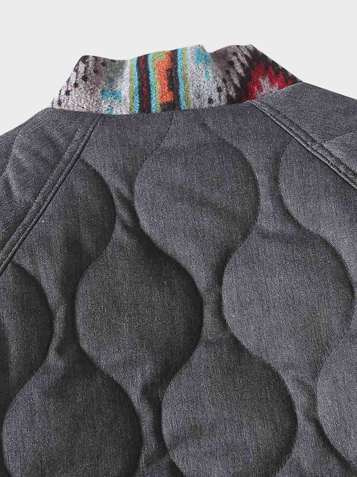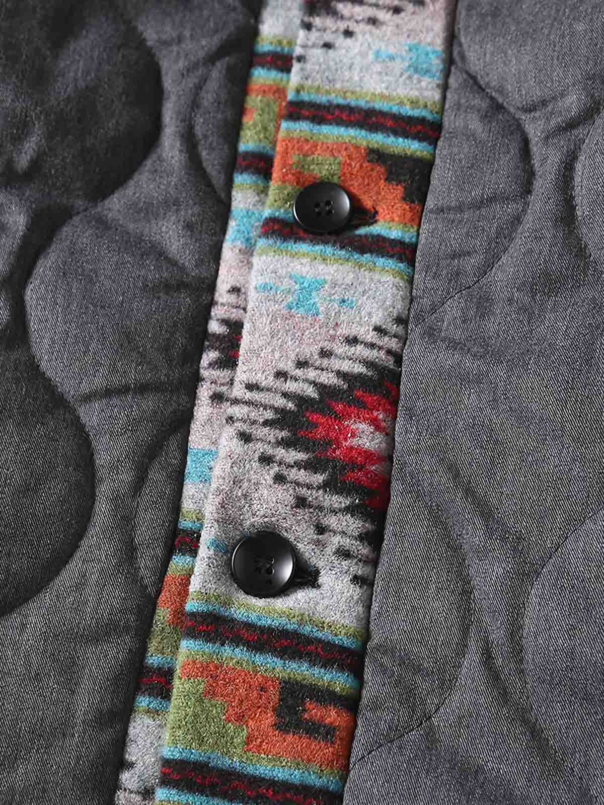 保温性に優れた綿素材または混紡素材を使用している可能性があります。民族風のパターンの装飾が含まれており、独特の美しさを加えています。