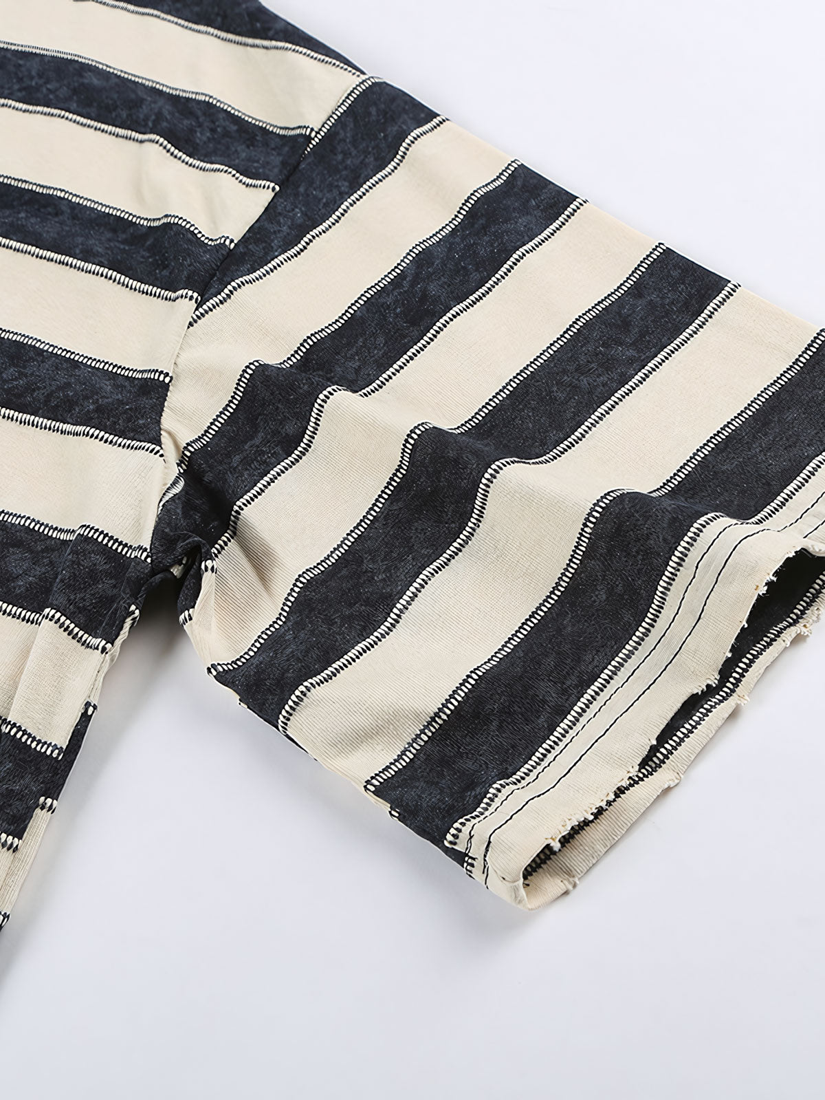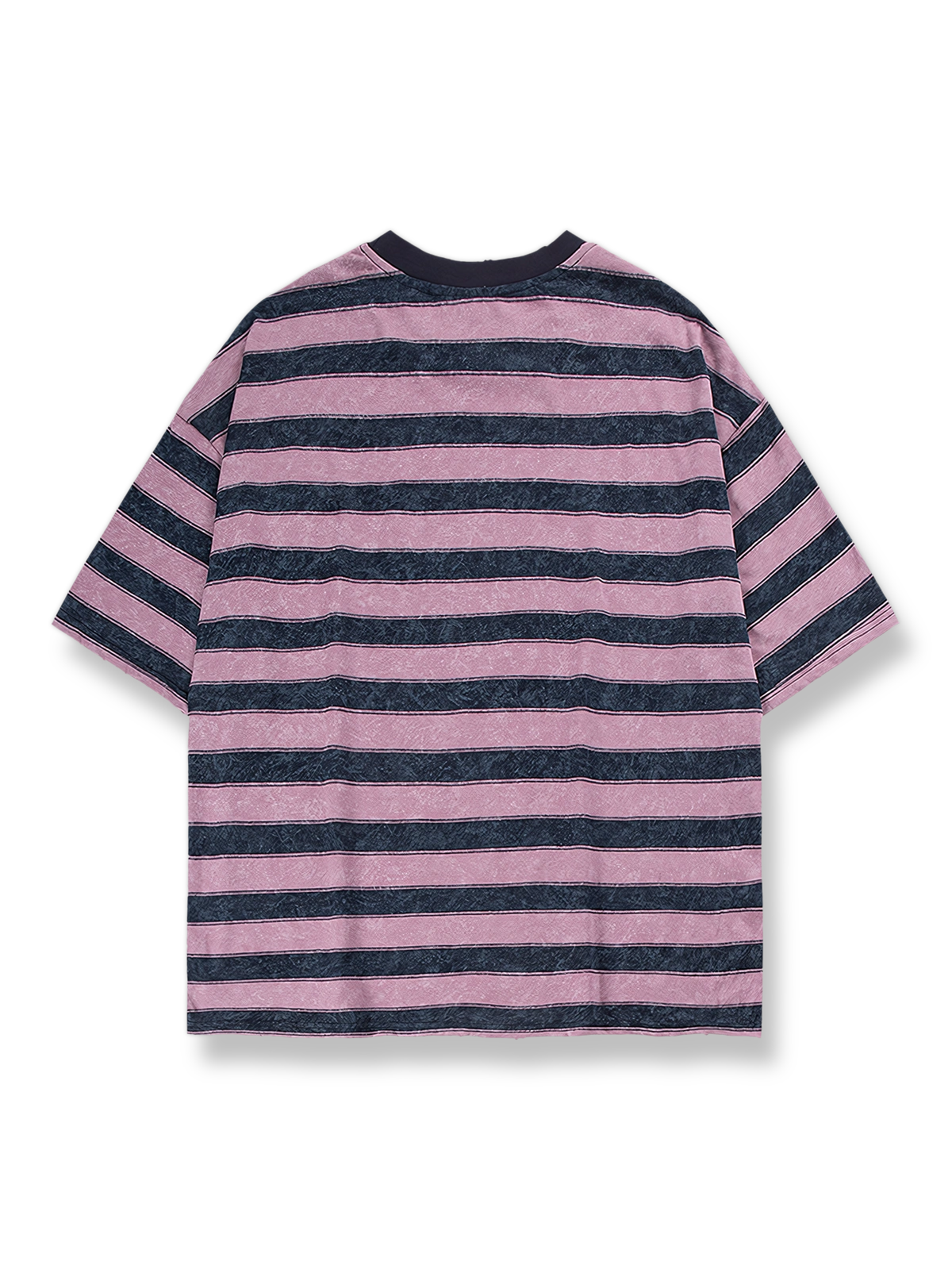 このTシャツは100%コットン素材を使用しており、柔らかく快適で日常の着用に適しています。クラシックなストライプデザインがアメリカンヴィンテージ風の雰囲気を醸し出し、襟と袖口にはダメージ加工が施され、独自の個性とファッション性を加えています。ルーズフィットのシルエットは快適な活動空間を提供し、単独でもインナーとしても着用でき、さまざまなシーンに適しています。