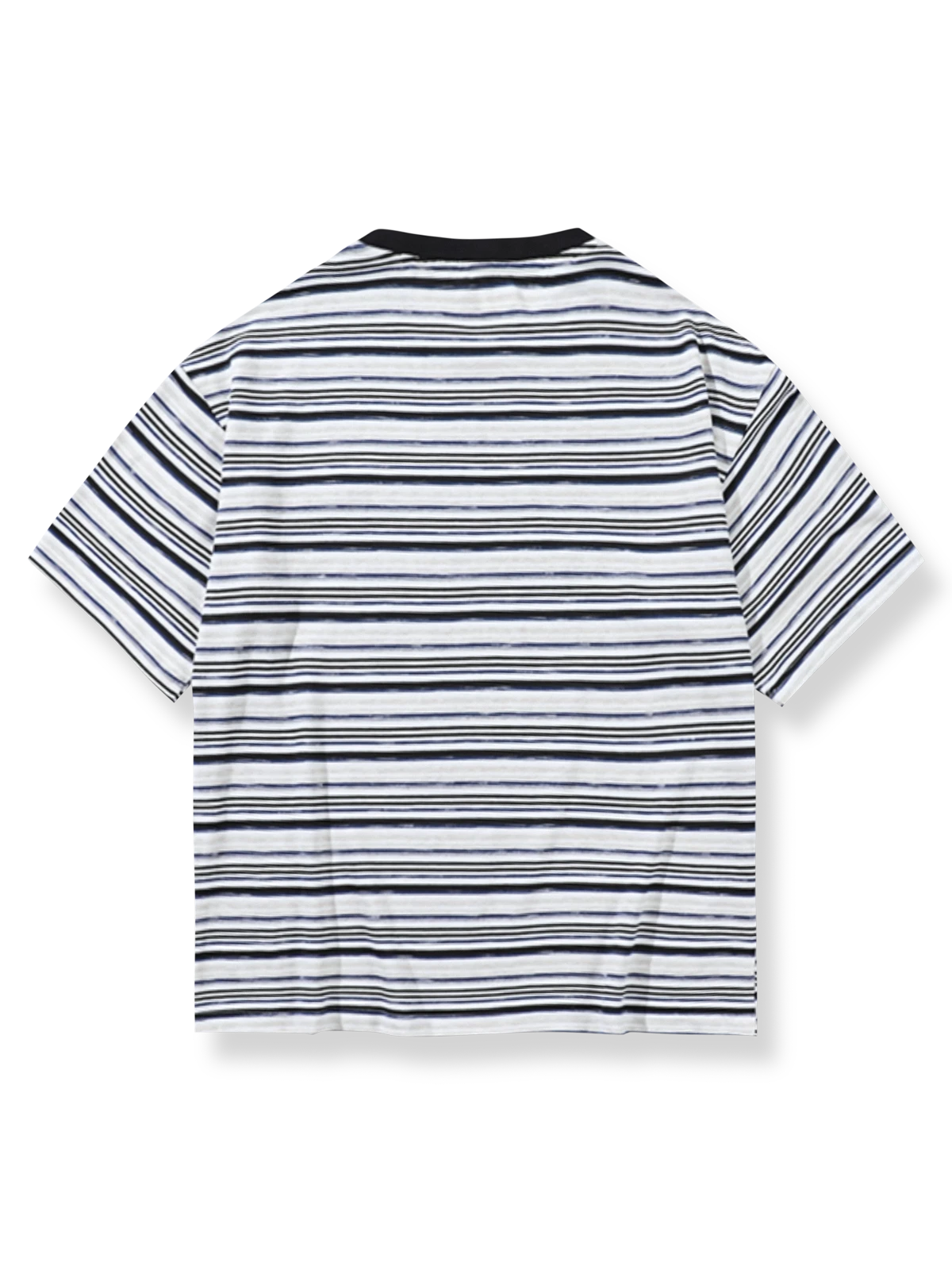 このクルーネックTシャツは100%コットン素材を使用しており、快適で通気性が良く、日常の着用に最適です。クラシックな黒白ストライプデザインで、シンプルながら個性を演出します。胸に付いたパッチがユニークなファッション感をプラス。クルーネックデザインはクラシックでどんな場面にも合わせやすく、ゆったりとしたフィット感があり、夏でも爽やかで快適な着心地を提供します。ジーンズ、カジュアルパンツ、ショートパンツと合わせて、簡単にシンプルでカジュアルな夏のスタイルが完成します。