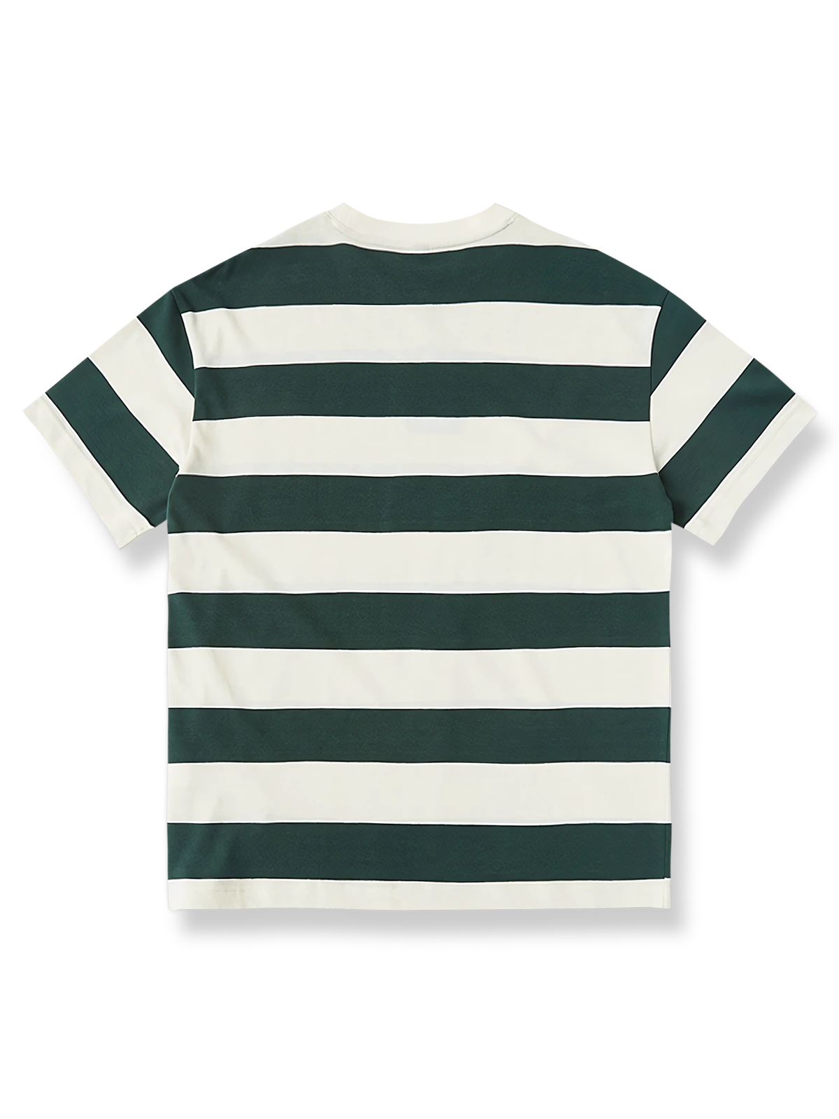 このストライプTシャツのデザインは19世紀のフランス海軍の制服に起源を持ち、海に落ちた水兵がより容易に発見されるように最初に導入されました。グリーンとホワイトのストライプパターンは、海岸の航標を連想させ、カジュアルファッションのクラシックなシンボルとしての地位を確立しています。クラシックな船員襟のデザインは、伝統的な海軍文化への敬意と現代生活スタイルとの融合を表現しています。