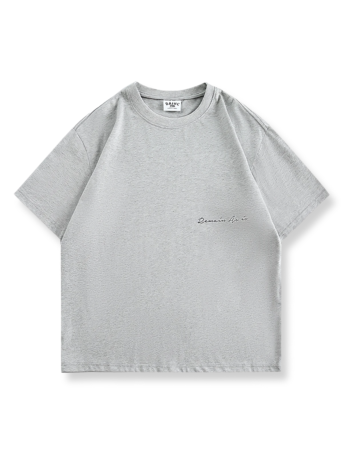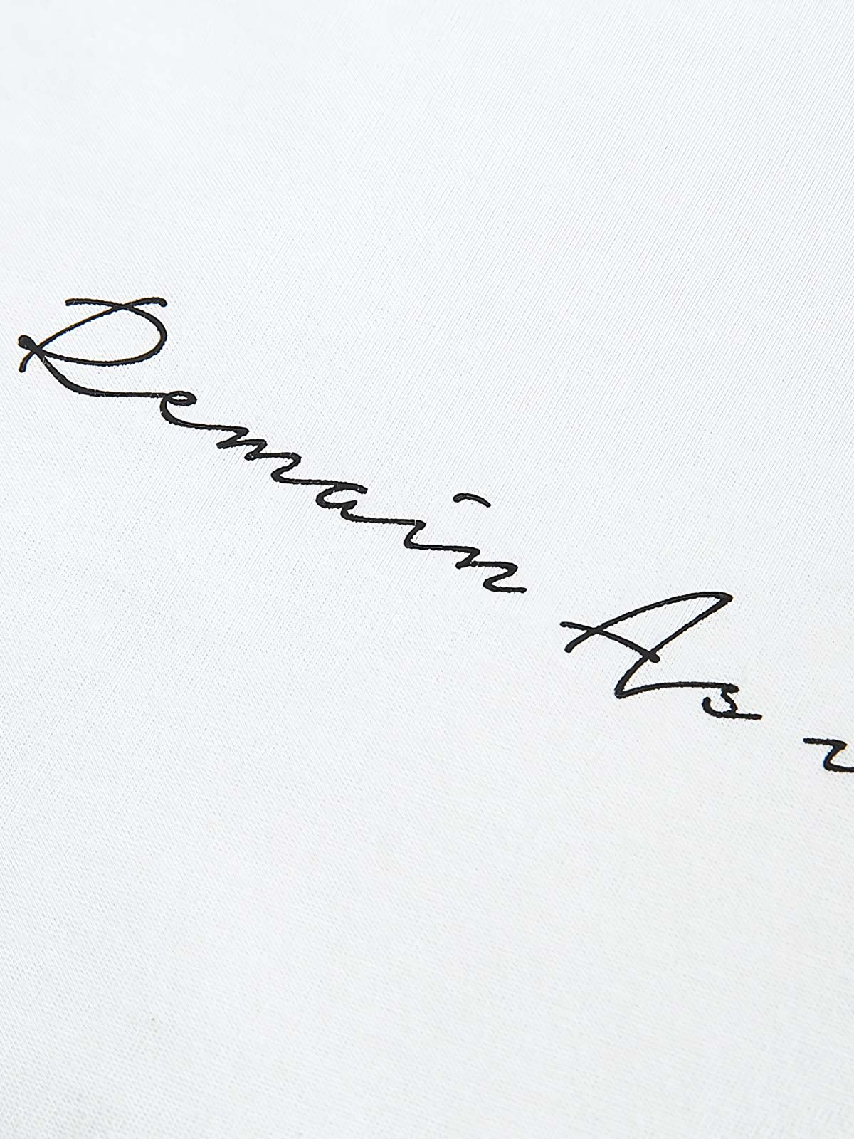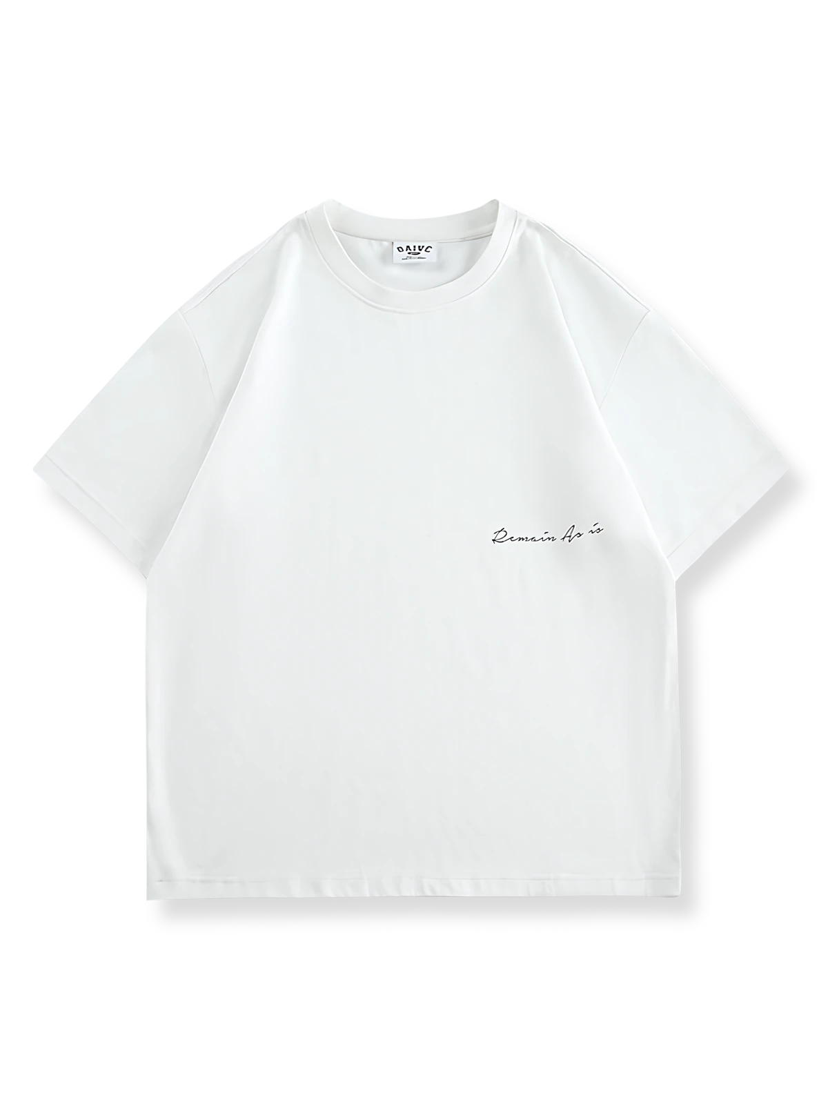 このネイビーブルーのTシャツは、シンプルなアルファベットプリントを用いて、伝統的な文字パターンTシャツに敬意を表しています。20世紀初頭から服飾に取り入れられた文字の使用は、アイデンティティや個性を表現する一つの手段として発展し、現代のカジュアルウェアにおいても重要なデザイン要素となっています。