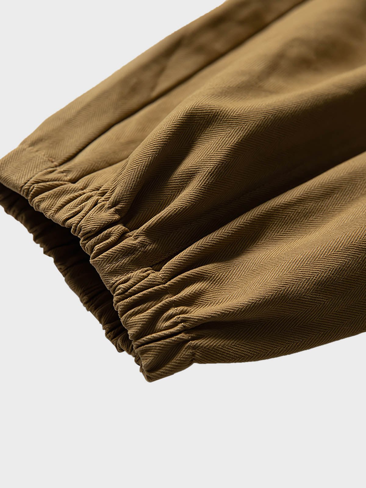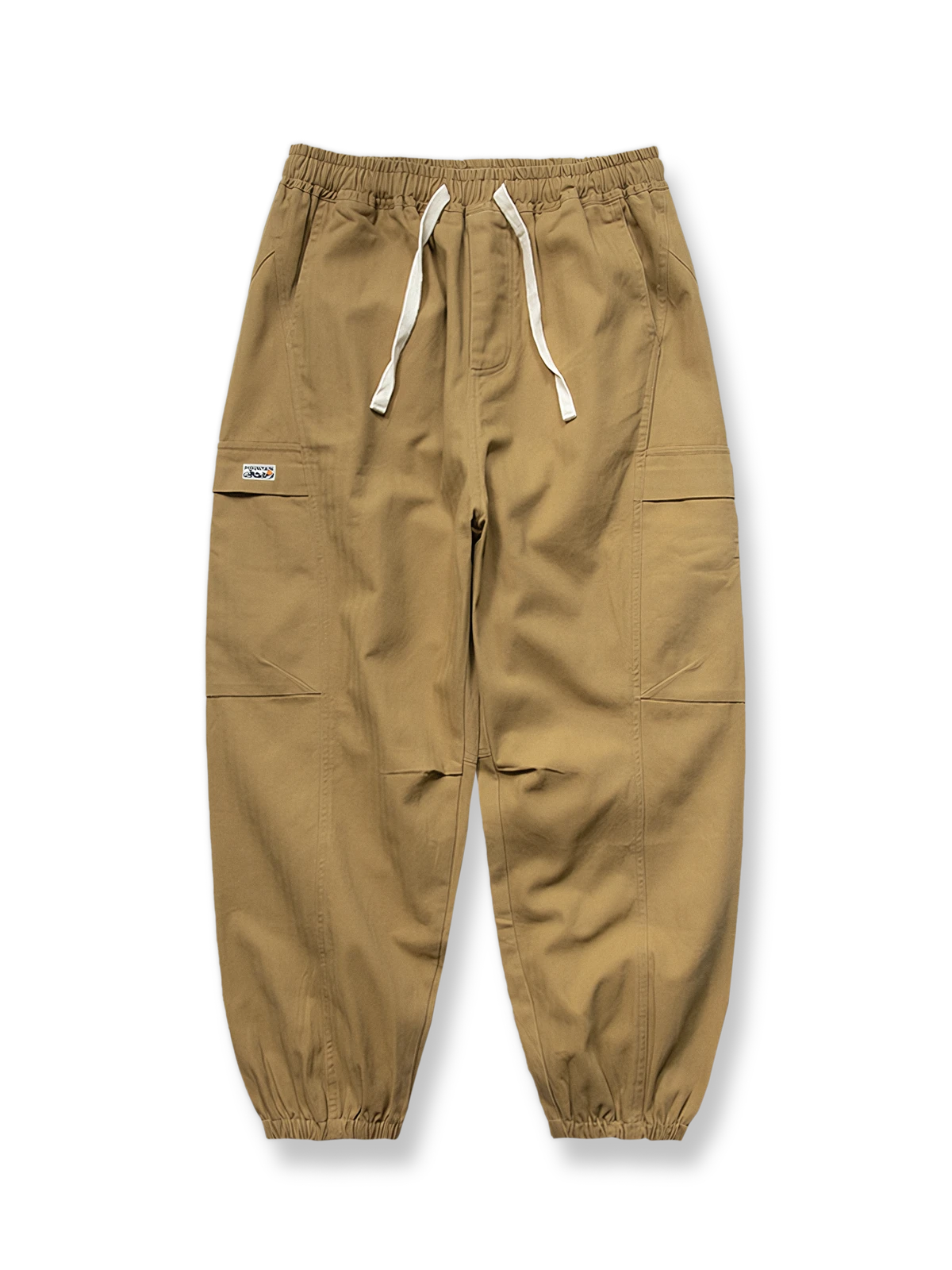 カーゴパンツはもともと軍用に開発された機能的な服装で、その多機能ポケットは実用性の高さから現代のカジュアルファッションにも取り入れられています。このパンツはゴムウエストとゴム裾を採用し、現代のリラックスしたライフスタイルに合わせたデザインになっています。