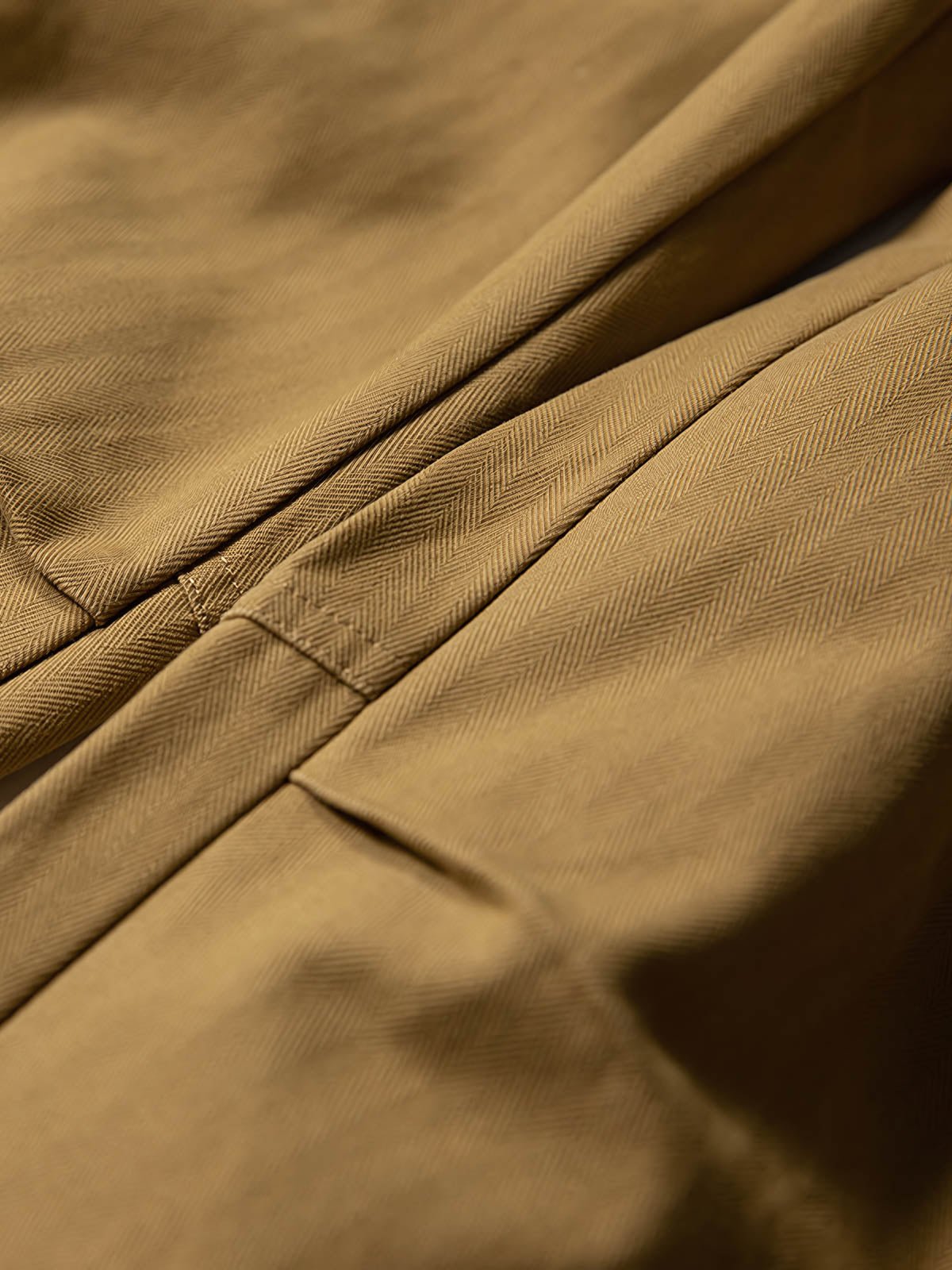 耐摩耗性に優れたしっかりとしたコットン生地を使用しており、日々の使用に耐えうる品質です。豊富なポケットは、小物を携帯する際の実用性を高め、アウトドアシーンでの機能性を追求しています。