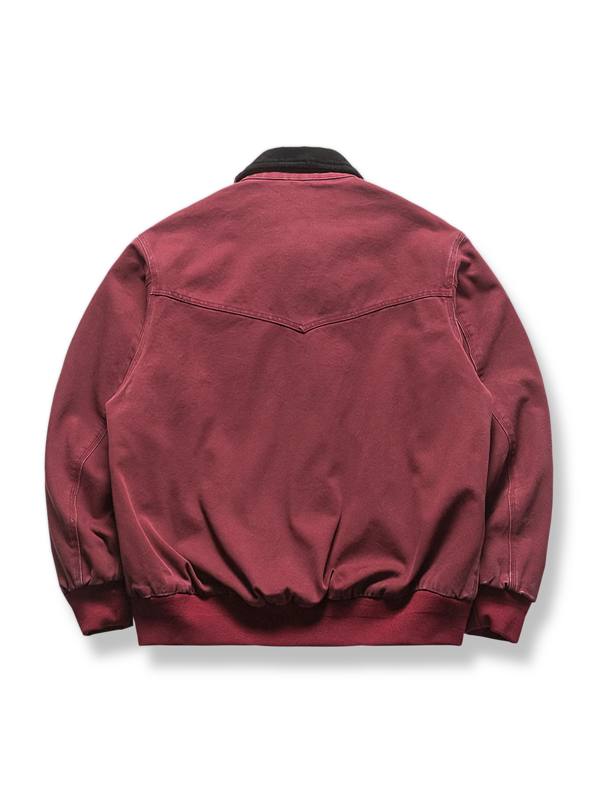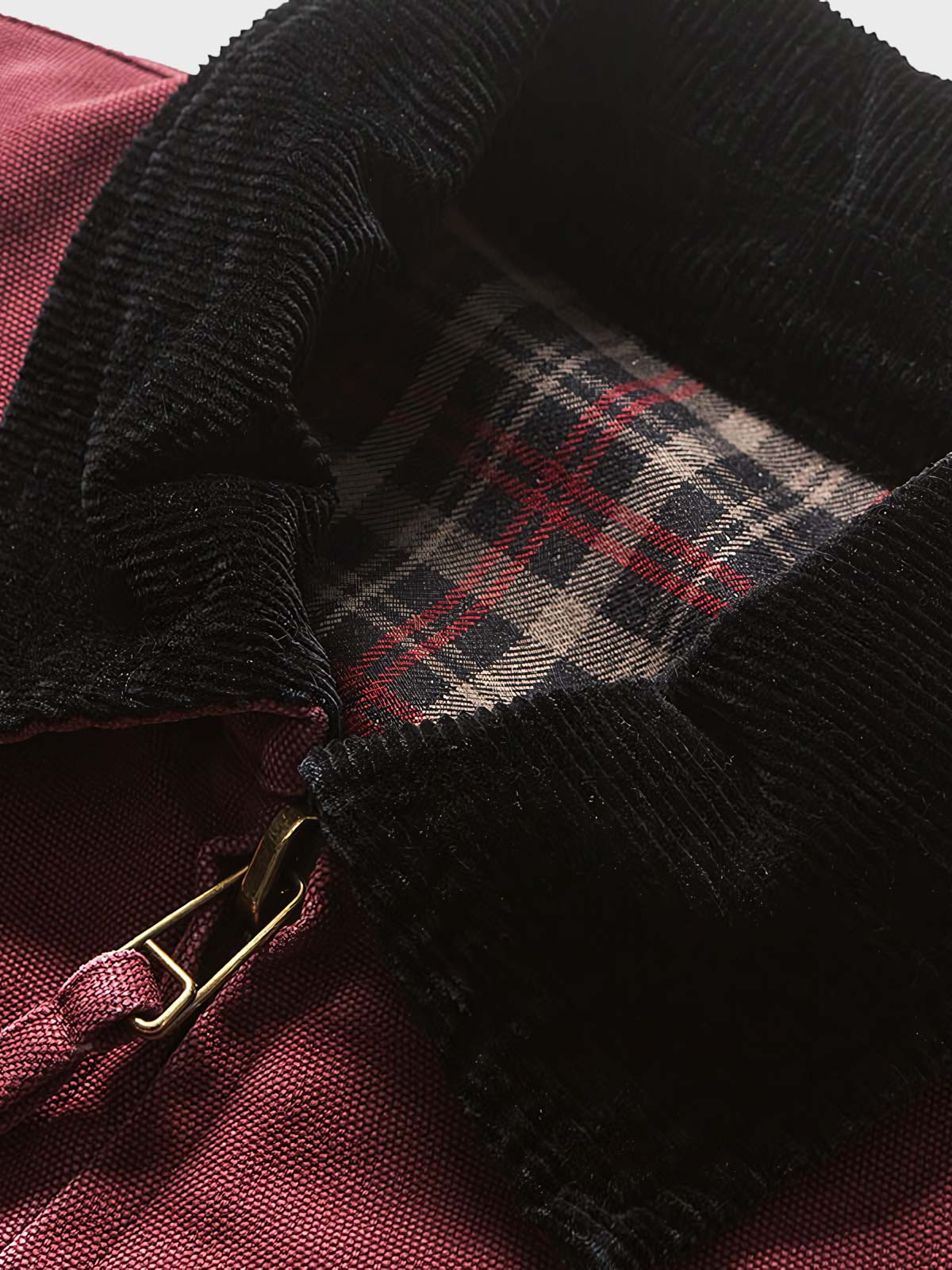 コーデュロイは豊かな歴史を持つ生地であり、常にヴィンテージスタイルの重要な要素でした。労働者の服装から発祥し、耐久性とユニークな質感で愛されています。このジャケットのデザインは、20世紀中盤のクラシックなワークウェアスタイルにヒントを得ており、伝統的な襟付きジャケットと現代的なカラーブロッキングの要素を組み合わせています。