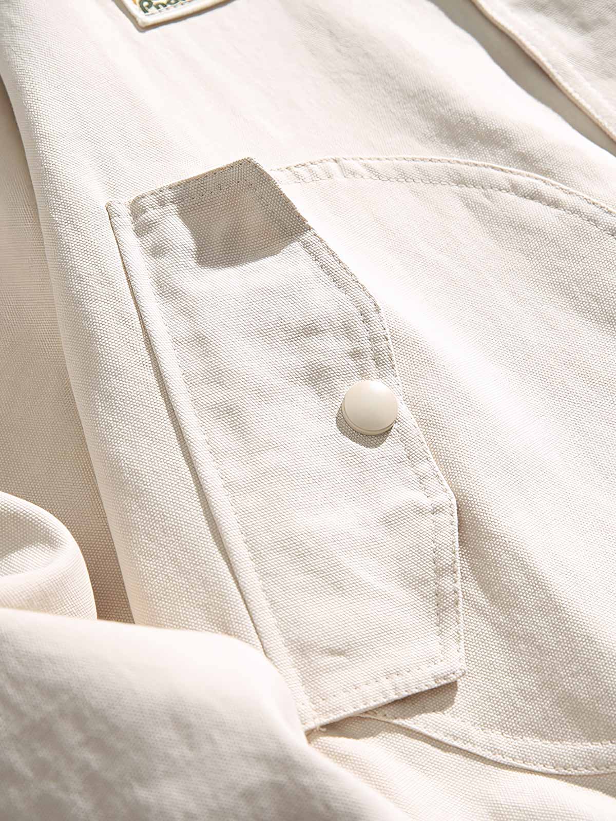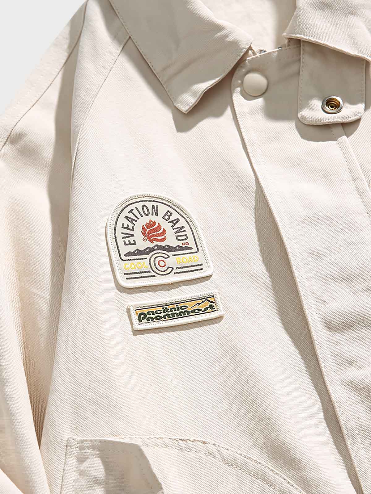 頑丈なコットン素材を使用し、日常使いに耐えうる丈夫な構造。フロントにはプラスのディテールとして、徽章が施された複数のポケットを配置しています。