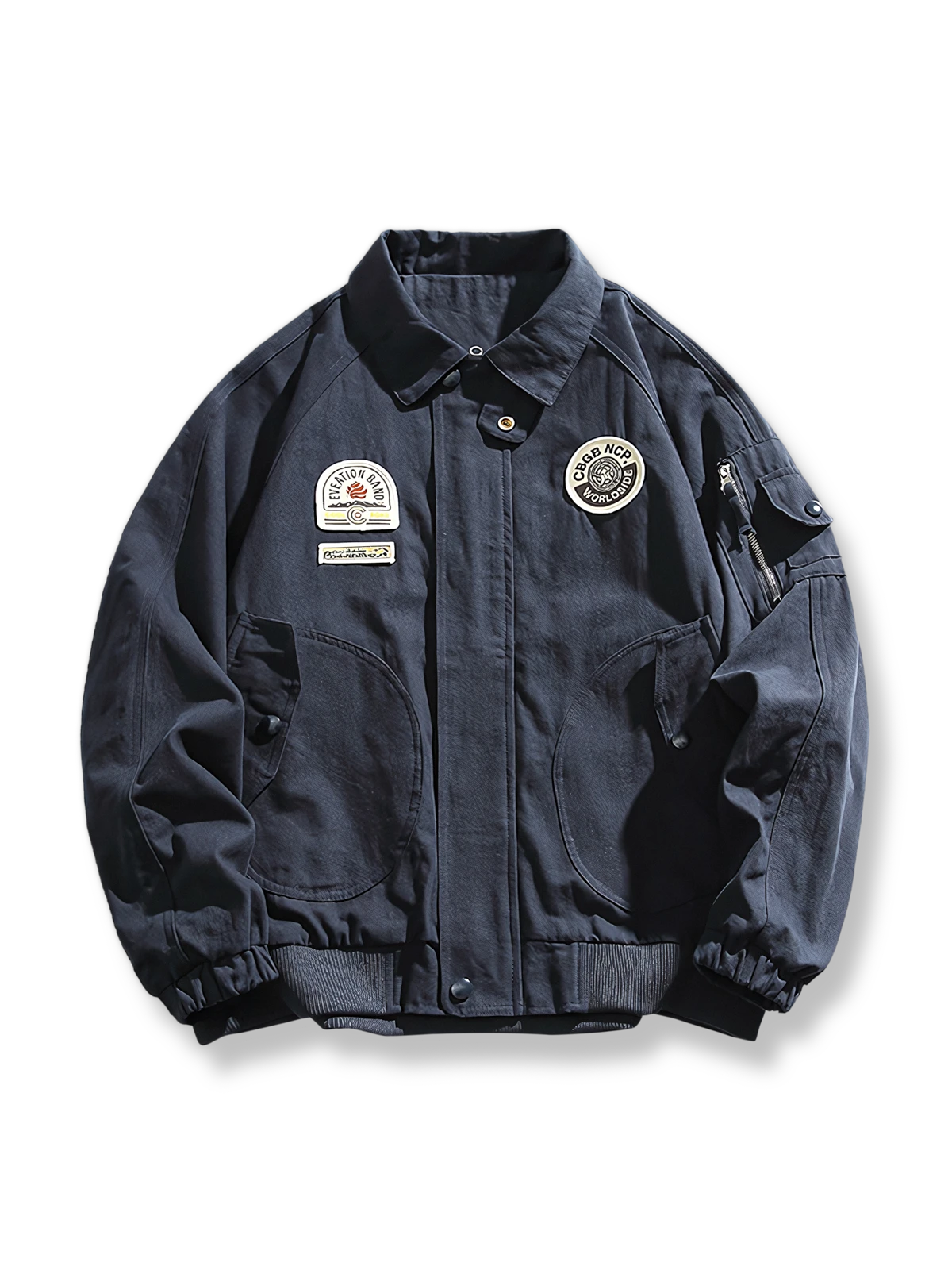 このフライトジャケットは、20世紀中頃の軍用ジャケットに着想を得たデザインです。当時のパイロットたちが身につけていた機能性とスタイルを継承し、現代のファッションにアレンジを加えたアイテムです。徽章はその時代の航空隊の栄誉と団結を象徴しています。