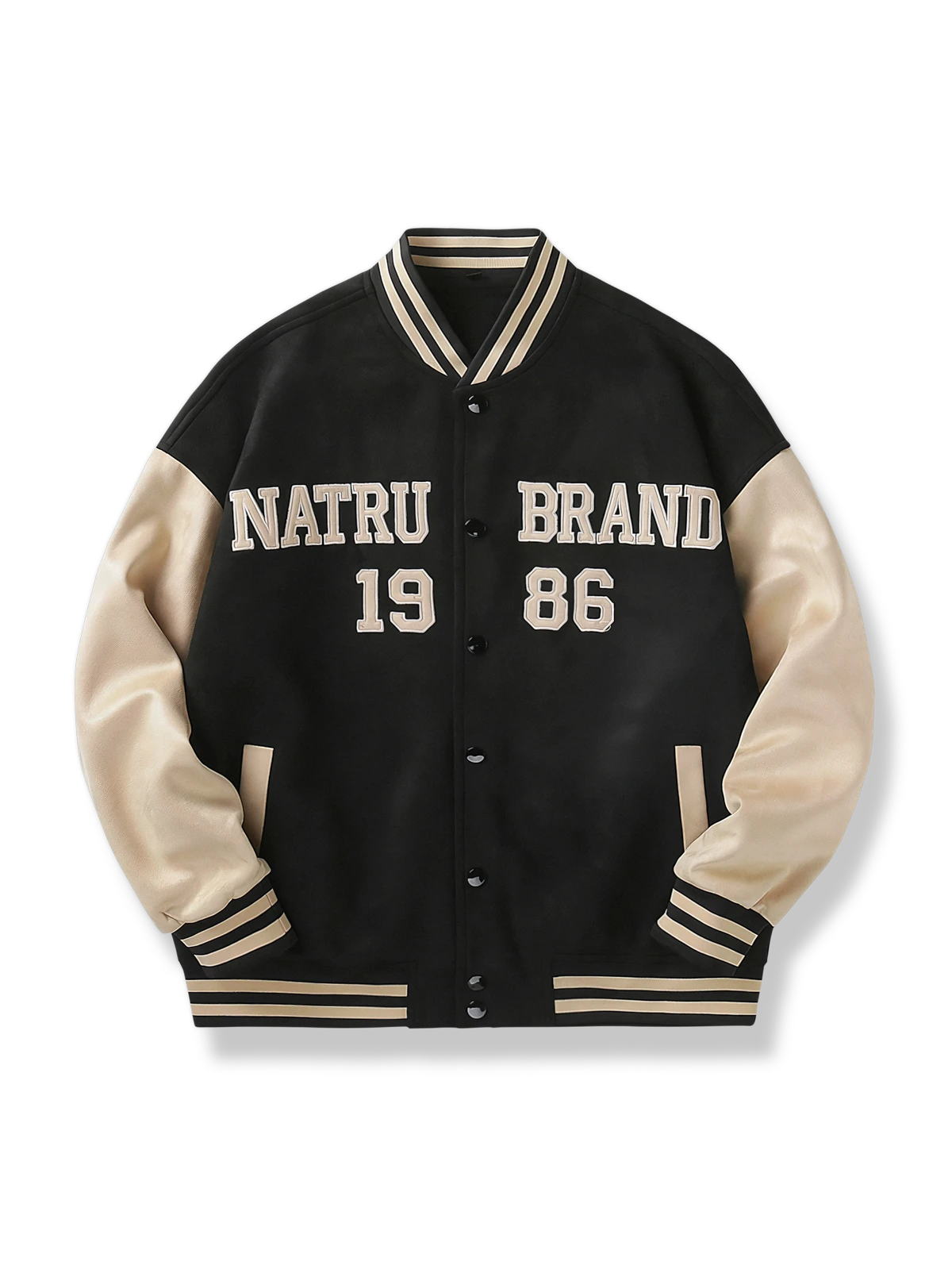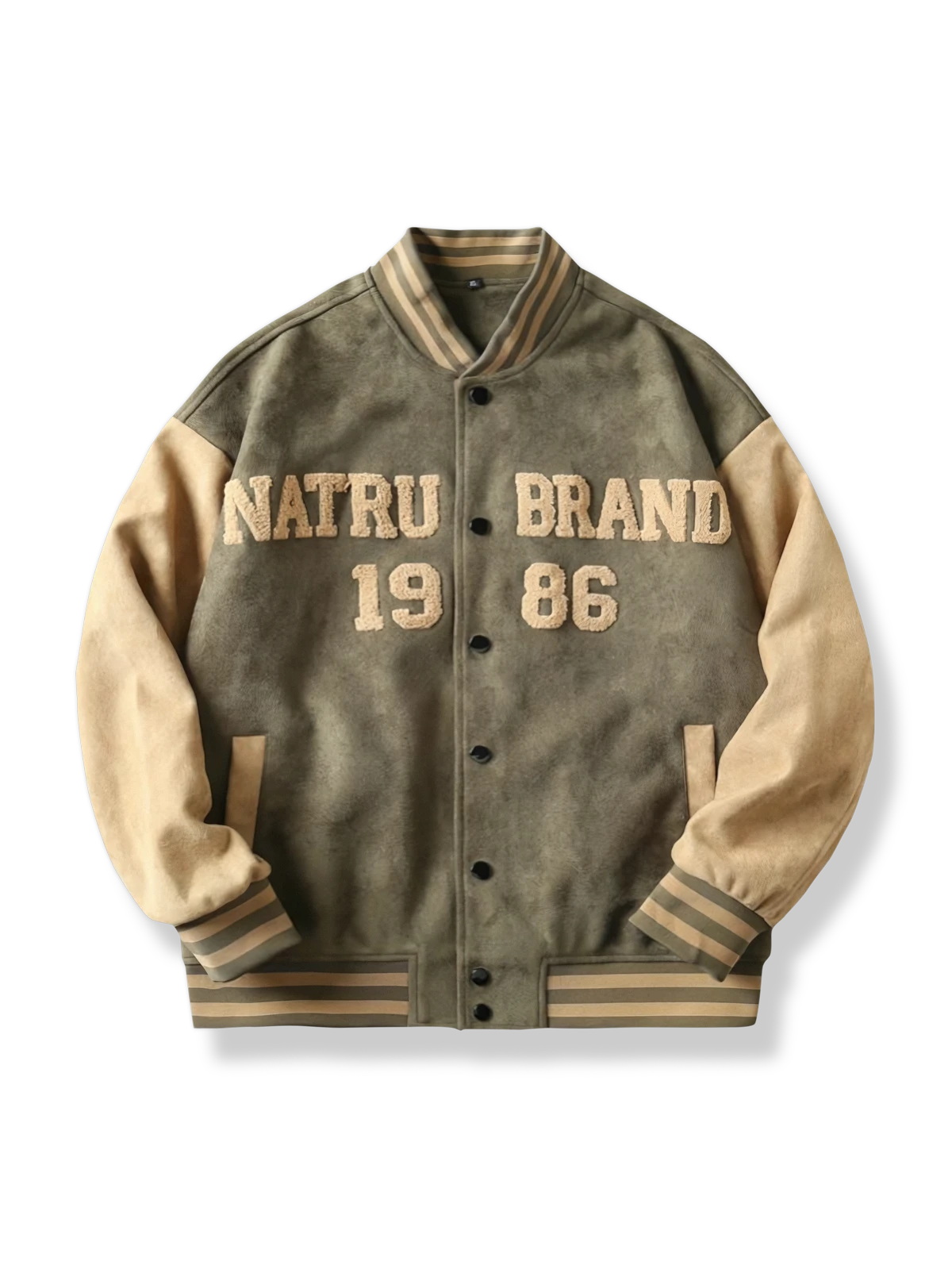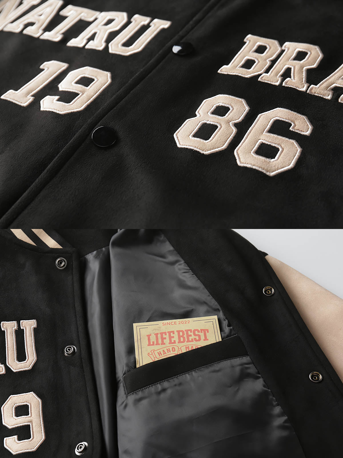 このディアスキンベロアの野球ジャケットは、リラックスフィットのデザインを採用しており、クラシックな野球ジャケットの快適さを保ちつつ、現代的なファッション要素を加えています。ディアスキンベロア素材の選択により、着用感と全体の品質が向上しました。