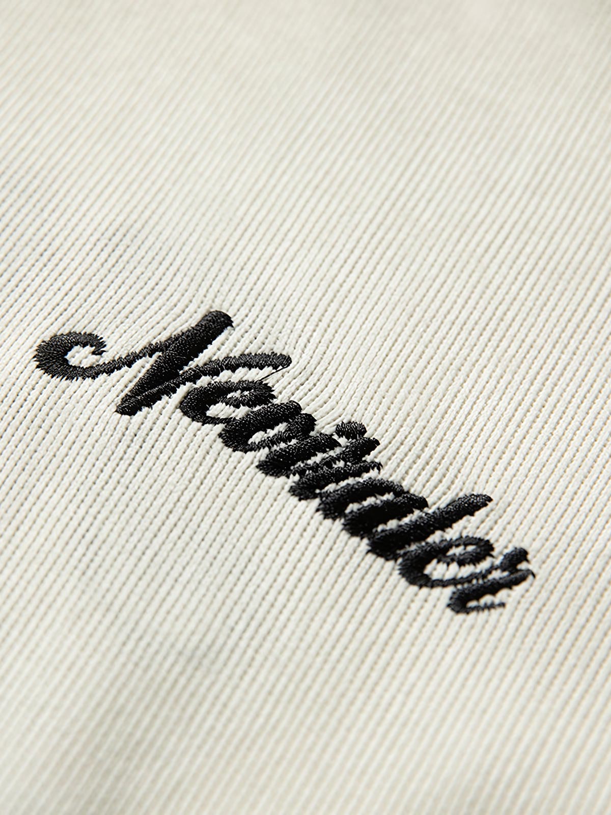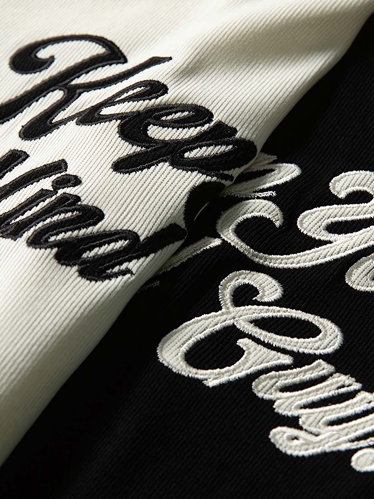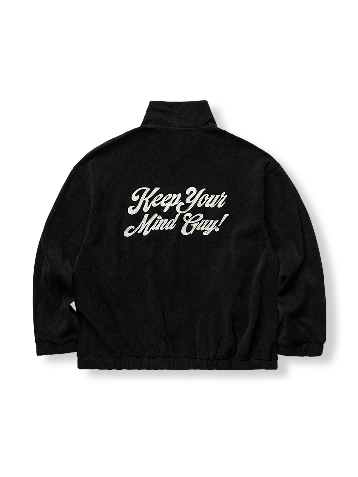 このジャケットは、クラシックな立领デザインにモダンな刺繍の文字が映える、洗練されたアイテムです。背中の「Keep Your Mind Easy!」のメッセージは個性を表現し、リラックスしたライフスタイルを提案しています。