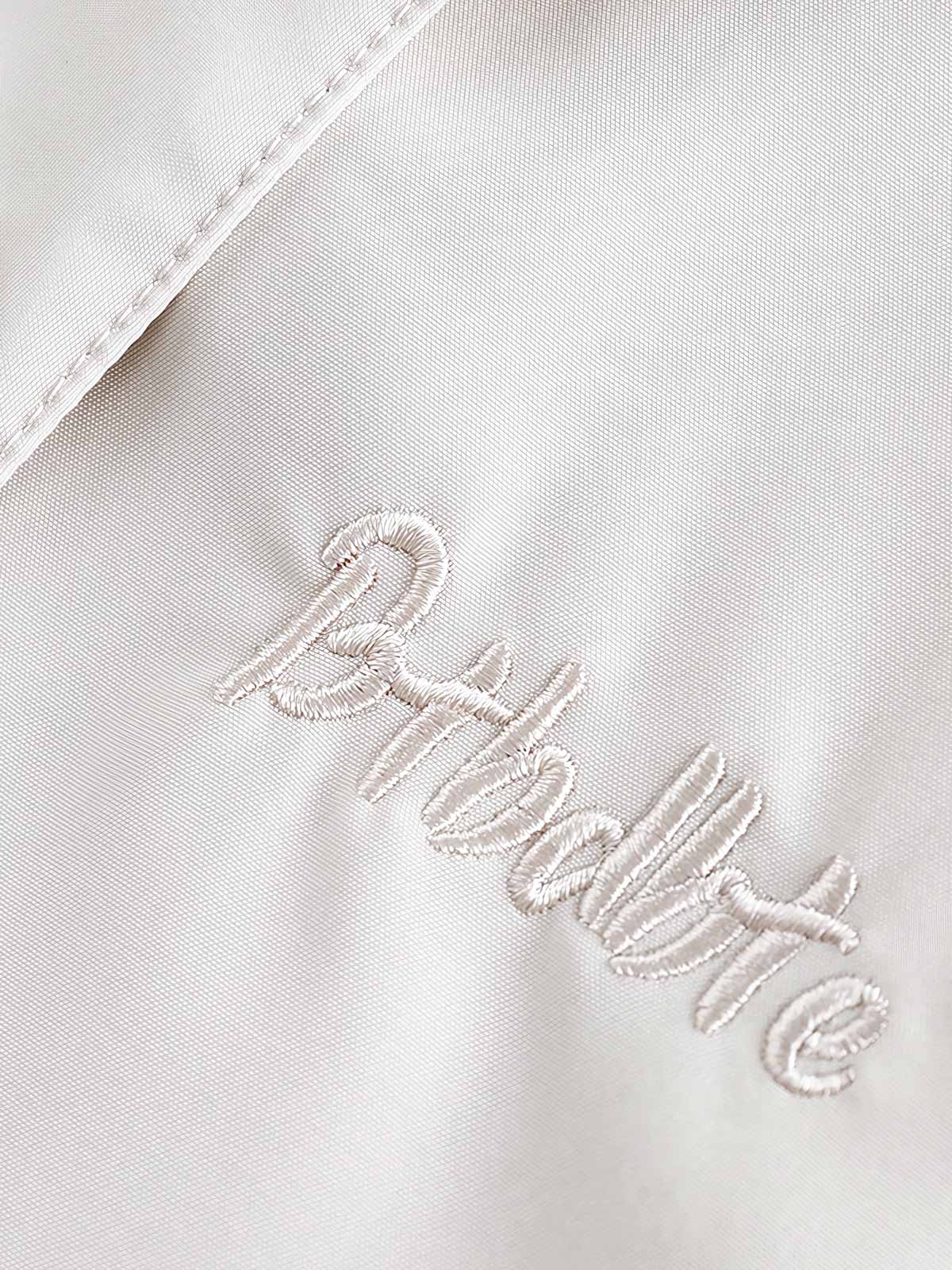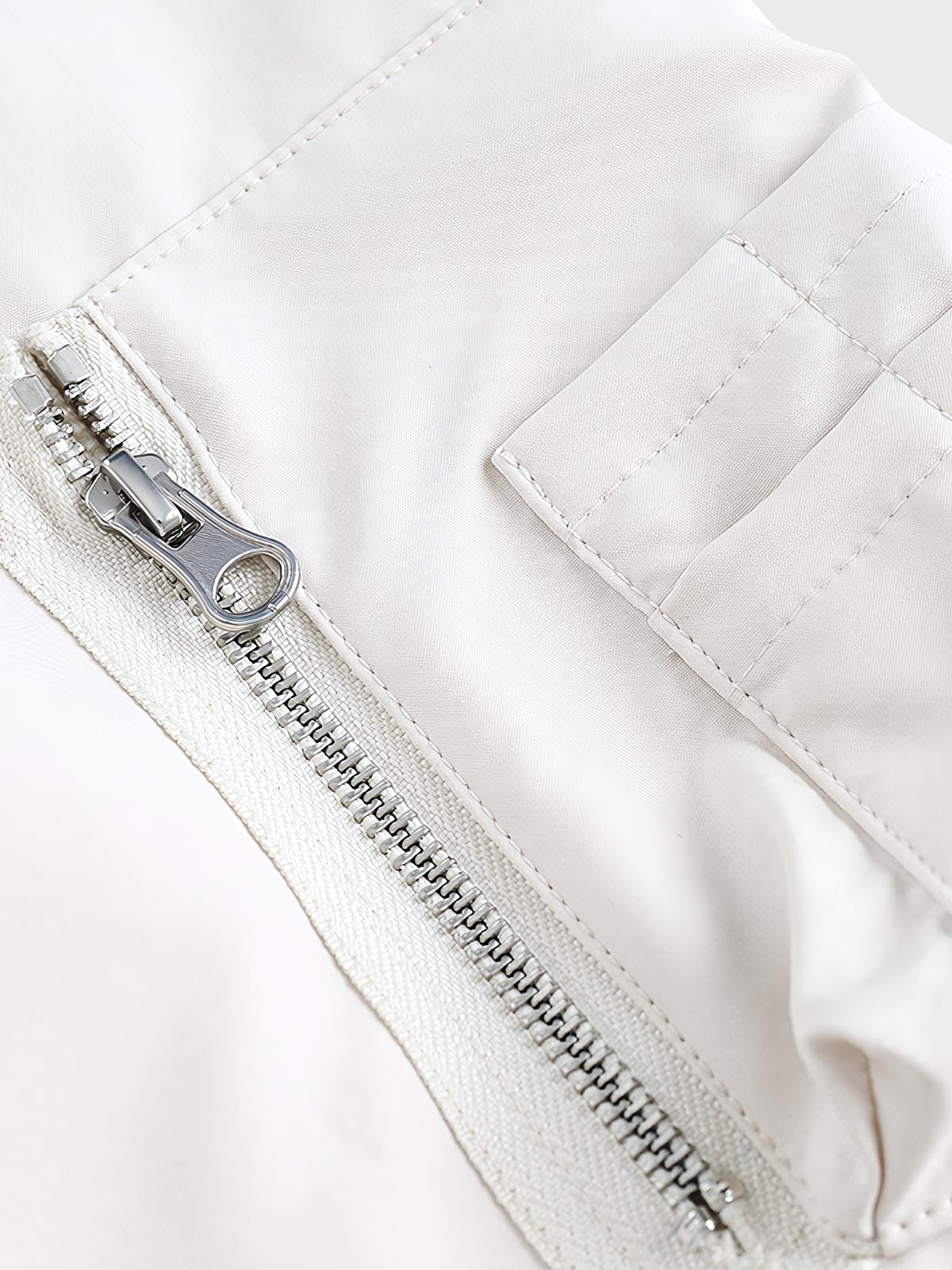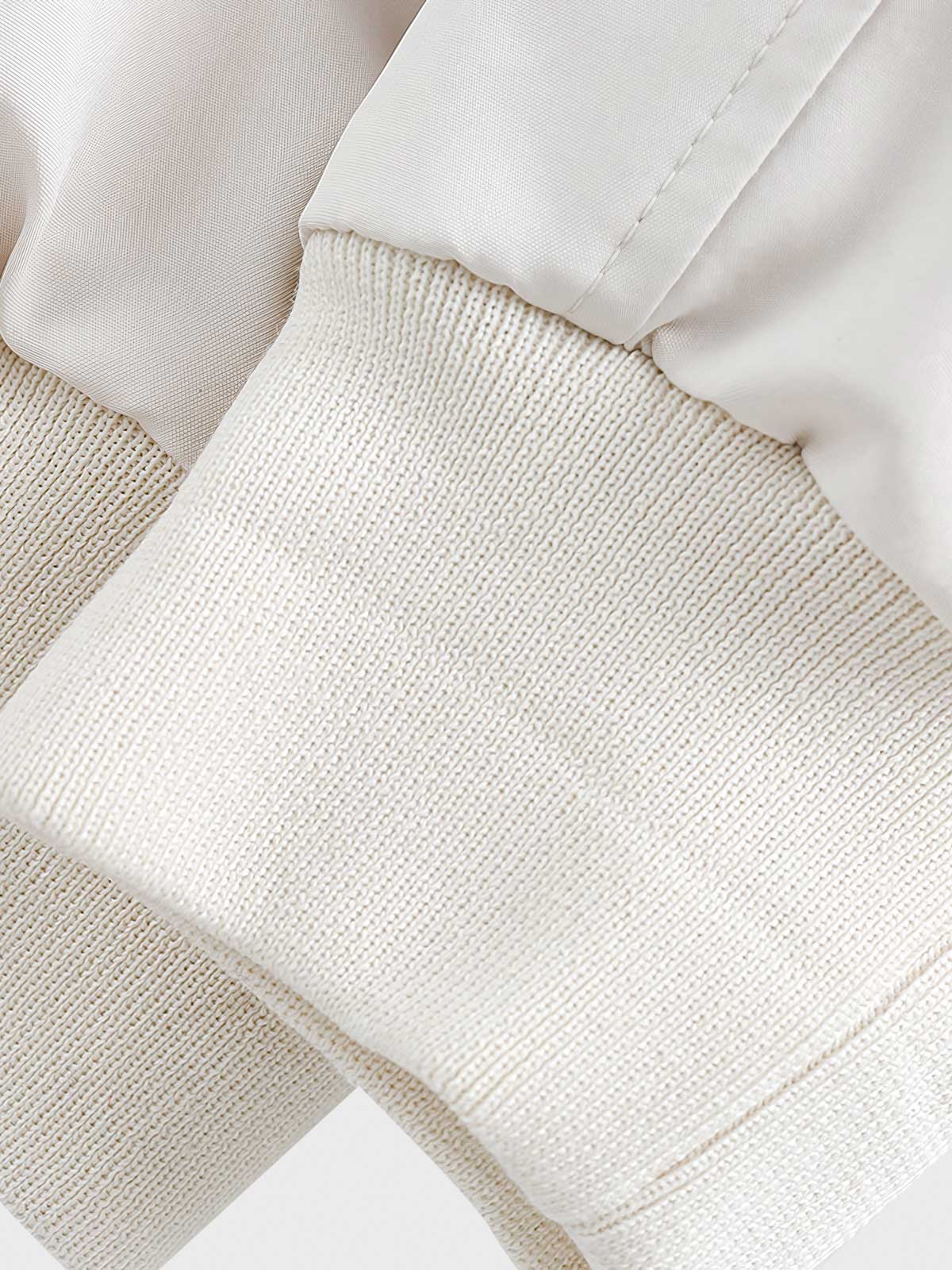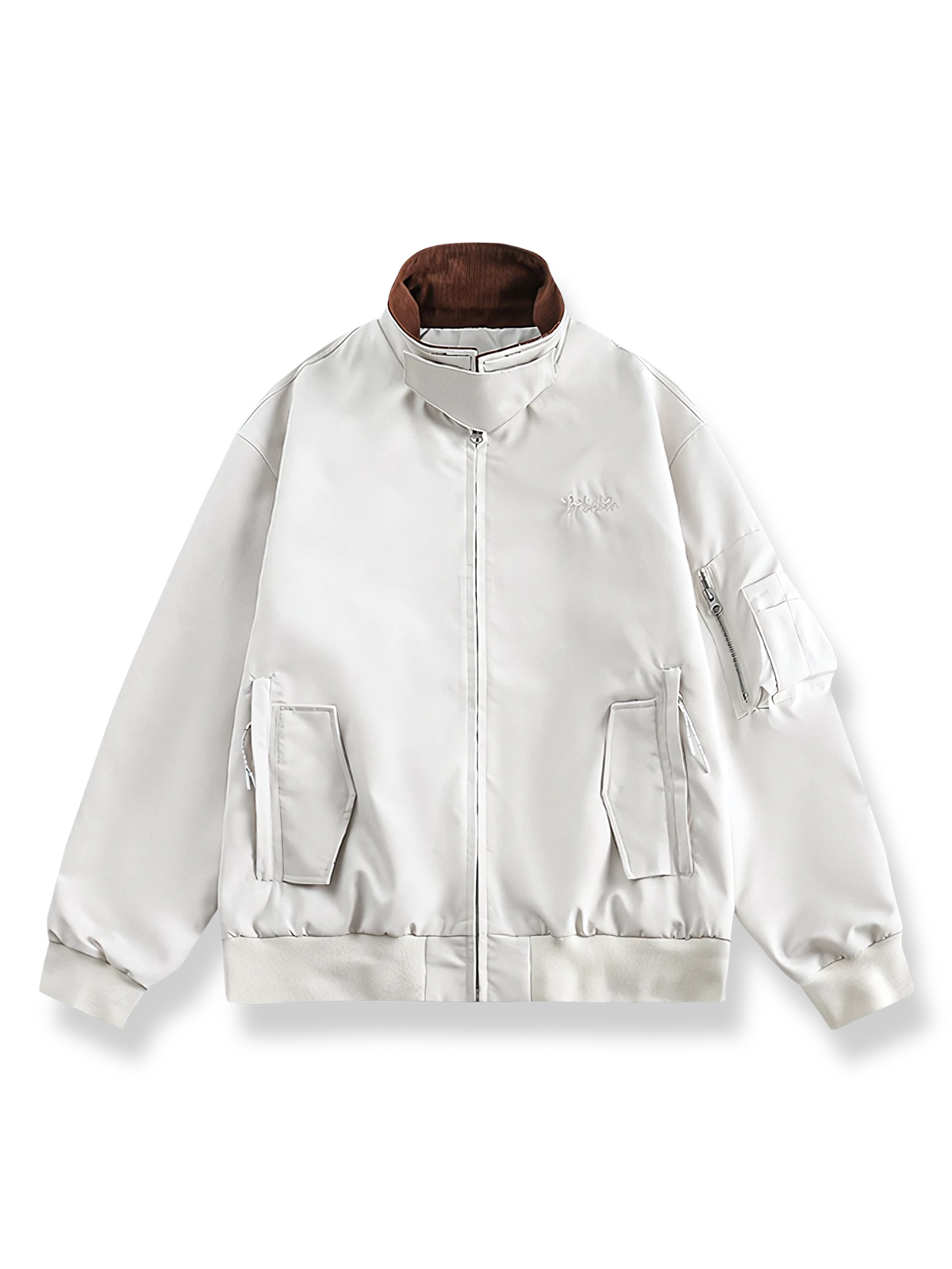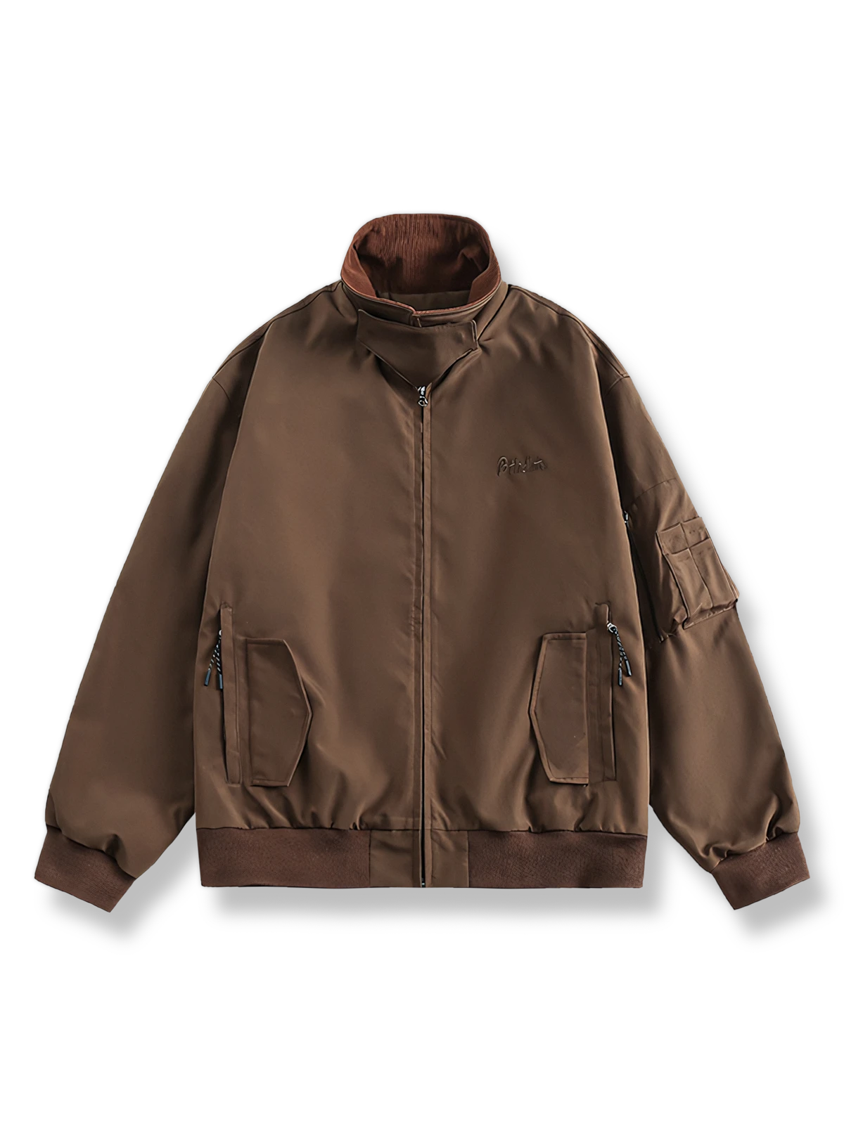 ジャケットのデザインインスピレーションは、1940年代のアメリカ空軍のA-2フライトジャケットから来ており、立ち襟、フロントのジッパー、飛行中の動きに対応するための肩の追加素材を採用しています。袖口のウールリブエッジ、ジッパー横のレザートリム、アームポケットのデザインなどは、実用性を兼ね備えながら、軍服の厳格さも加えています。