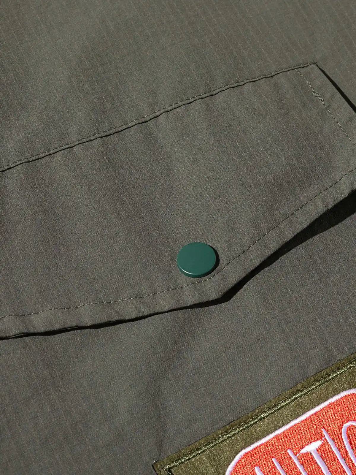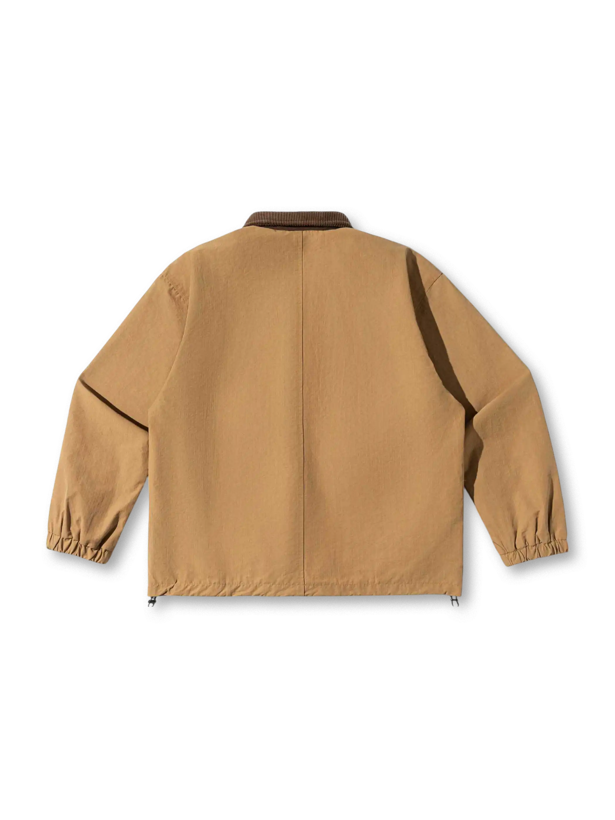 コーデュロイ襟と大きめポケットを配したデザインで、アメリカンヴィンテージなハンティングジャケットの雰囲気を再現。胸元や裾に取り付けられたワッペンが遊び心をプラスし、100%ポリエステル生地が軽量かつシワになりにくいのも特徴。袖口と裾にはゴムやドローコードを用いており、風の侵入を防ぎつつシルエットの調整も可能。カジュアルからアウトドアまで幅広いシーンで活躍する一着。