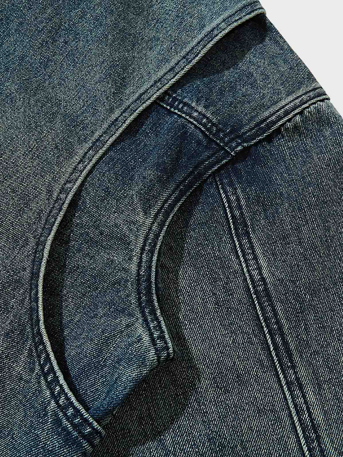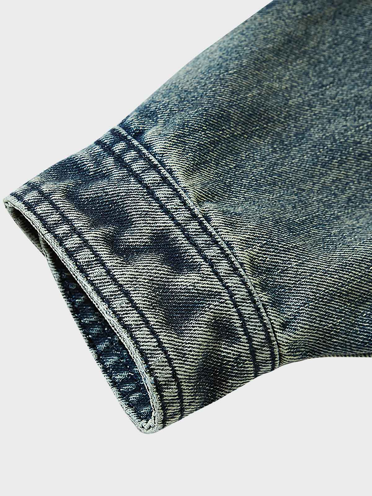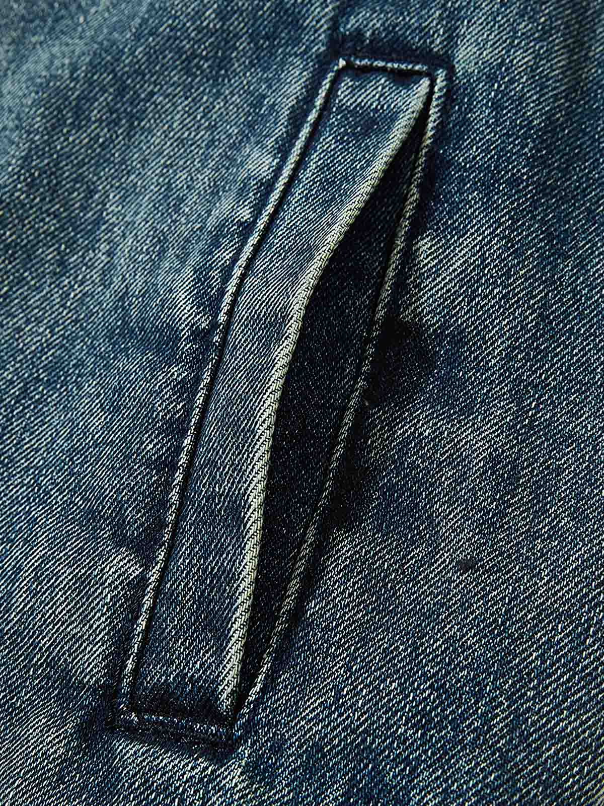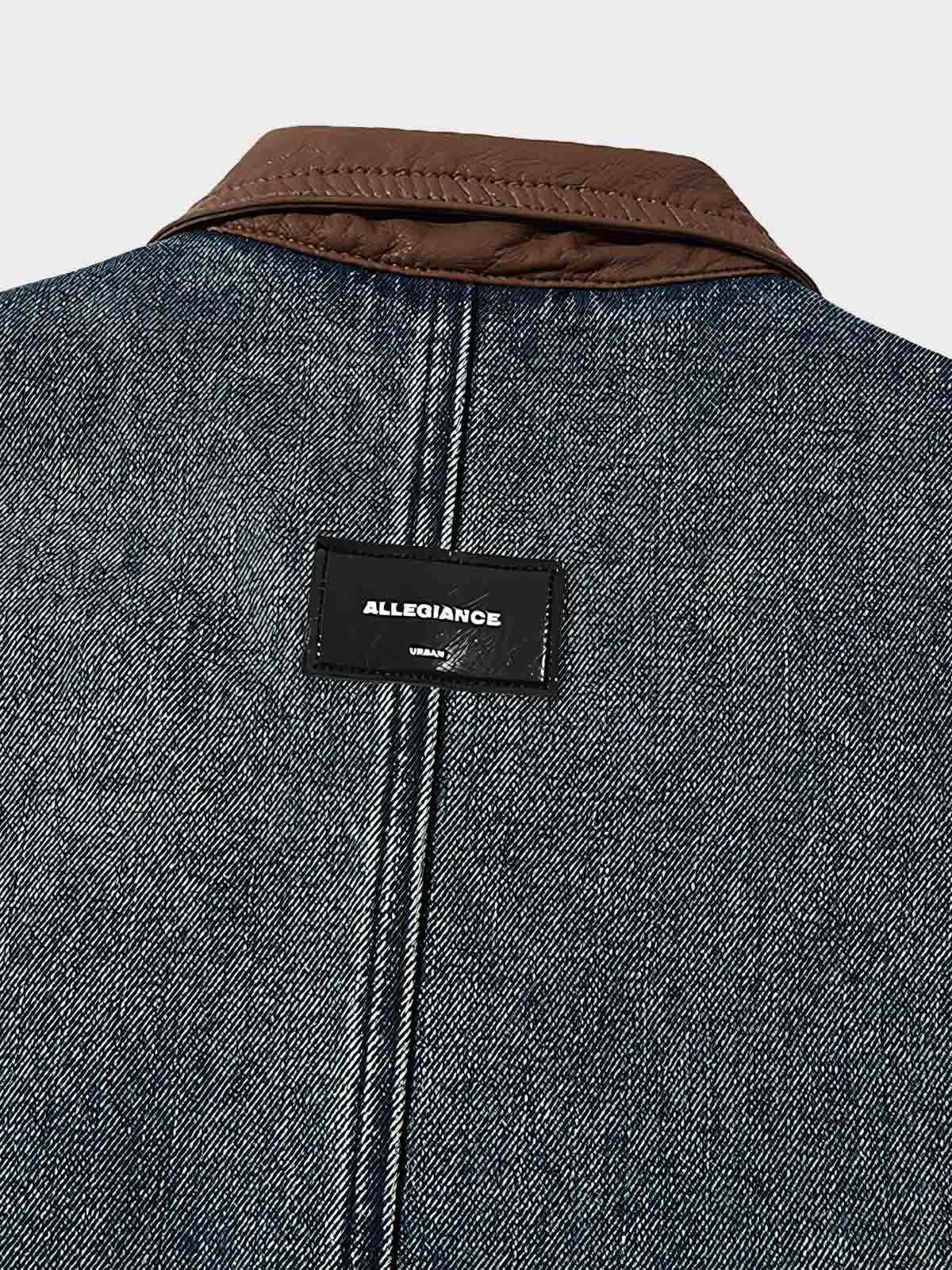 アメリカ西部の労働者用として1800年代に誕生し、開拓時代の精神と機能美を象徴するデニムジャケットは、耐久性と実用性を重視したデザインです。このジャケットは、その伝統を受け継ぎながらも、レザーカラーを取り入れることでコントラストを効かせ、ヴィンテージとモダンが調和したスタイルを提案しています。