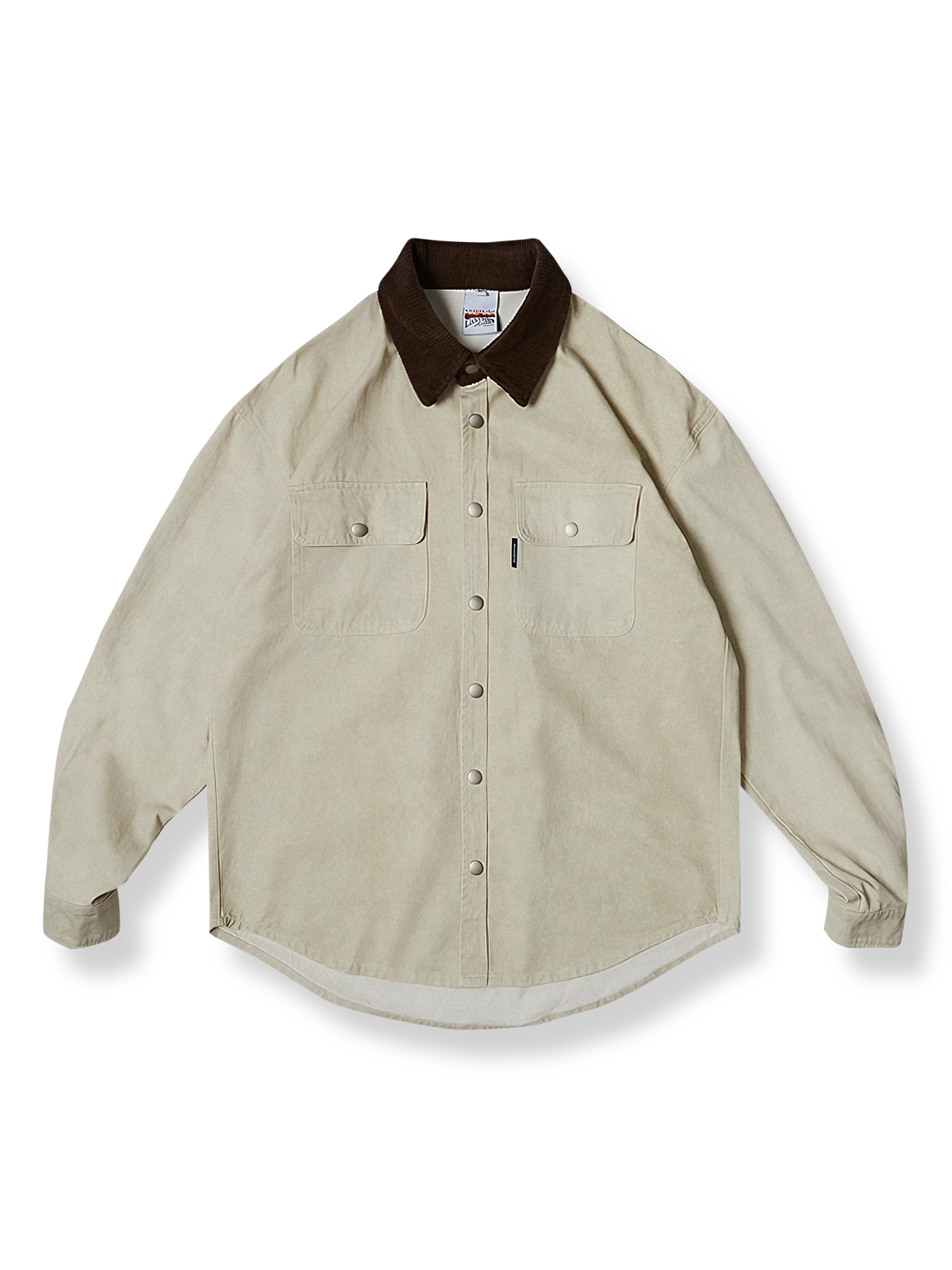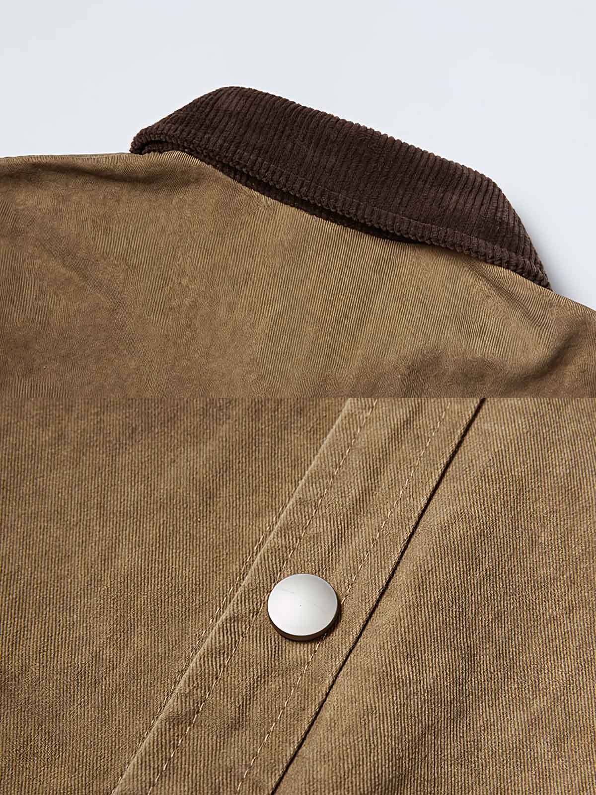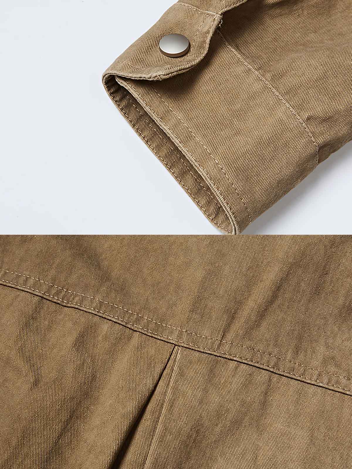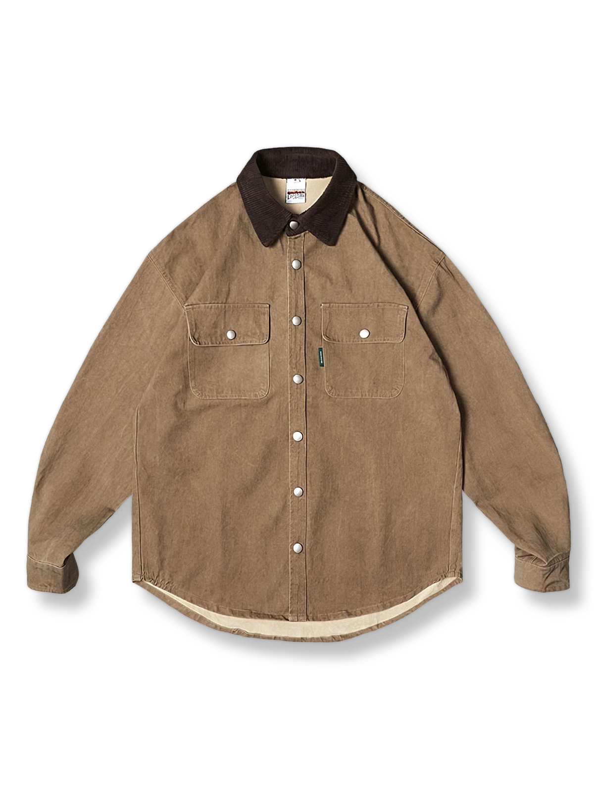 このジャケットは20世紀のワークウェアデザインからインスピレーションを得ており、クラシックなメンズファッションに欠かせない要素です。コーデュロイ素材の襟は、レトロな雰囲気を加えるとともに、その時代の耐久性と実用性への追求を反映しています。また、ウォッシュド生地の使用は、カジュアルなスタイルを提供するだけでなく、デニムの芸術と文化への敬意も表しています。