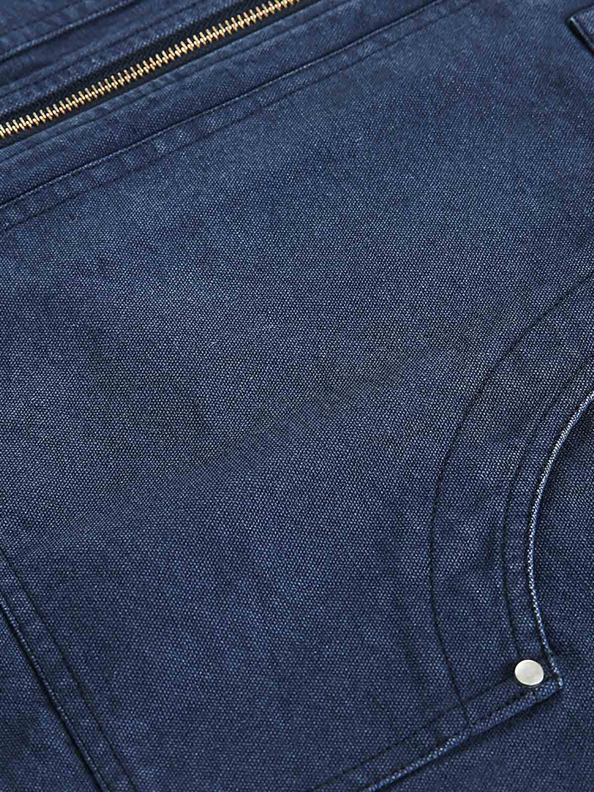 クラシックなデザイン、コーデュロイ襟と多ポケットが特徴のデニムジャケット。