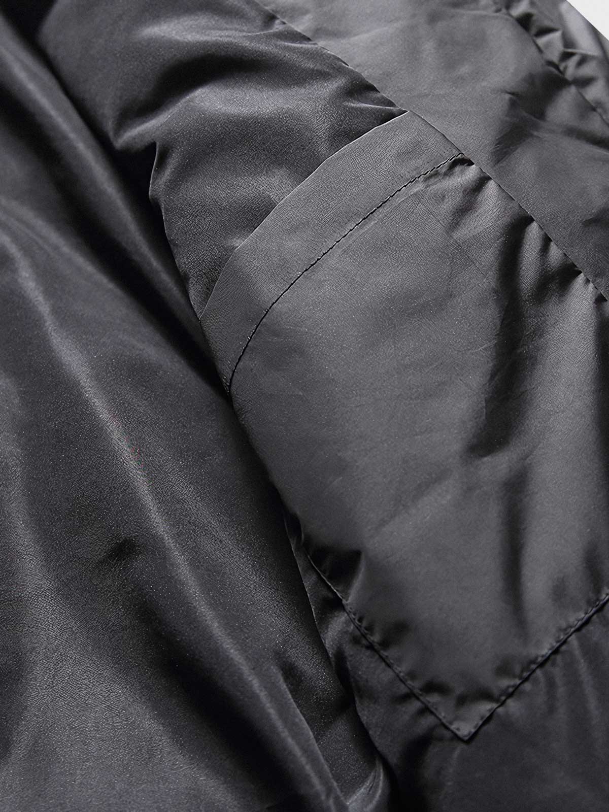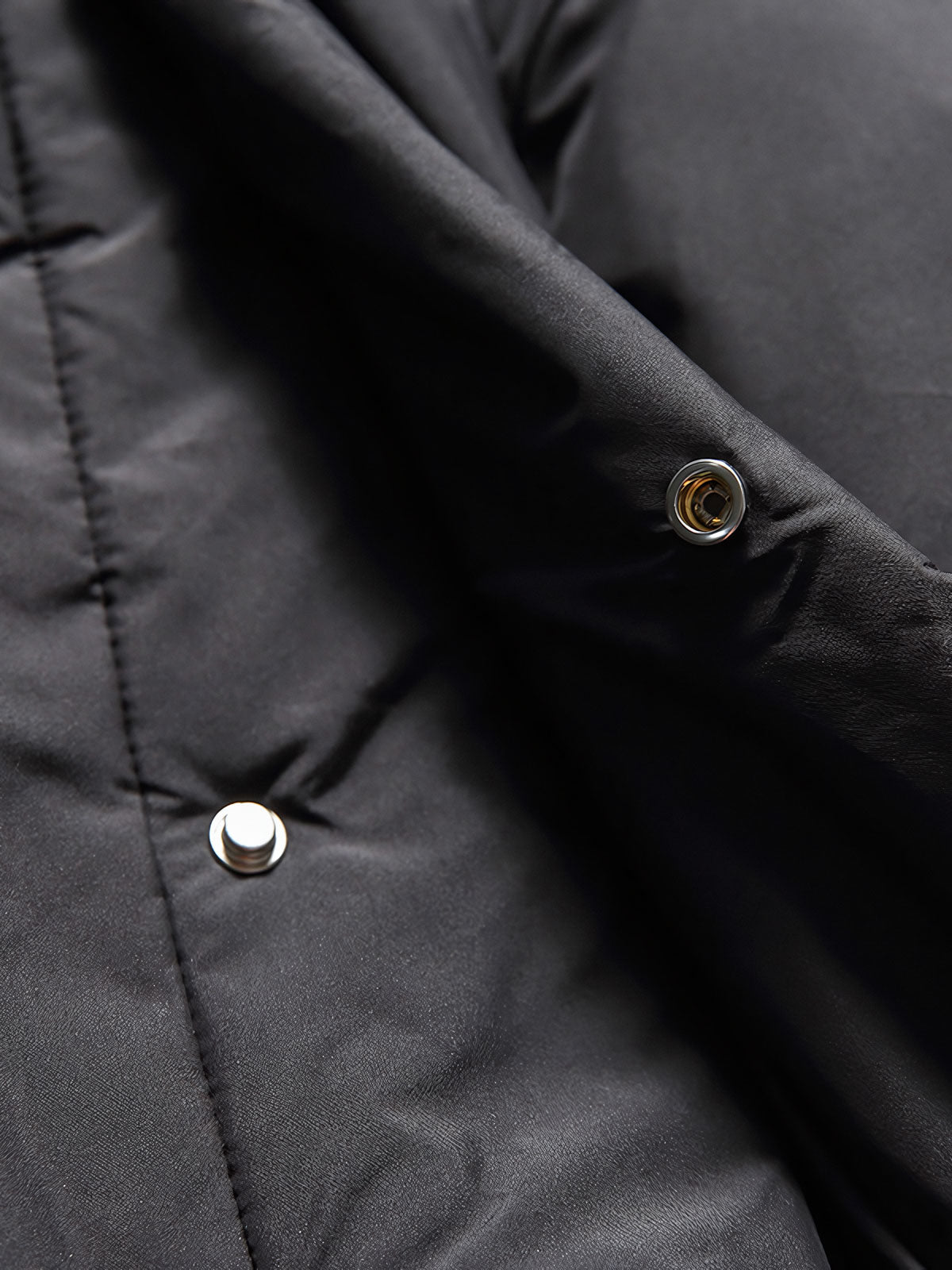 主素材は耐久性と保温性に優れたポリエステルです。軽量ながら暖かい詰め物が追加され、膨張感を与えずに温かさを提供します。