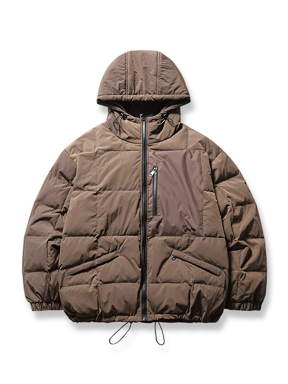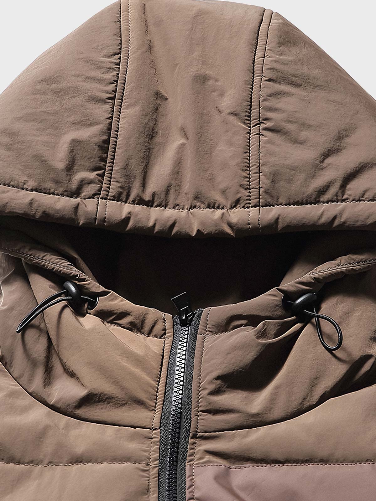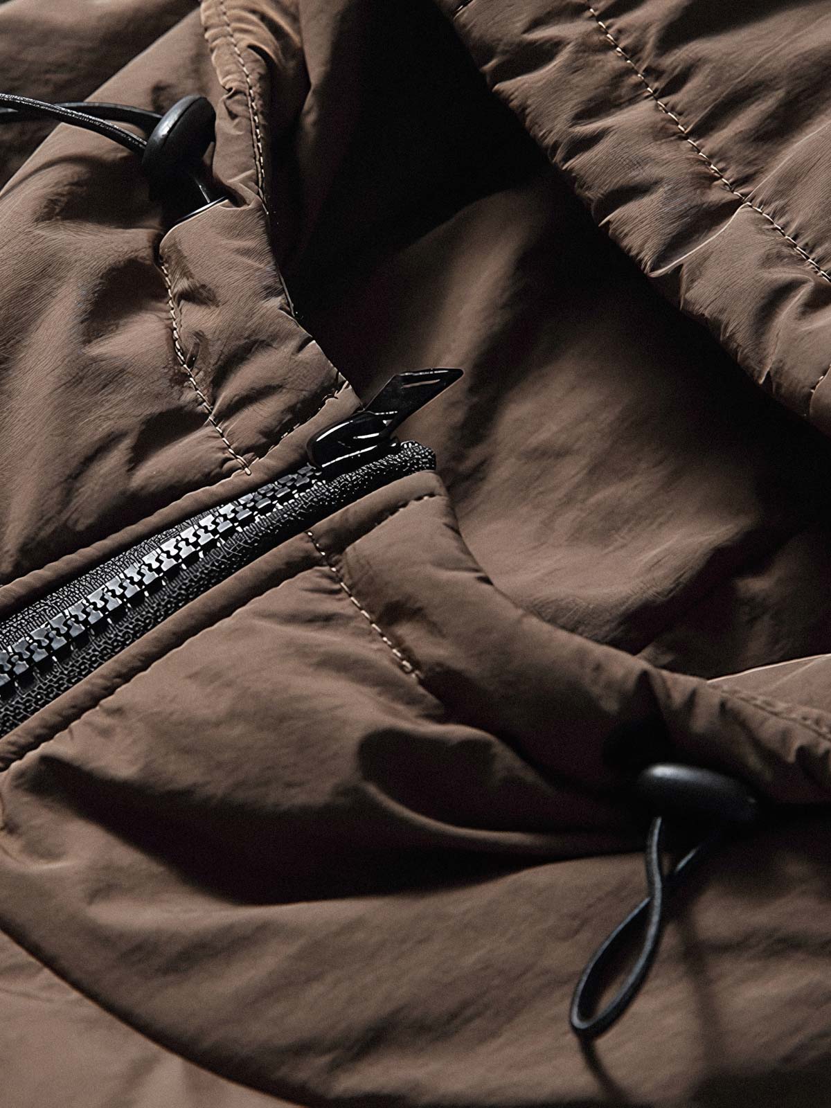 フィットカットを採用し、保温性は保ちつつもかさばらないデザインで、秋冬の着用に適しています。ドローストリング付きのフードは、天候に応じて調整でき、保温性を高めます。