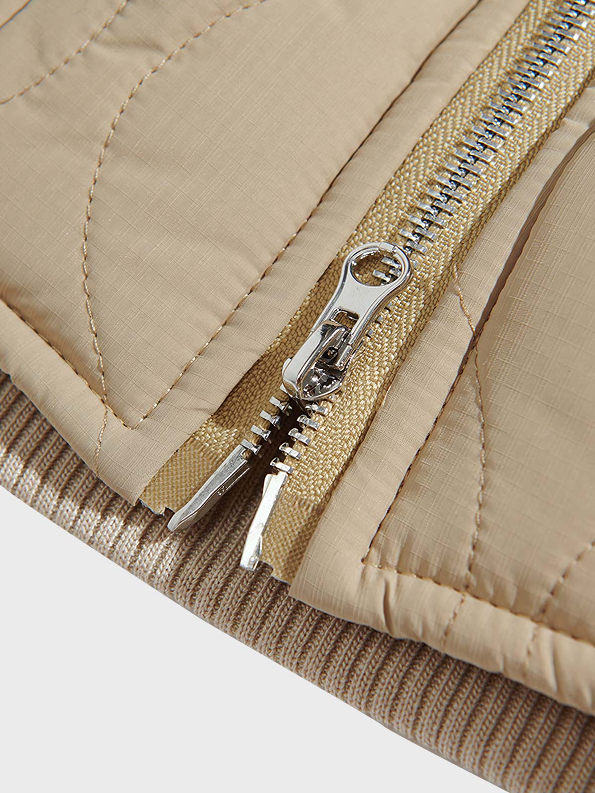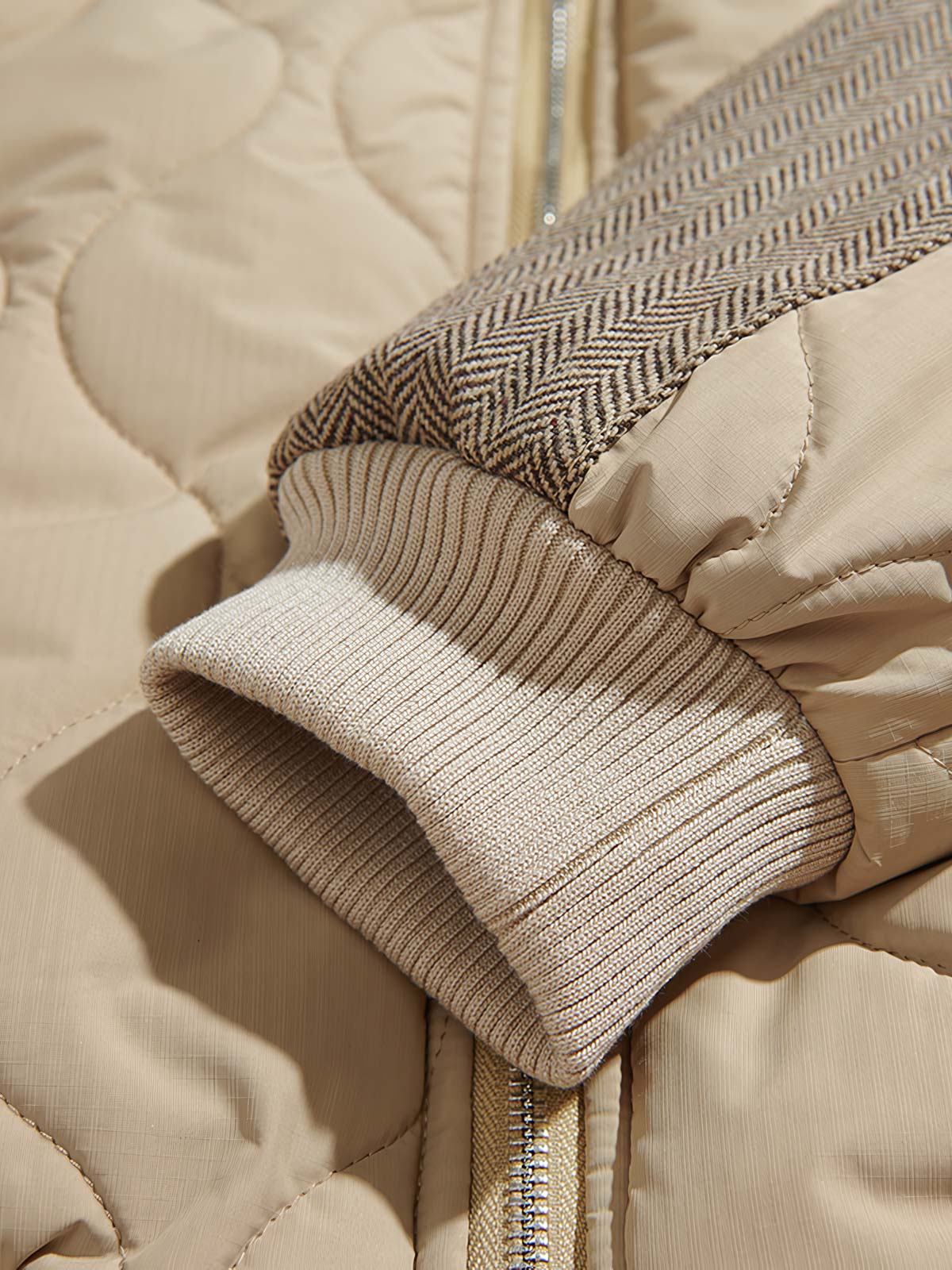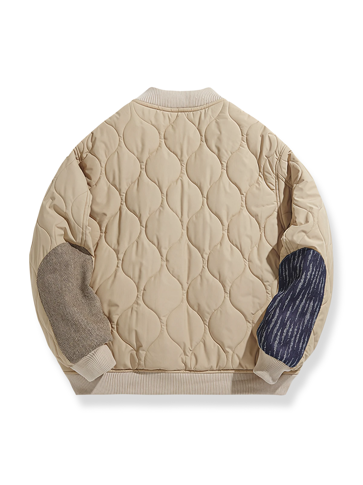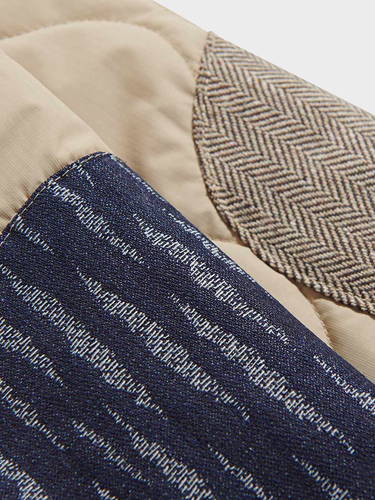 この中綿ジャケットは、独自のパッチ キルティングを採用しています。拼接デザインにより肘にパッチ要素が加えられ、レトロとモダンなファッション感覚が融合しています。