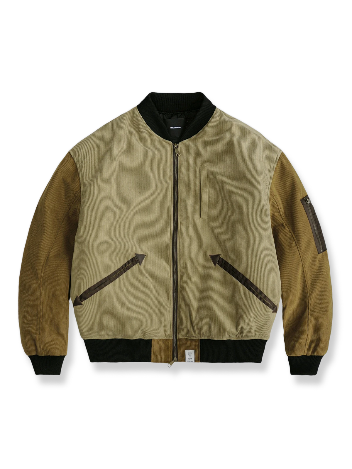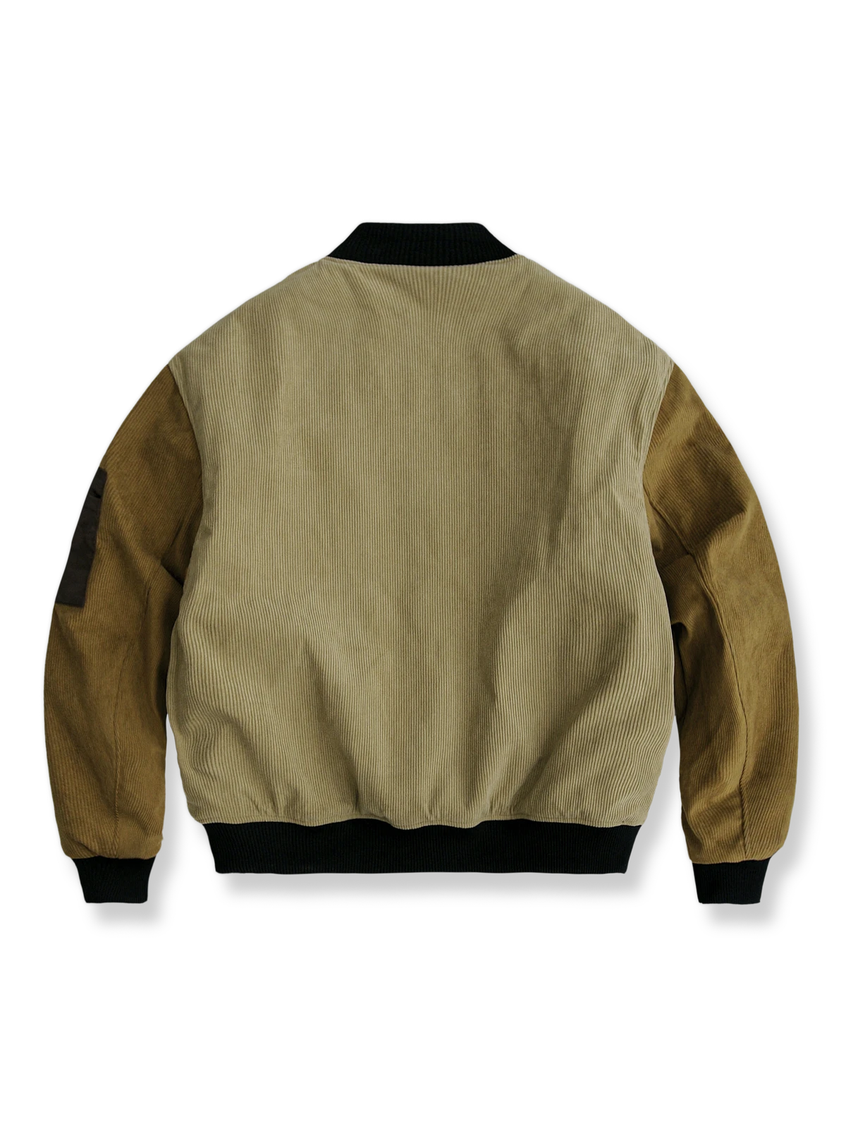 このベースボールフライトジャケットが使用されているコーデュロイ素材とレトロなカラースキームは、ノスタルジックでありながらスタイリッシュな外観を提供しています。フライトジャケットとベースボールジャージはそれぞれ20世紀初頭に起源を持ち、軍事とスポーツの歴史的背景を持っています。