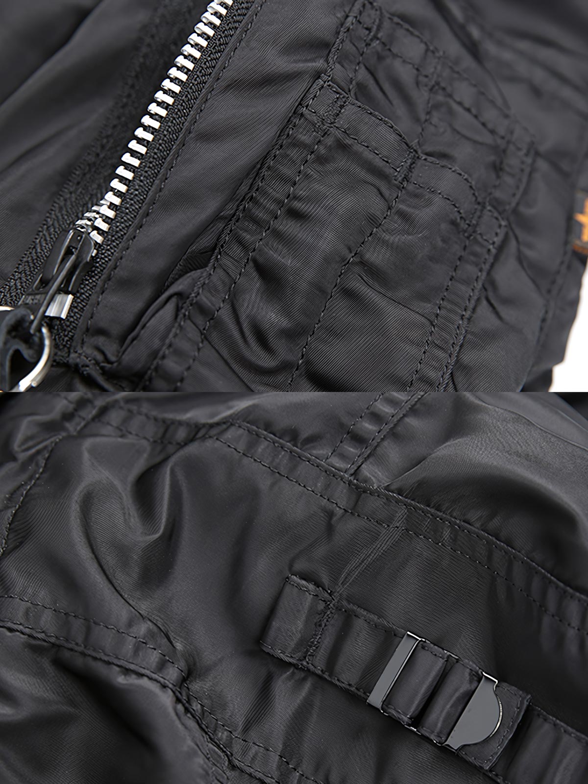ナイロン生地は高密度で防風・防水性に優れており、耐久性がありながら通気性を保っています。多機能ポケットのデザインは実用的であり、軍服スタイルに合わせています。バッジやラベルはジャケットの視覚的な特徴を加え、文化的な意味合いを豊かにしています。