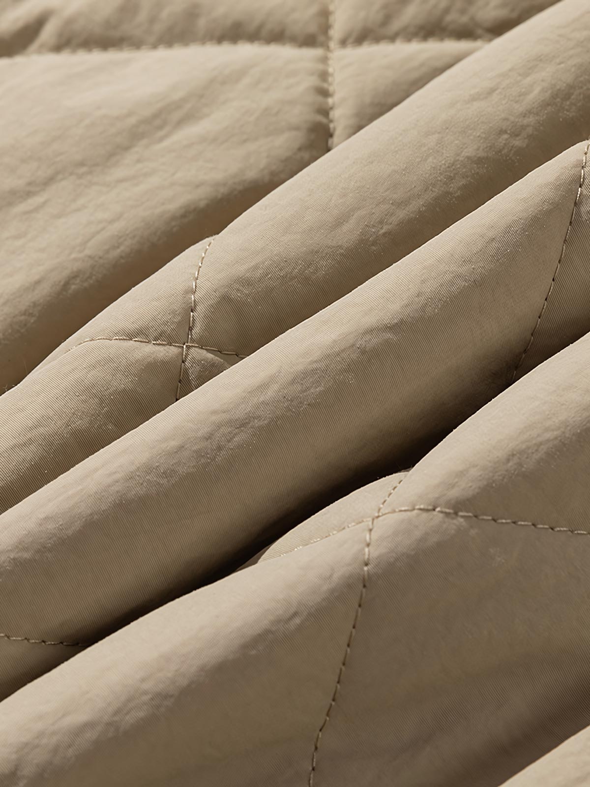 クラシックな紳士服に源を発するこの中綿ジャケットは、英国のレトロな雰囲気と現代ファッションが融合しています。その拼接チェックデザインは、20世紀初頭の英国の田舎服における実用主義を反映しており、耐久性と快適さを重視した当時の衣類の精神を受け継ぎつつ、洗練された技術と選りすぐりの素材を通じて、歴史と現代の完璧な融合を示しています。