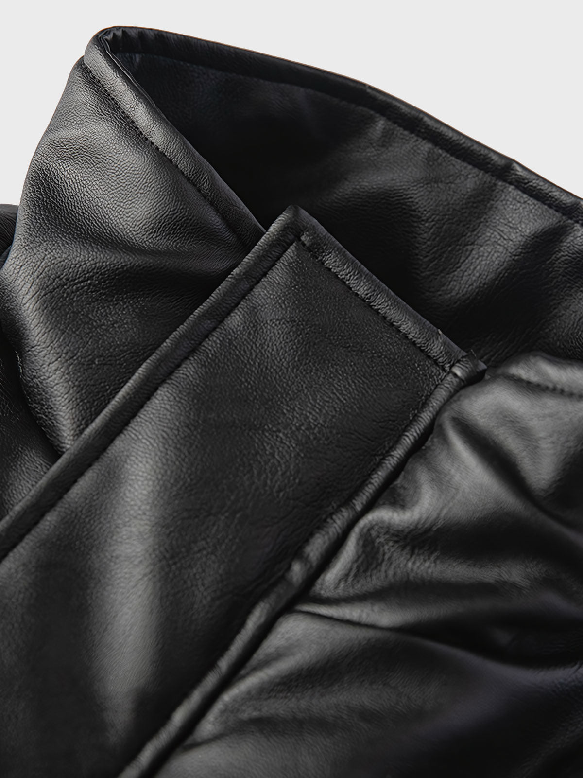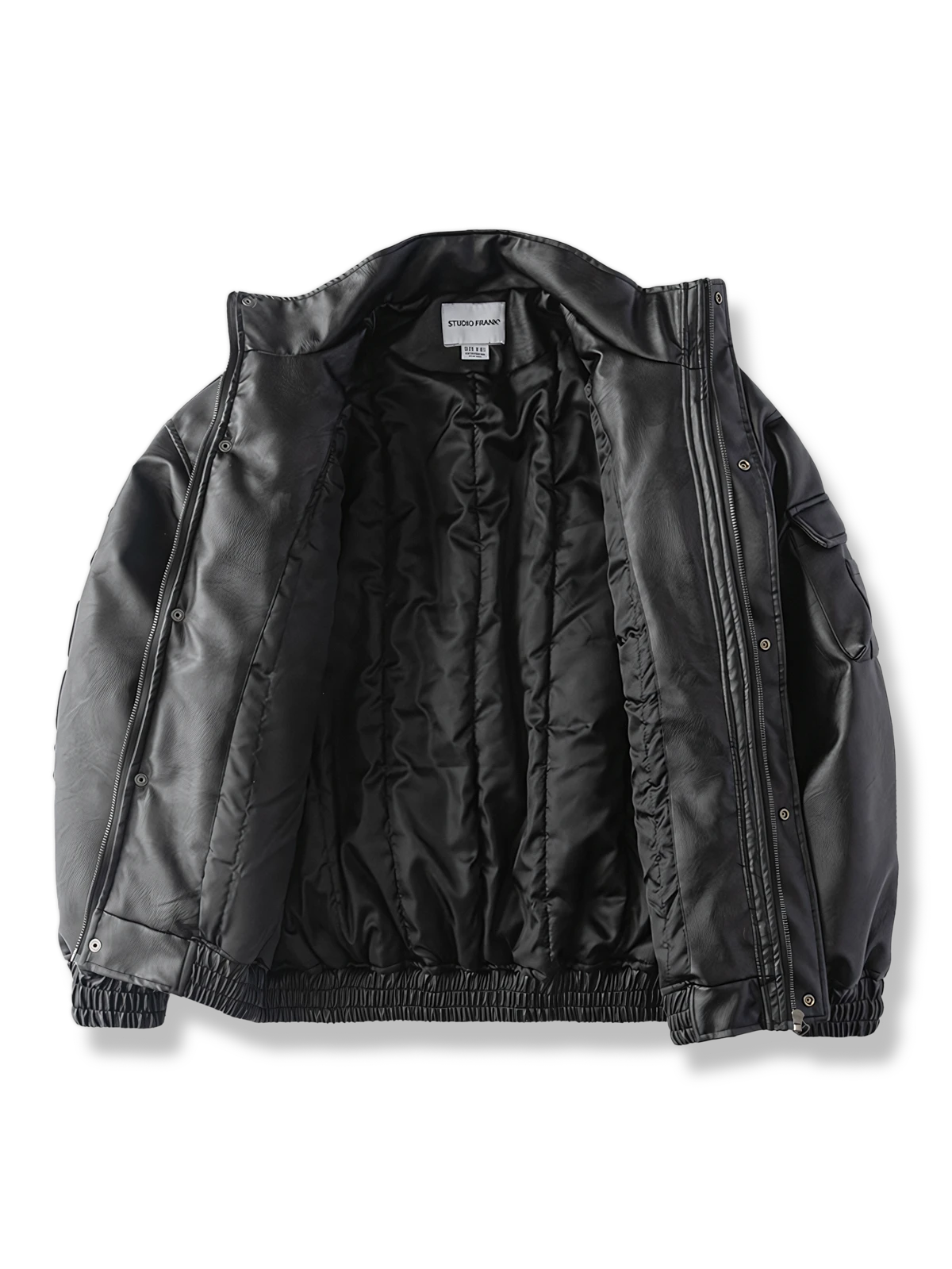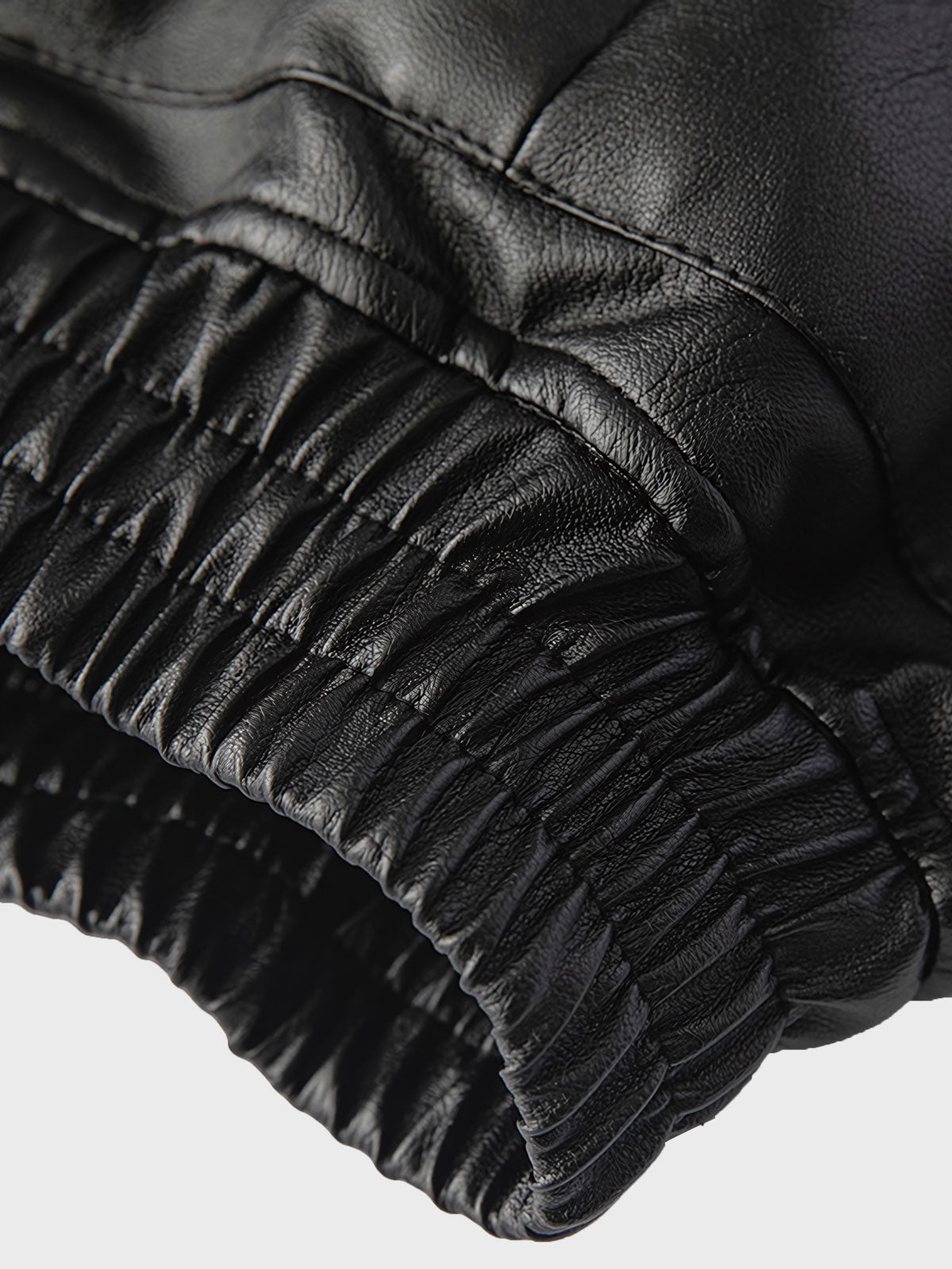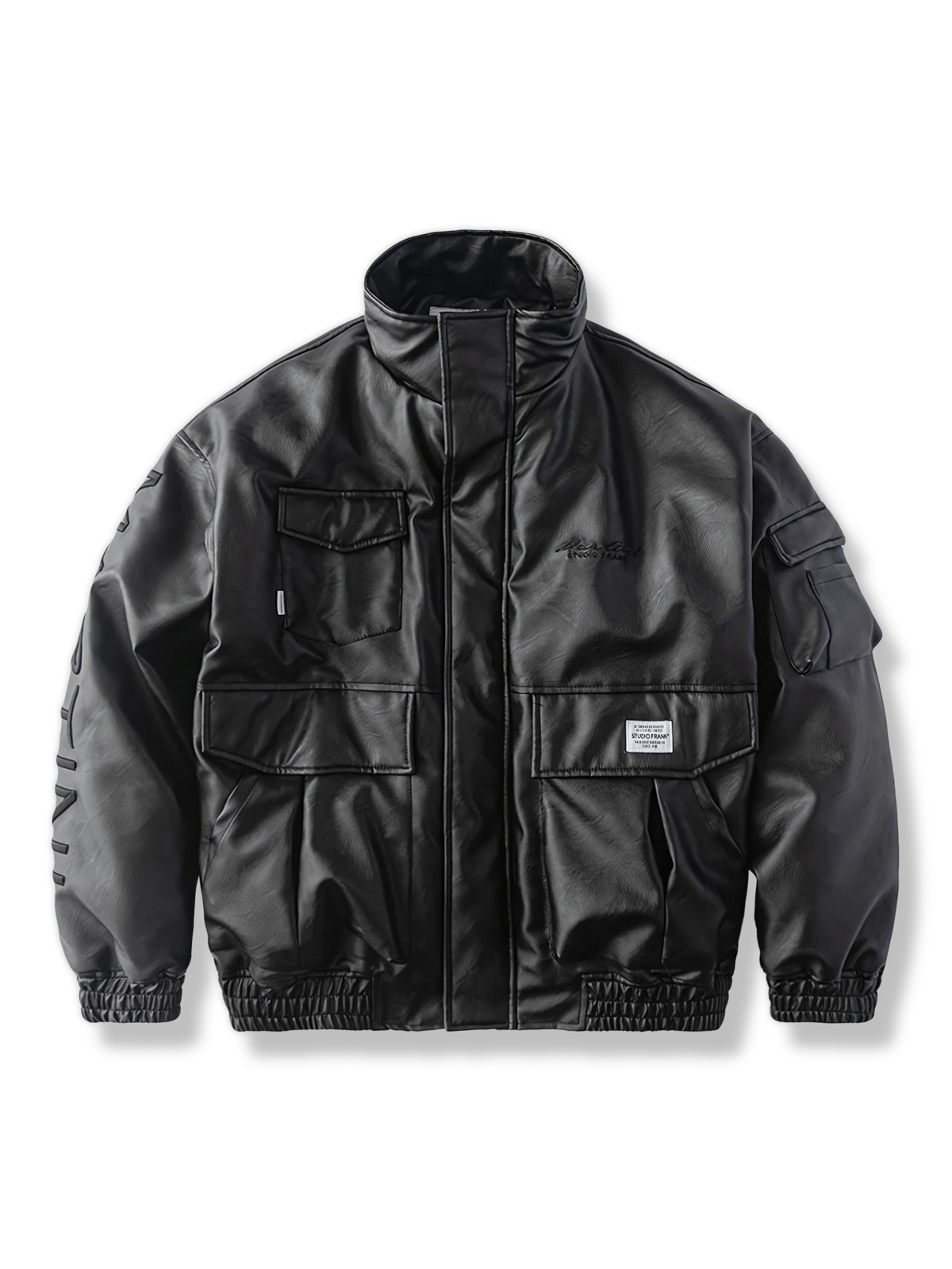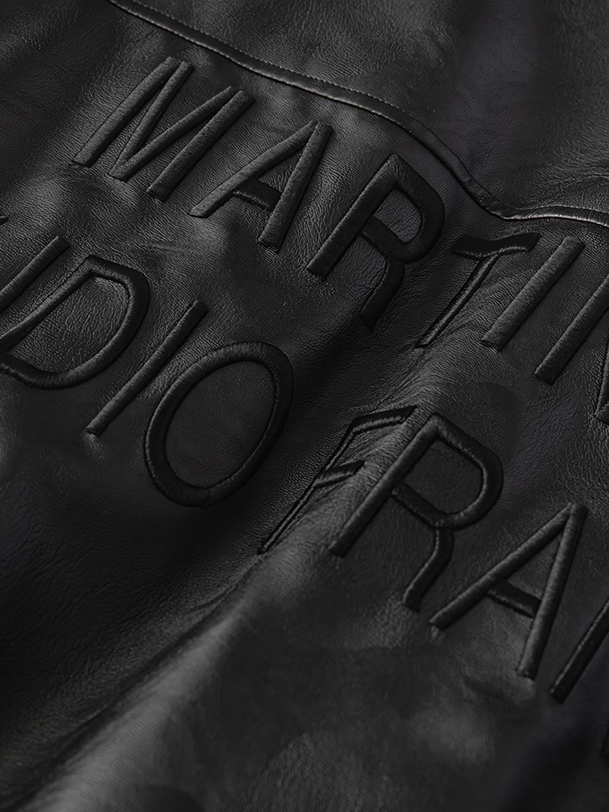 このレザージャケットは、レトロなパイロットジャケットを原型としており、その刺繍要素は軍服の精神的遺産を映し出しています。PUレザーの使用は、伝統的なレザージャケットの現代的な解釈であり、クラシックなスタイルを保ちながら、現代の環境保護の理念にも合致しています。