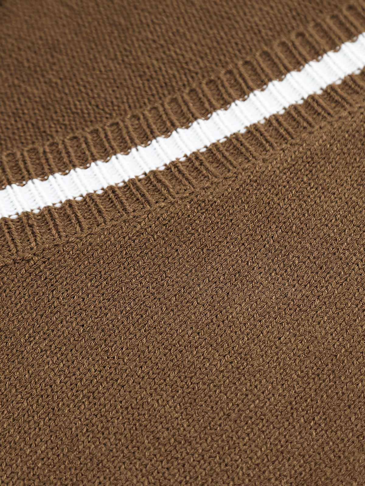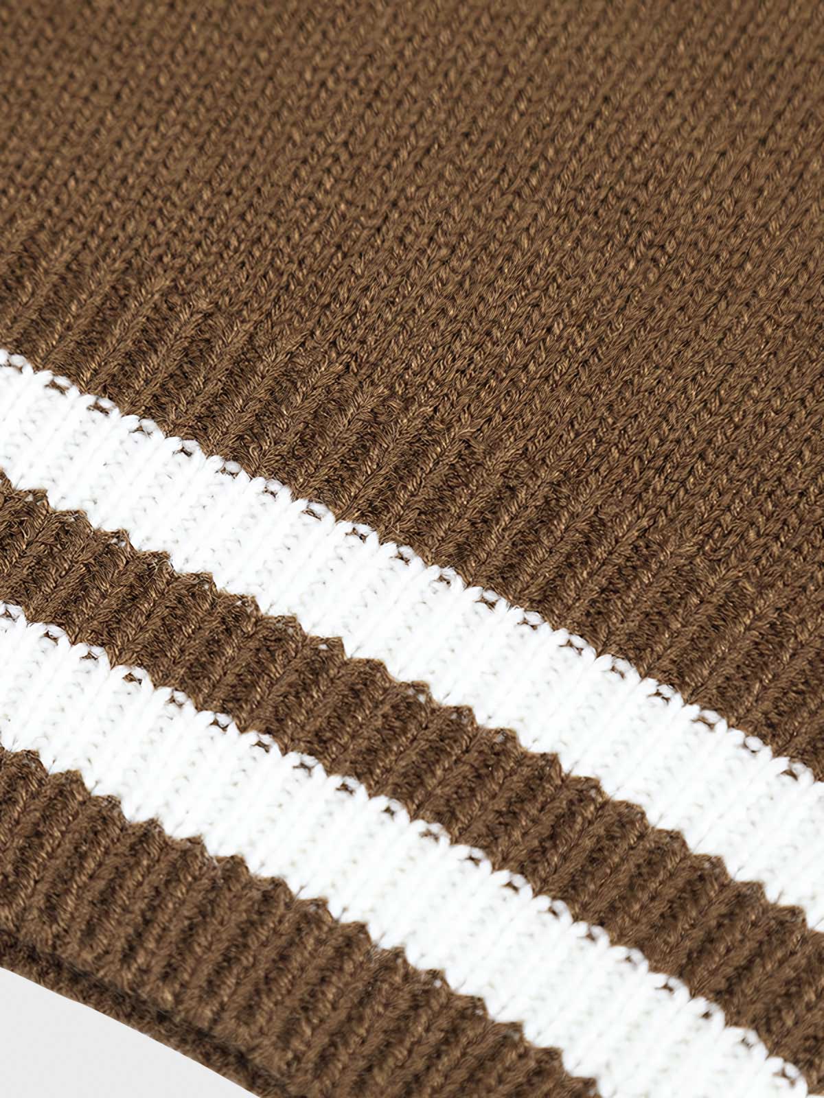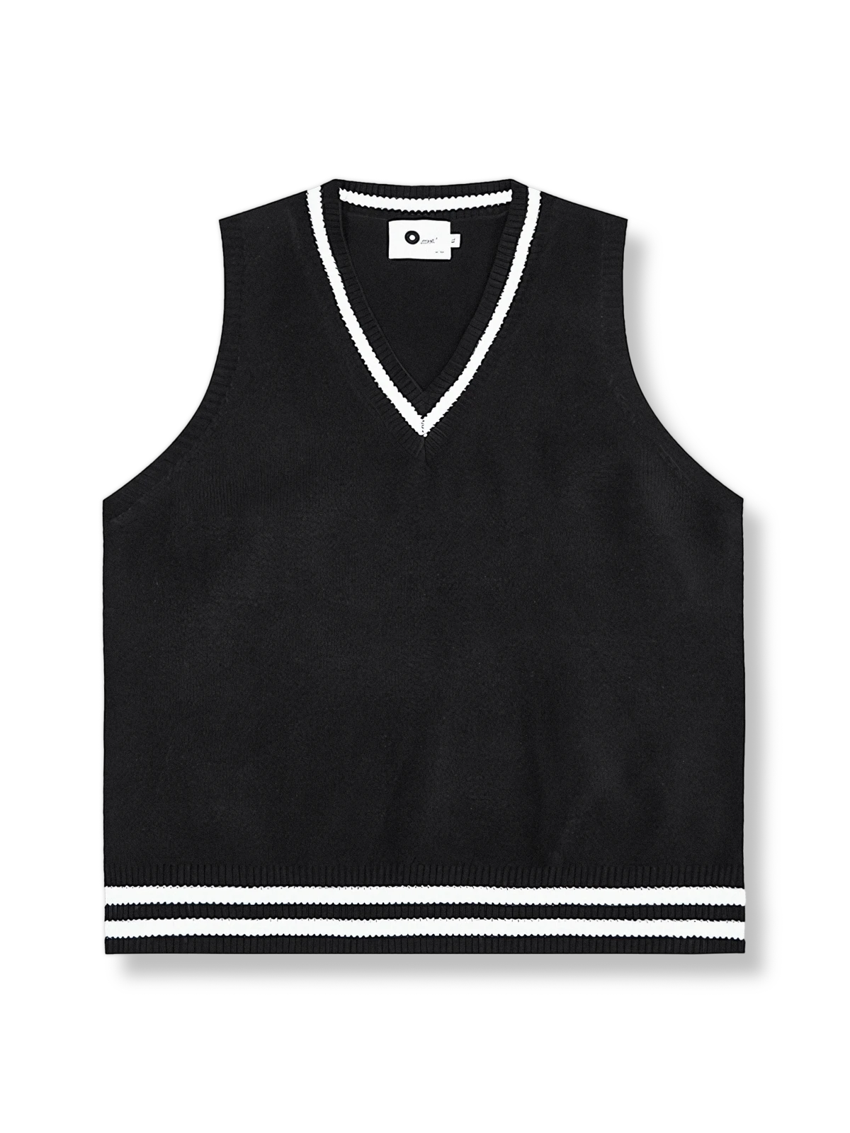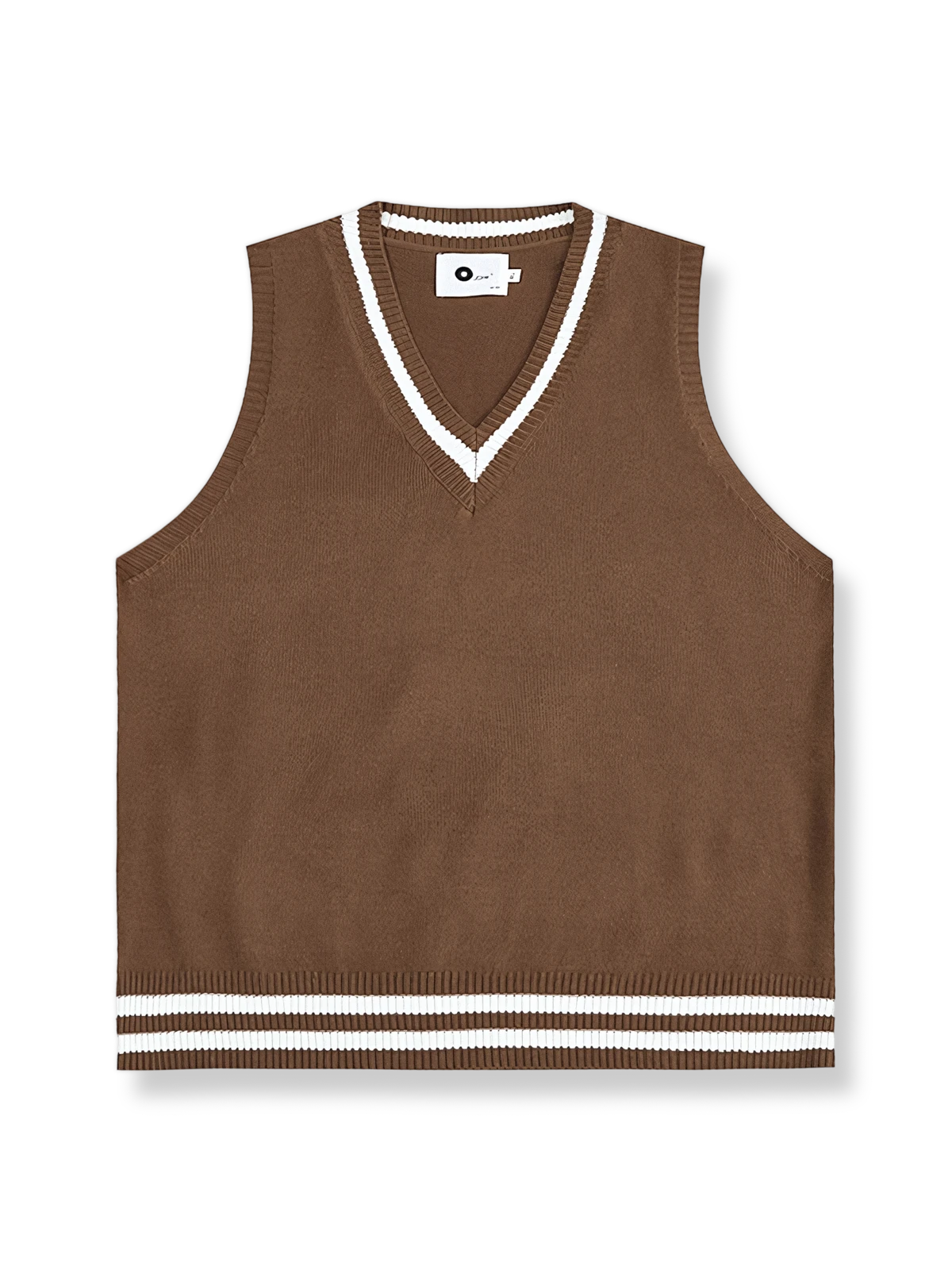 このクラシックなベストは、はっきりとした色のコントラストとシンプルなデザインを採用しています。ベストは象徴的なVネックデザインを持っており、このスタイルは20世紀初頭のスポーツウェアとキャンパス服装から発祥しました。