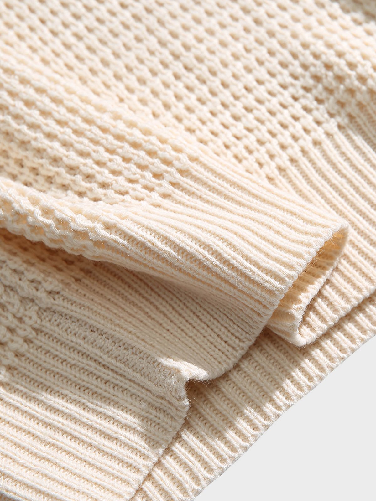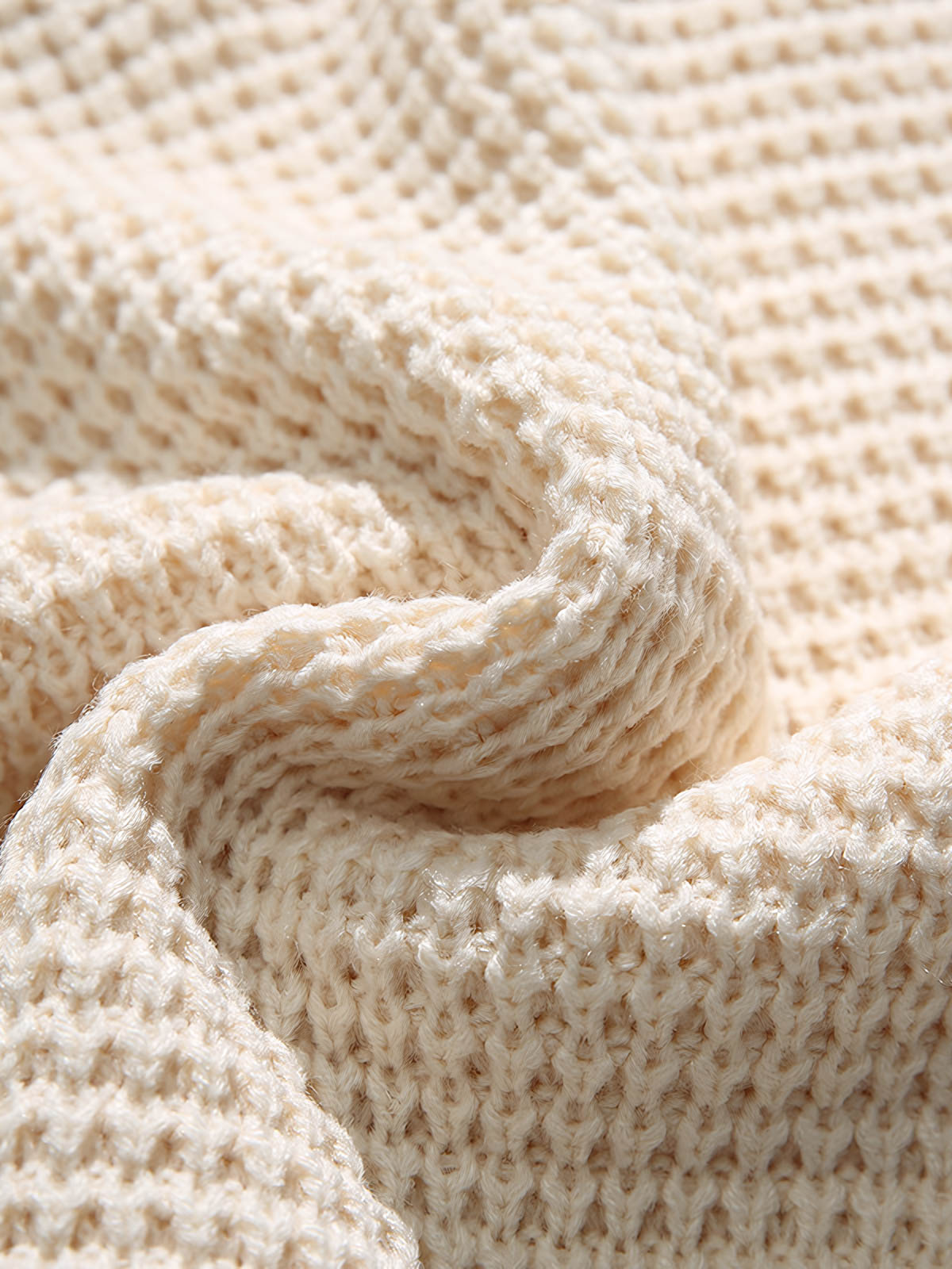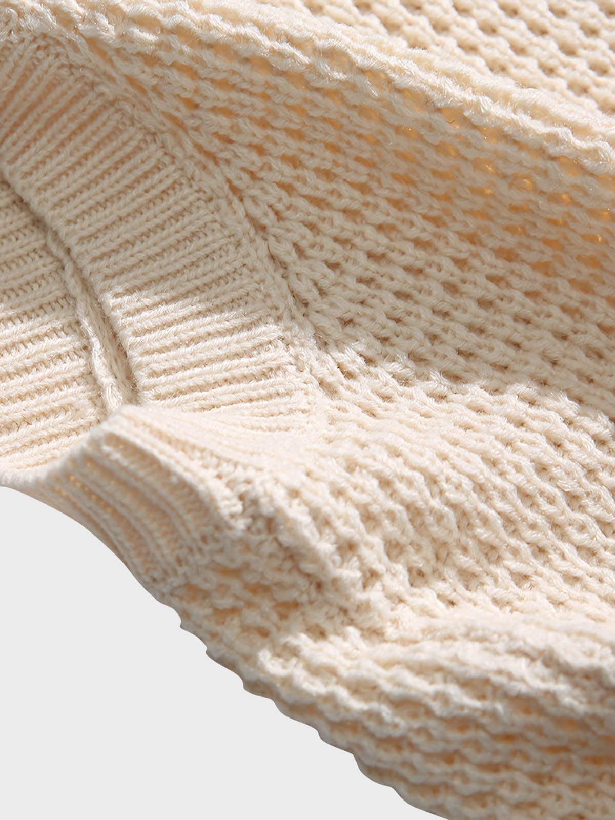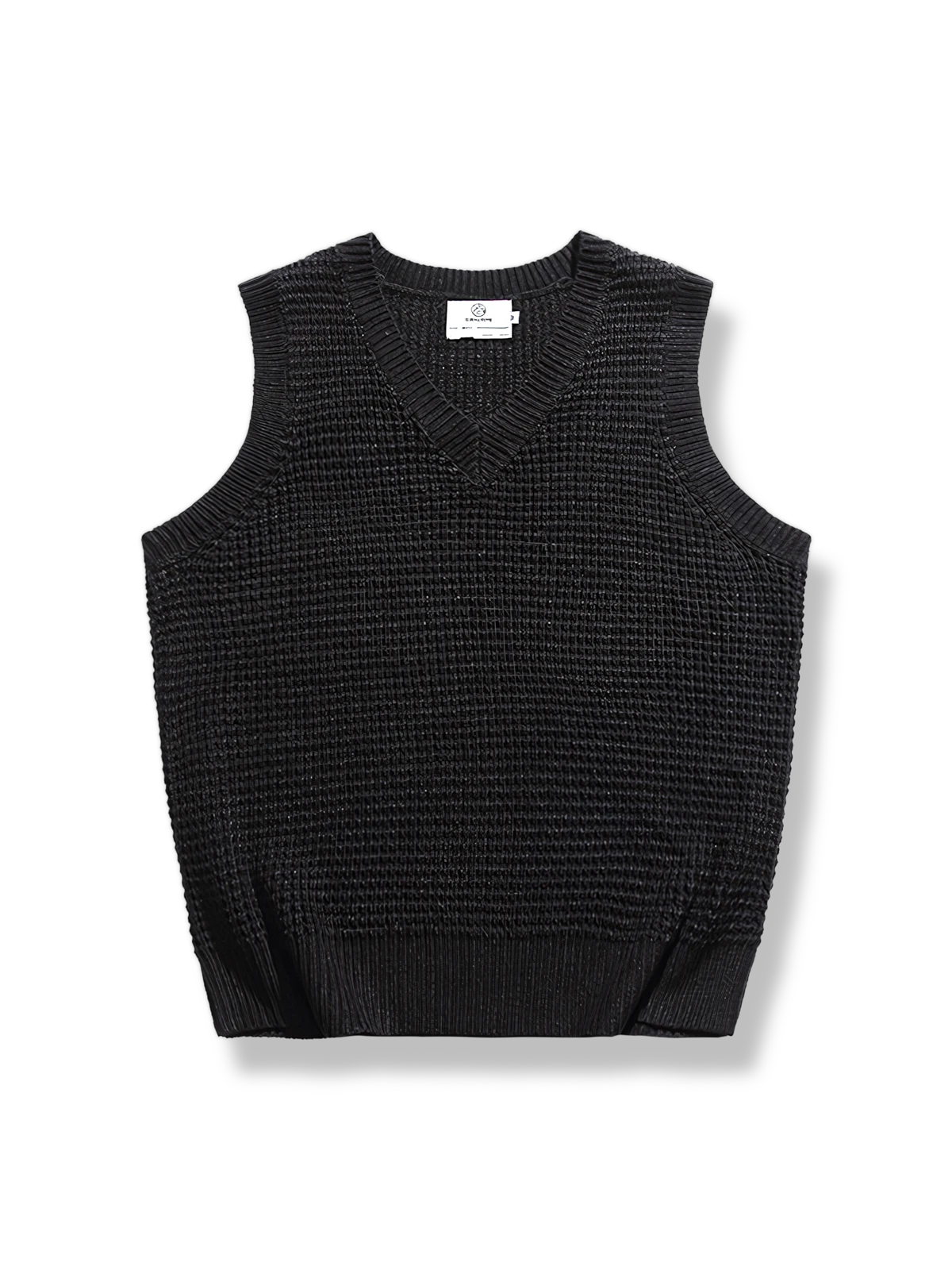 このベストのワッフル編みは、細部の豊かさを加えるとともに、レトロなタッチと視覚的効果をもたらします。ベストの裾と襟元の繊細な仕上げは、品質とディテールへのこだわりを強調しています。