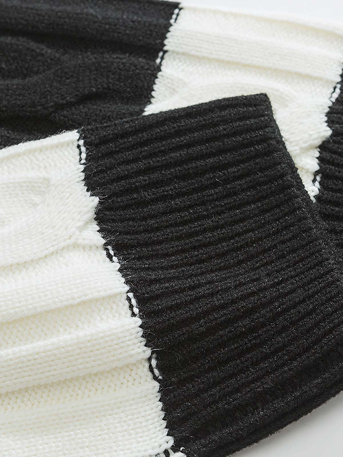 柔らかなニット素材を使用し、セーターの暖かさと快適さを保証しています。ブラックとホワイトのストライプのカラーブロックデザインは、スタイリッシュでありながら、他の衣類とのコーディネートも容易です。柔らかなニット素材を使用し、セーターの暖かさと快適さを保証しています。ブラックとホワイトのストライプのカラーブロックデザインは、スタイリッシュでありながら、他の衣類とのコーディネートも容易です。