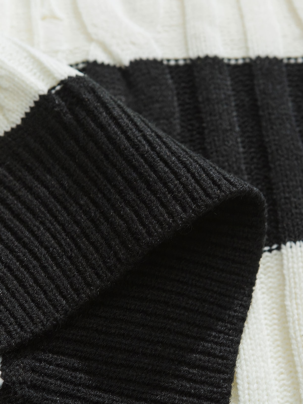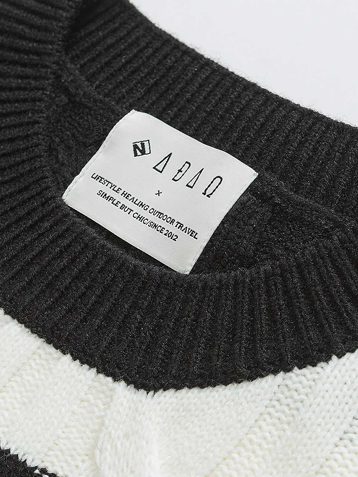このニットセーターは、ブラックとホワイトのカラーブロックストライプを採用し、シンプルでモダンな視覚効果を演出しつつ、クラシックな海軍スタイルのデザインにオマージュを捧げています。