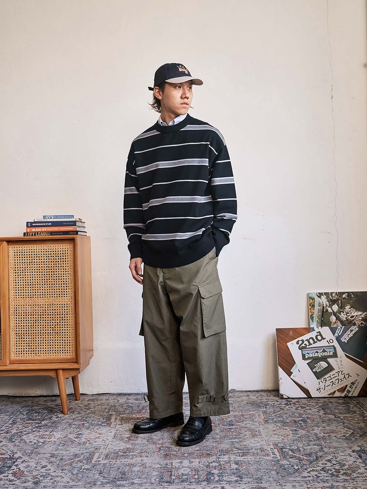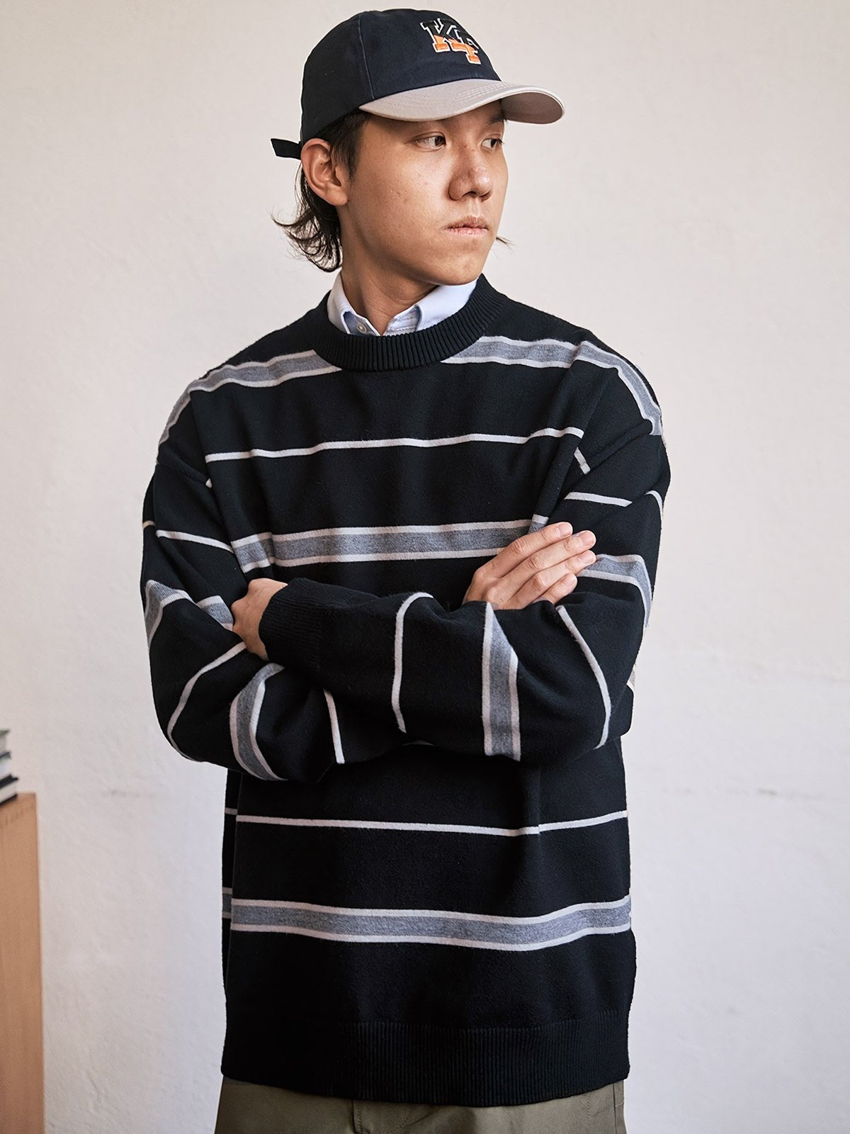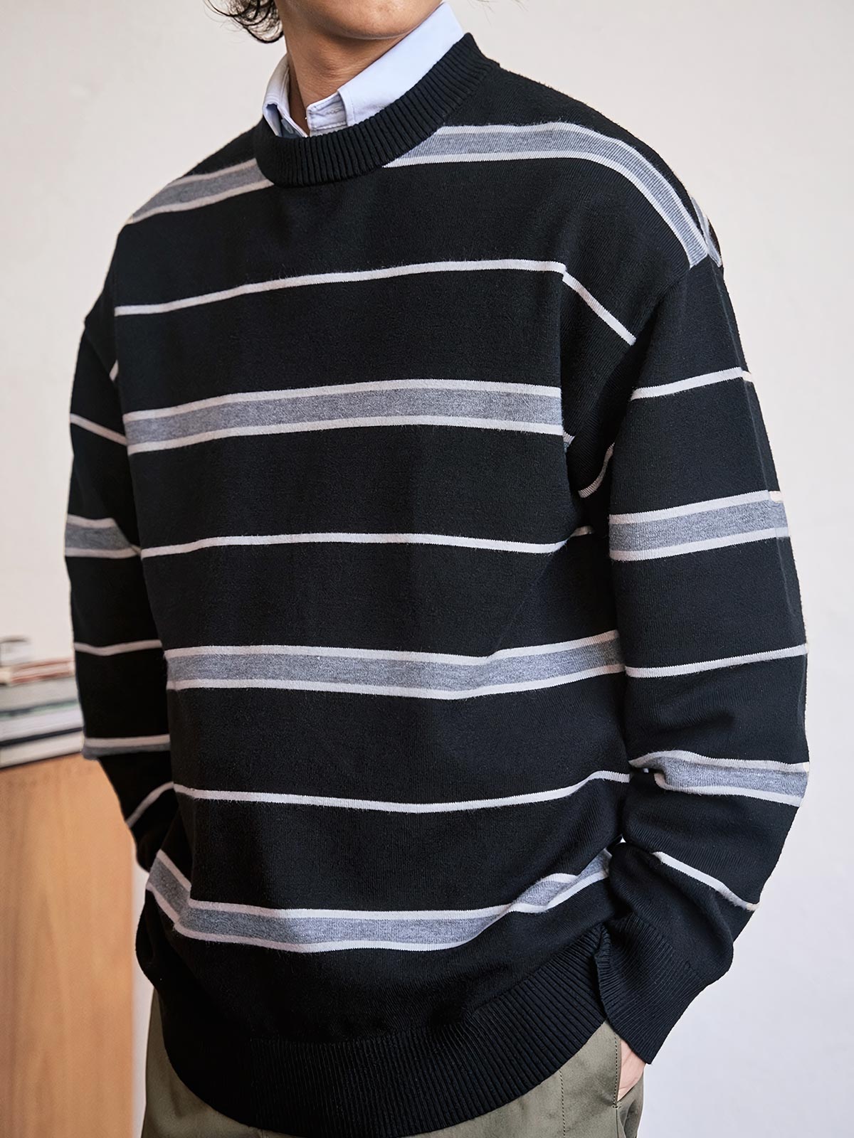 このストライプのクルーネックセーターは、クラシックな海軍スタイルのデザインを採用しており、その歴史は19世紀のフランス海軍の制服に遡ります。船員と水兵を区別するためにこのような服装がデザインされました。ストライプは基本色と対照的な明るい色で、繊細な光沢のある線が交じり、視覚的な層と現代感を加えています。