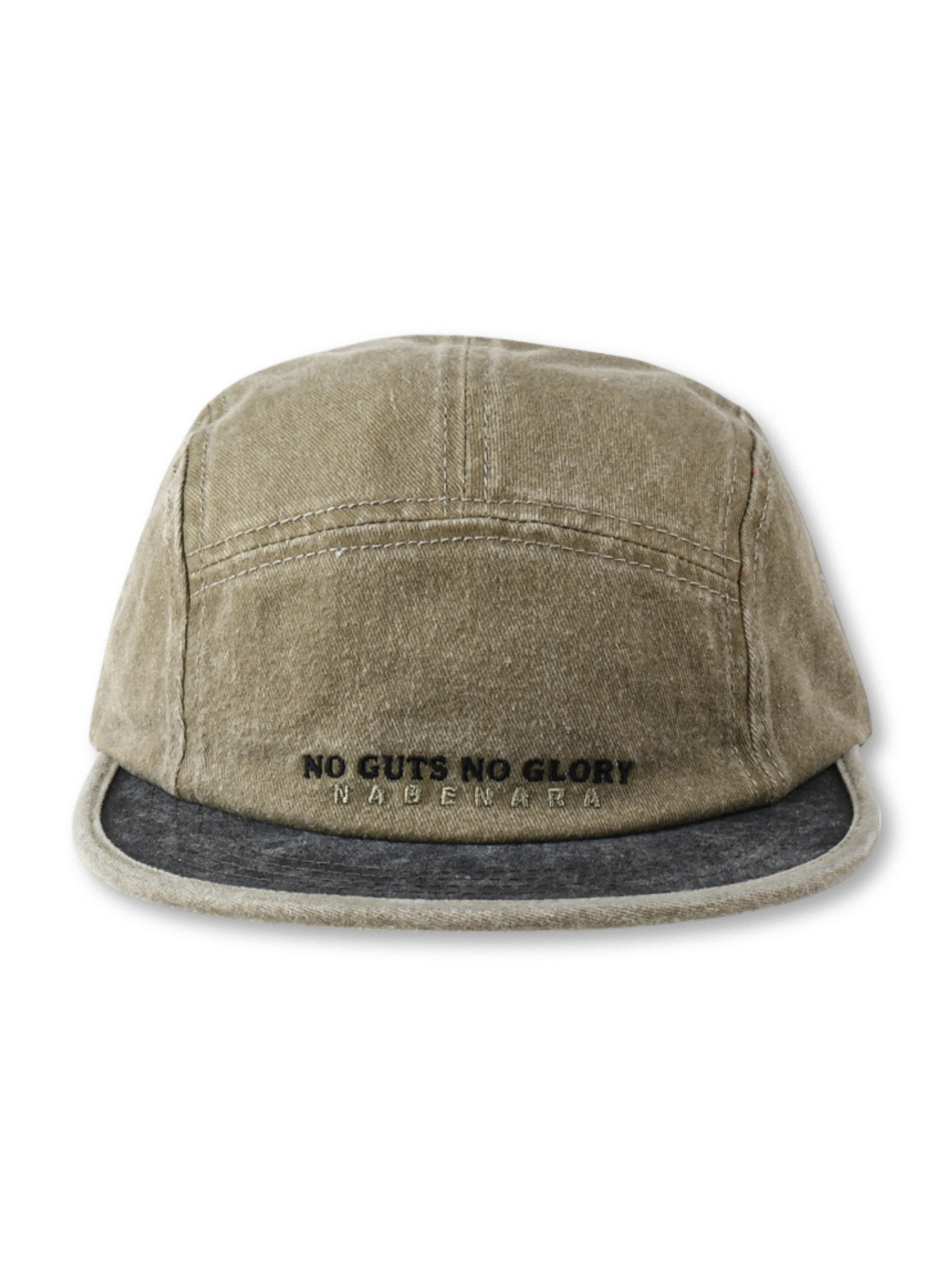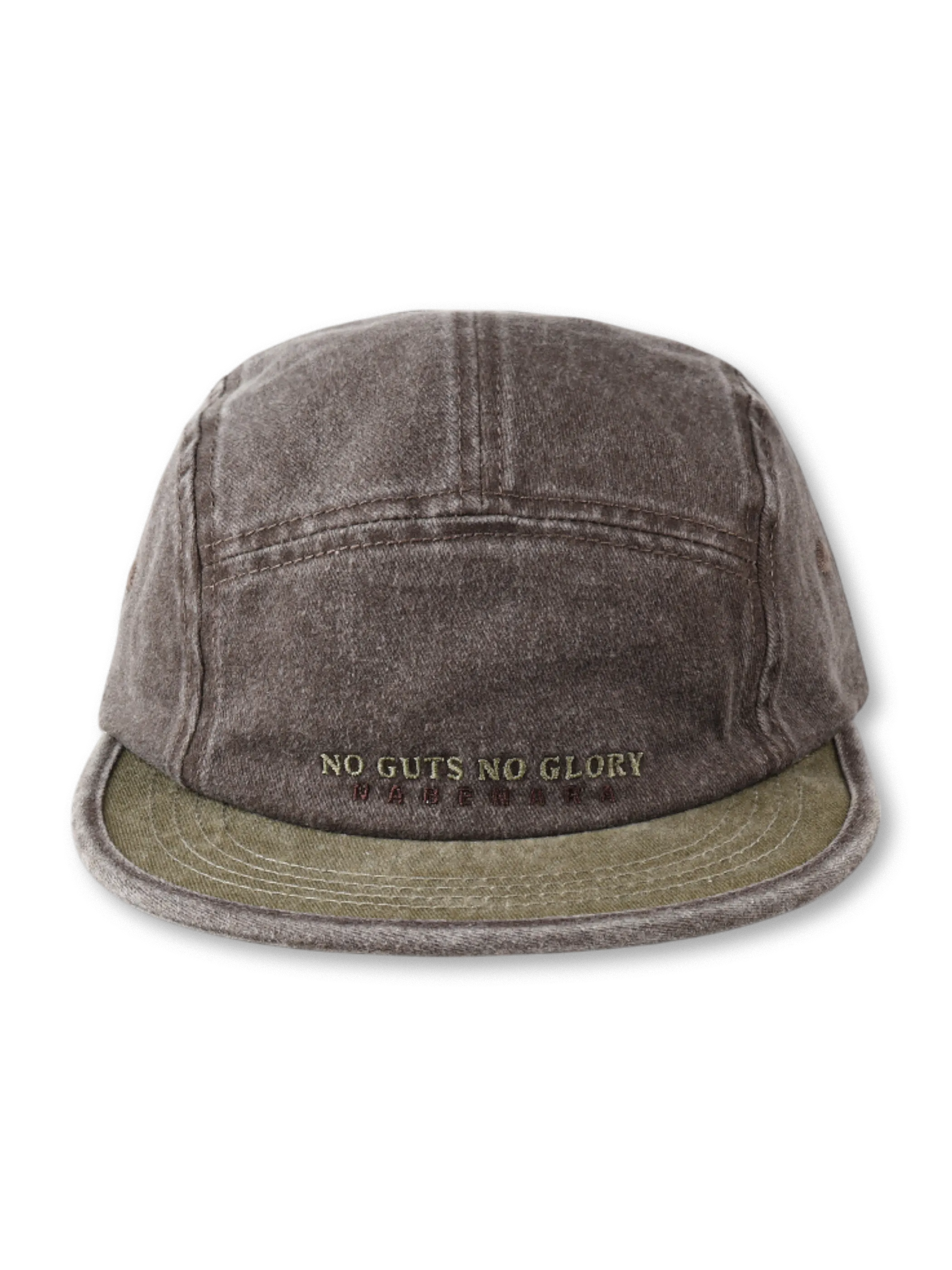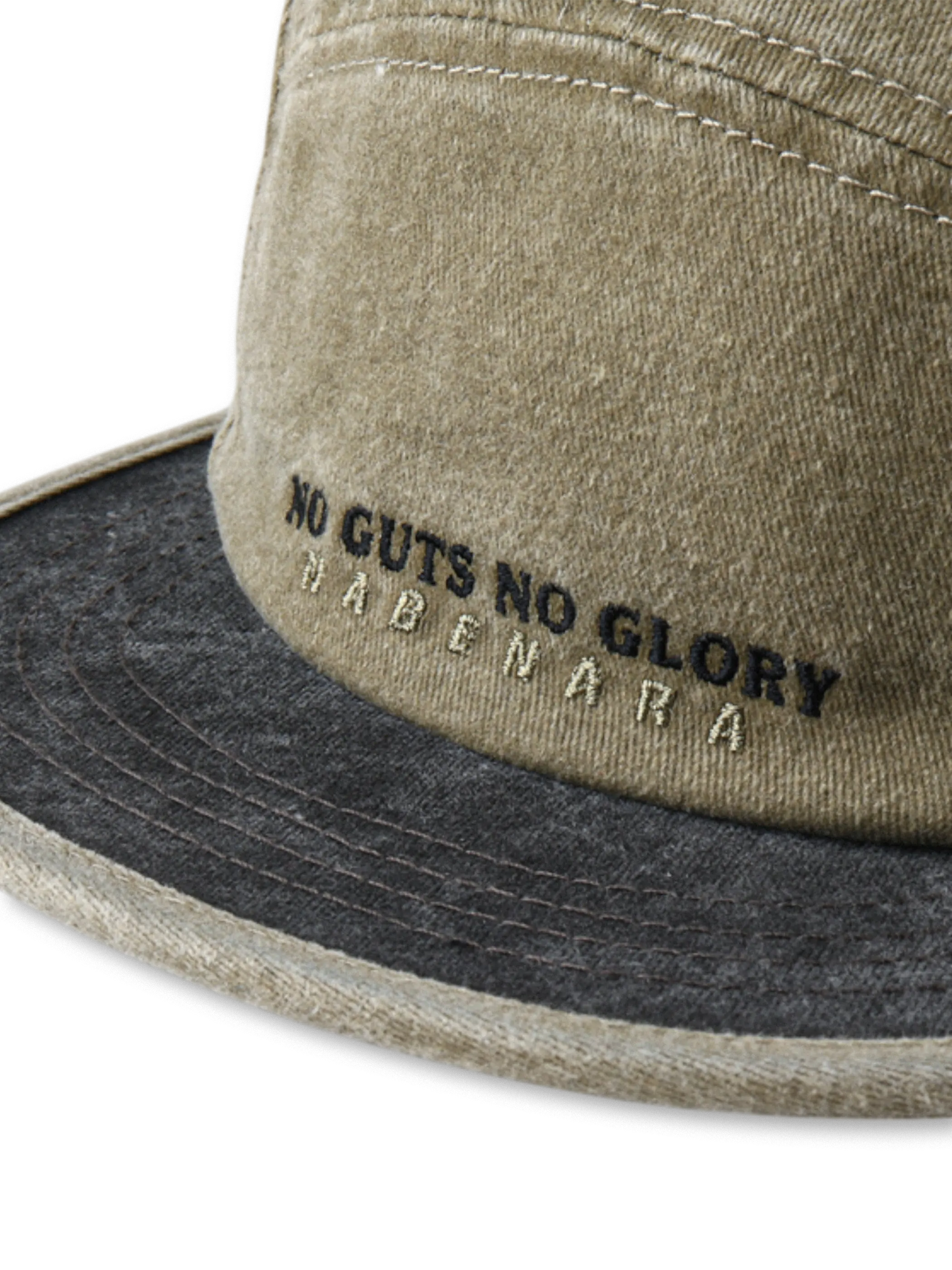 ヴィンテージ風ショートブリムと水洗い加工デニム生地を組み合わせ、工装の機能性とストリート感を両立した五枚構成キャップです。