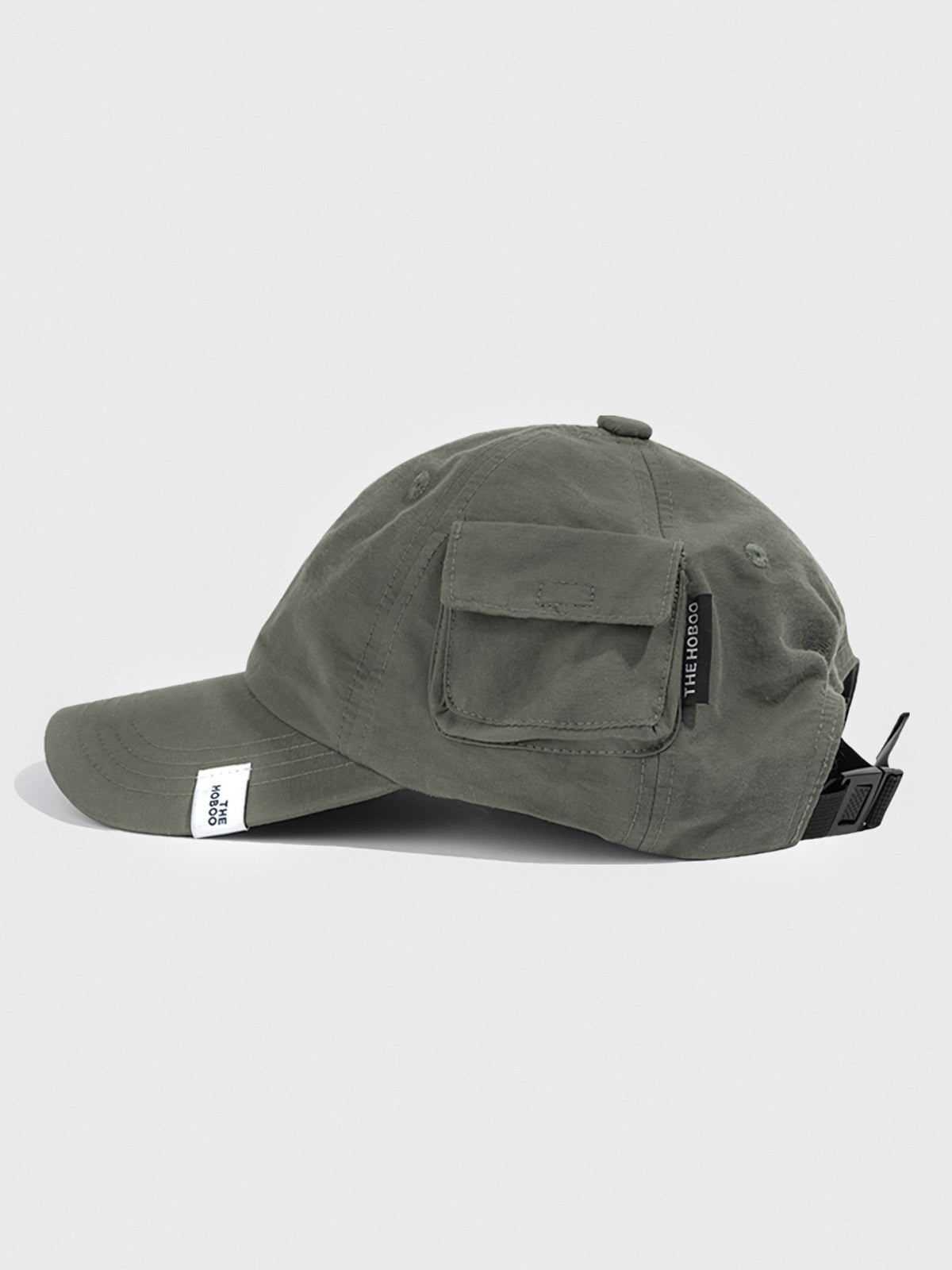 速乾性ナイロン素材、サイドポケットデザイン、個性と実用性を兼ね備えたキャップ。